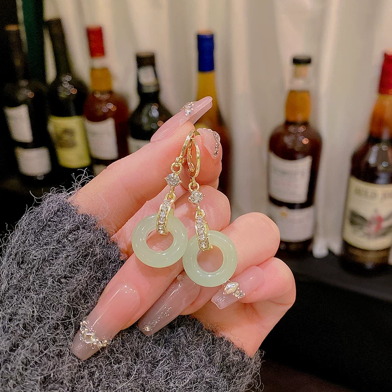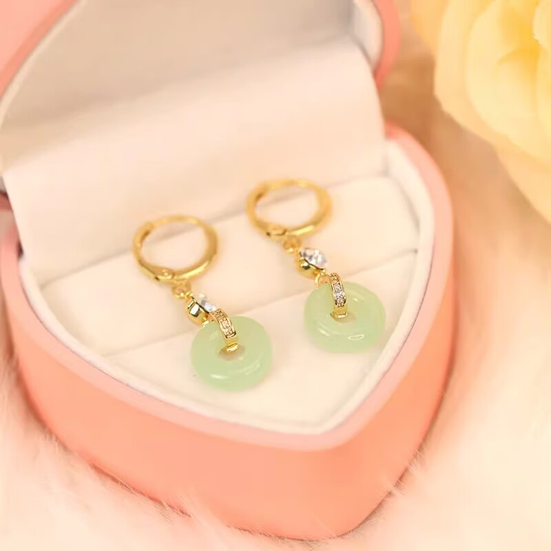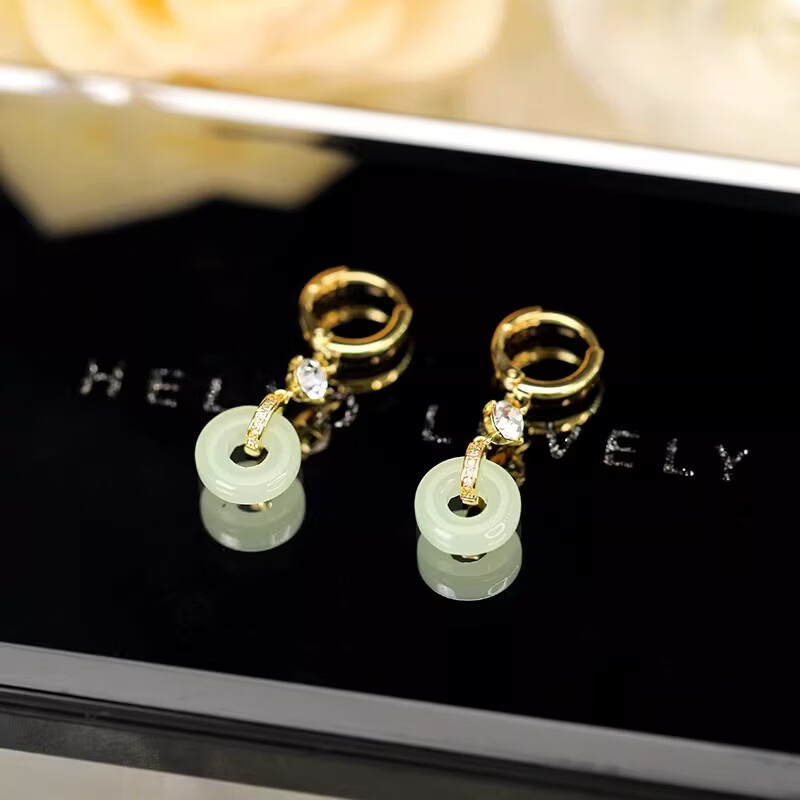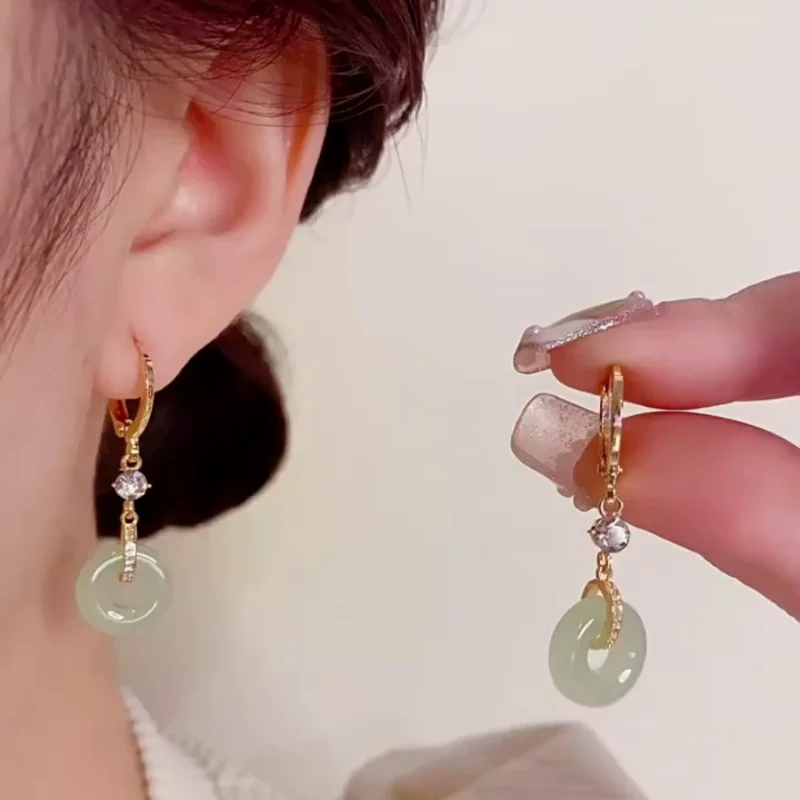 古风平安扣玉石耳钩女气质长款流苏百搭耳坠复古宫廷耳饰XJS 【送礼盒】带钻流苏玉耳钉