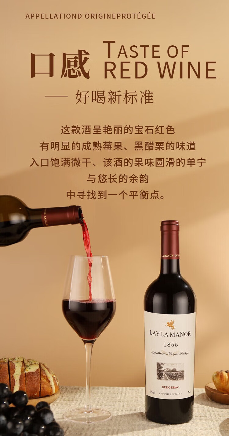 LAYLA【法国蕾拉】进口红酒14度AOP级老藤干红葡萄酒750mlX6支礼盒装