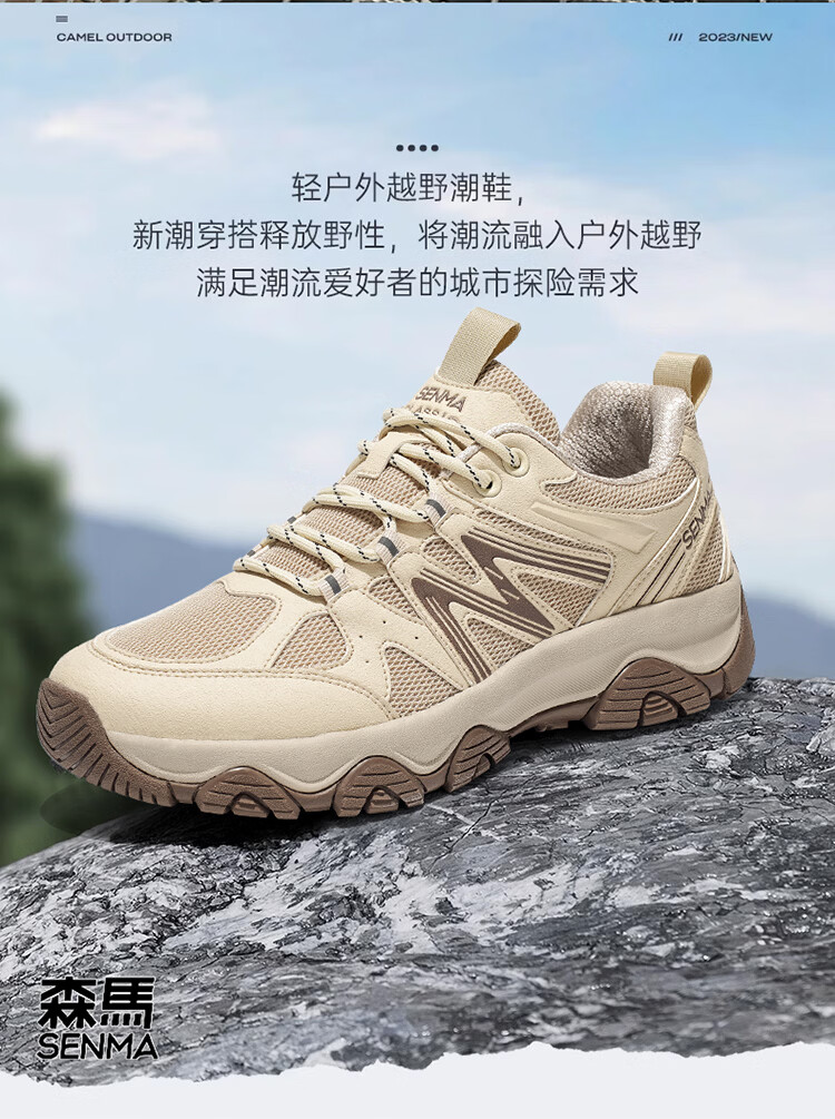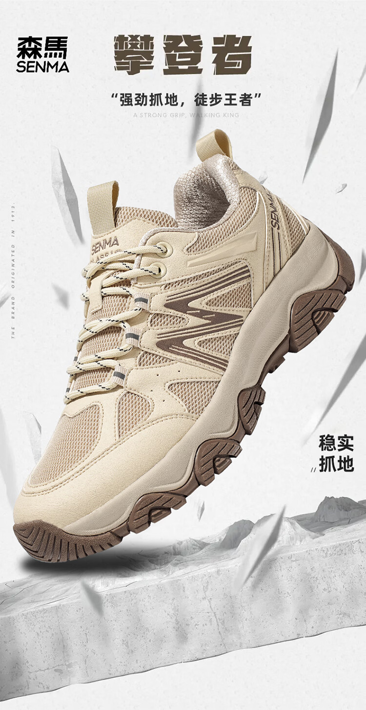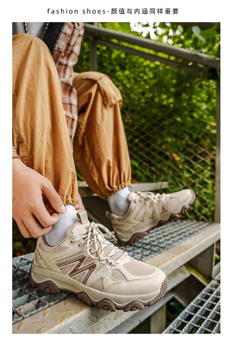 森馬男鞋春季透气户外防滑耐磨休闲徒步登山鞋男士潮鞋厚底运动老爹鞋 卡其【普通款】 39 标准码数/现货秒发