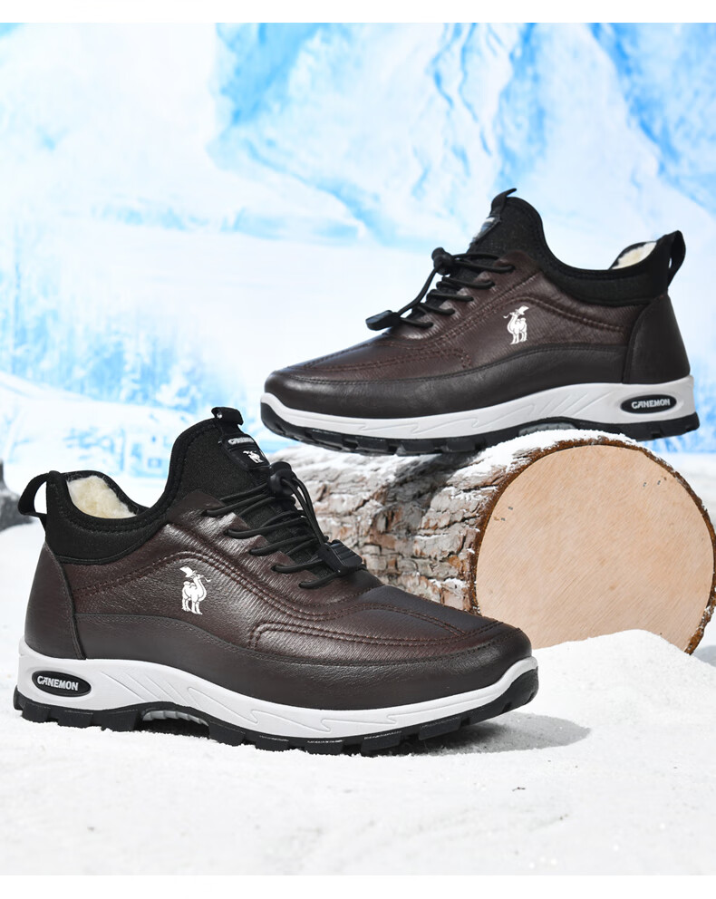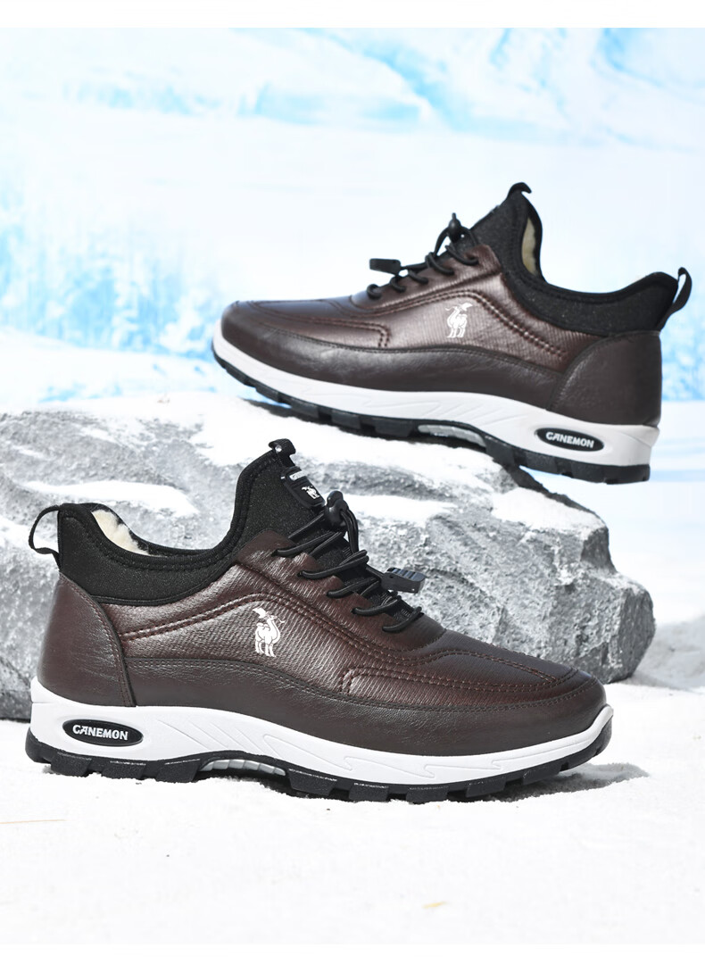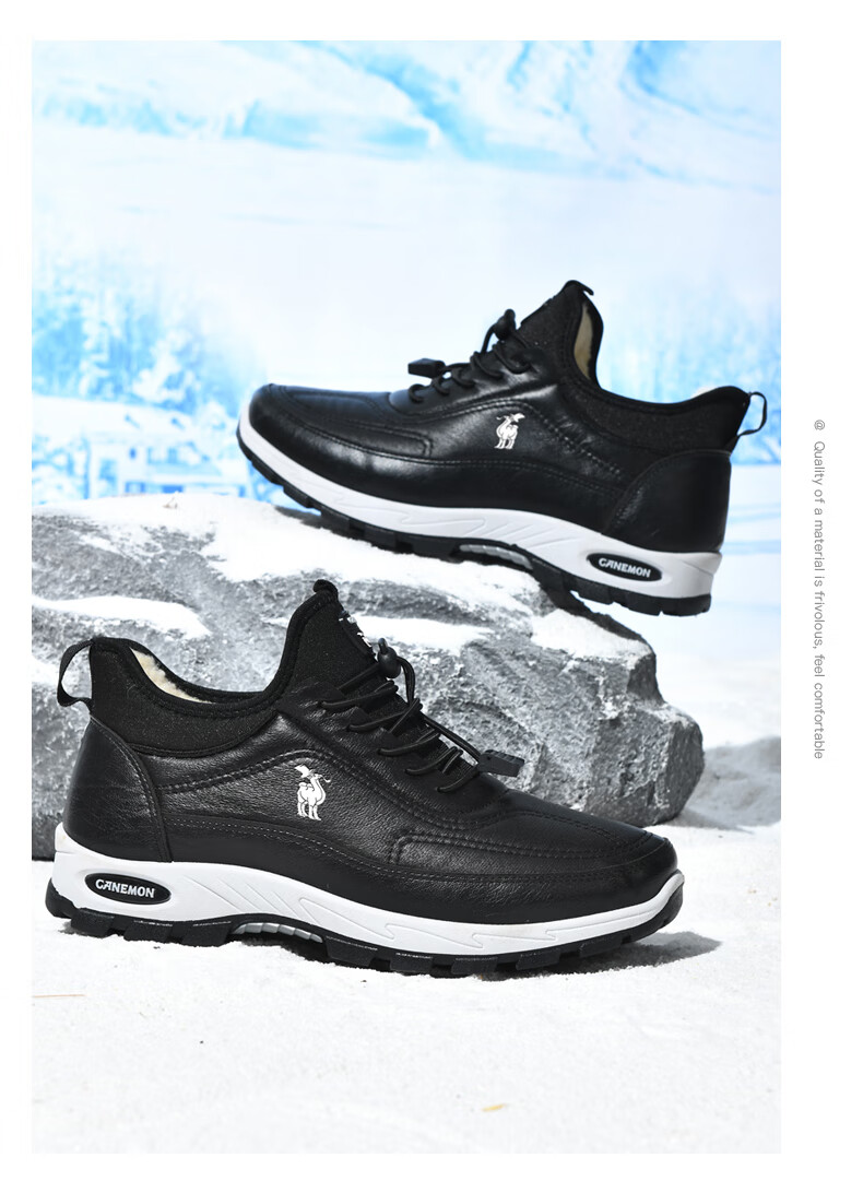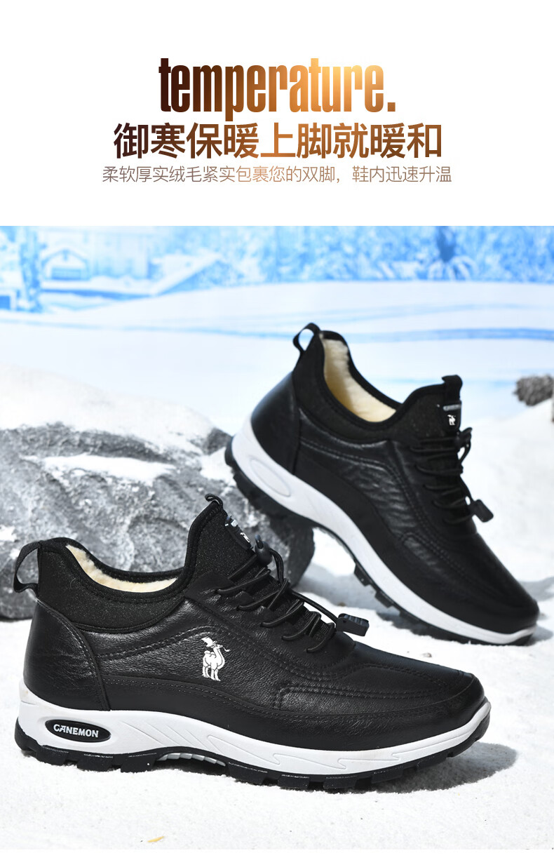 保罗骆驼户外棉鞋男 冬季男士登山鞋加绒保暖户防滑耐磨雪地靴 休闲鞋 【加绒款】黑色 39 【标准运动鞋码】