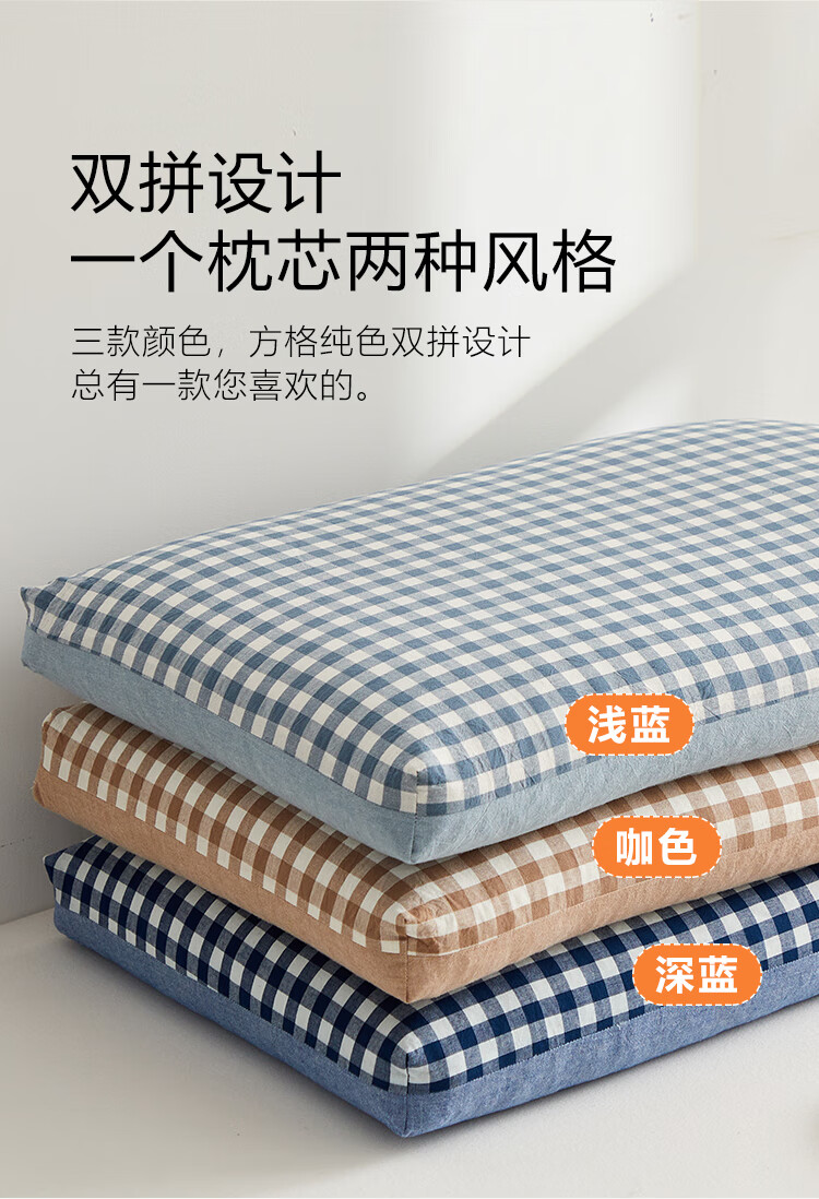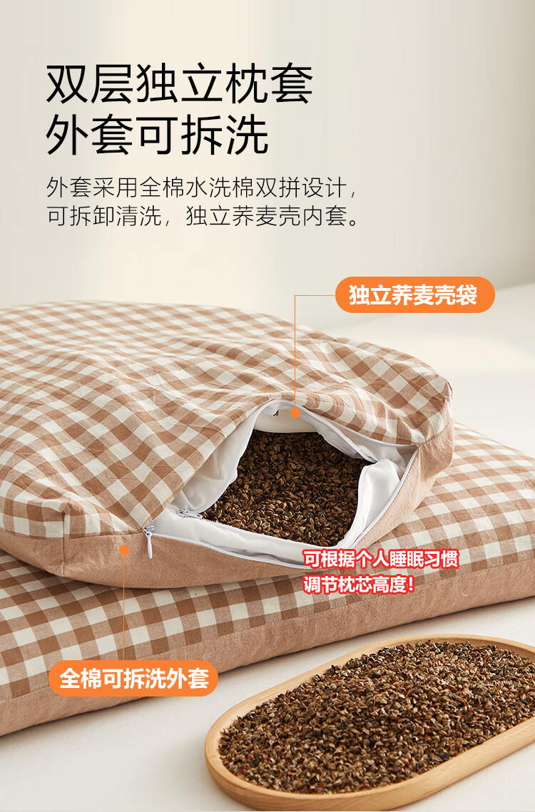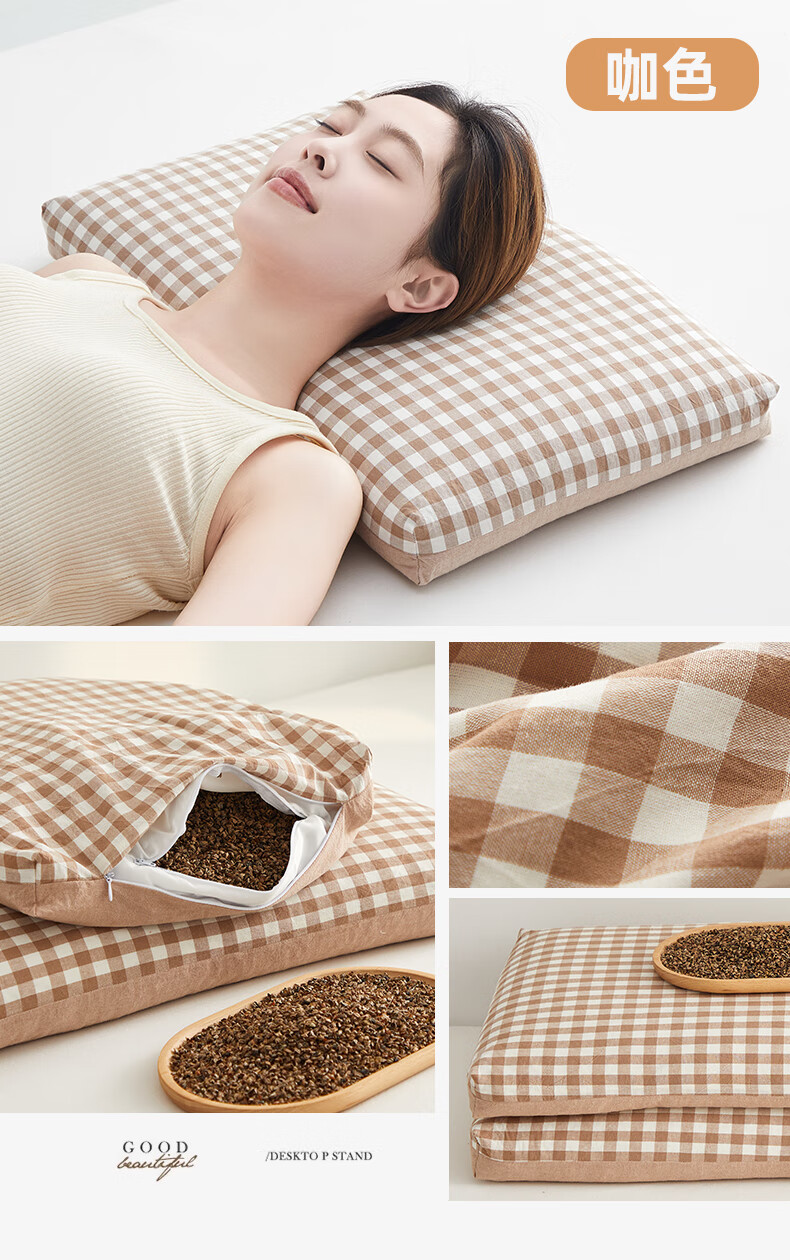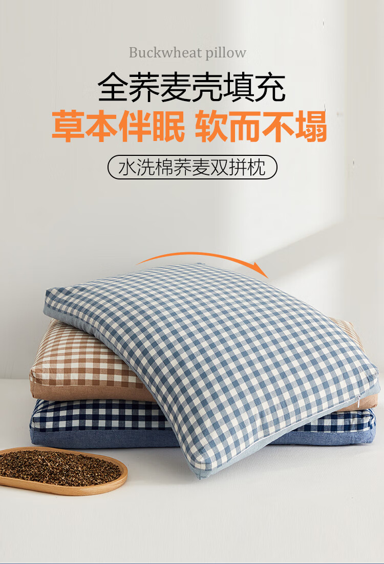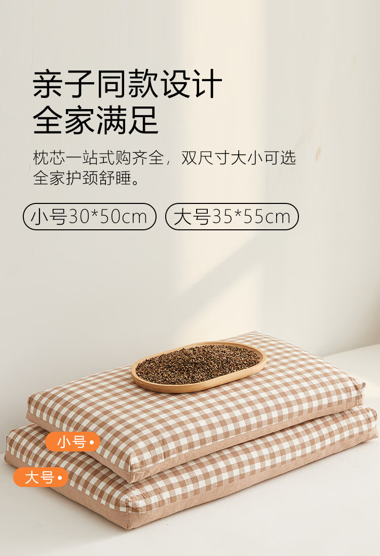 寝生活水洗棉荞麦双拼枕 枕头枕芯 一对 水洗棉双拼荞麦枕-咖色 35cm*55cm 大号