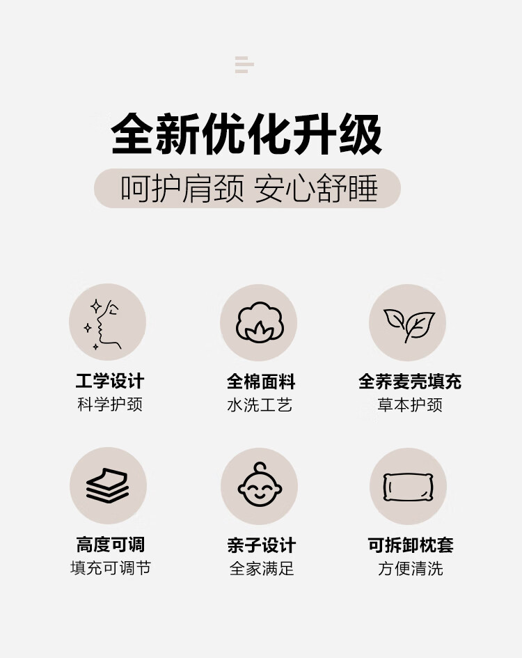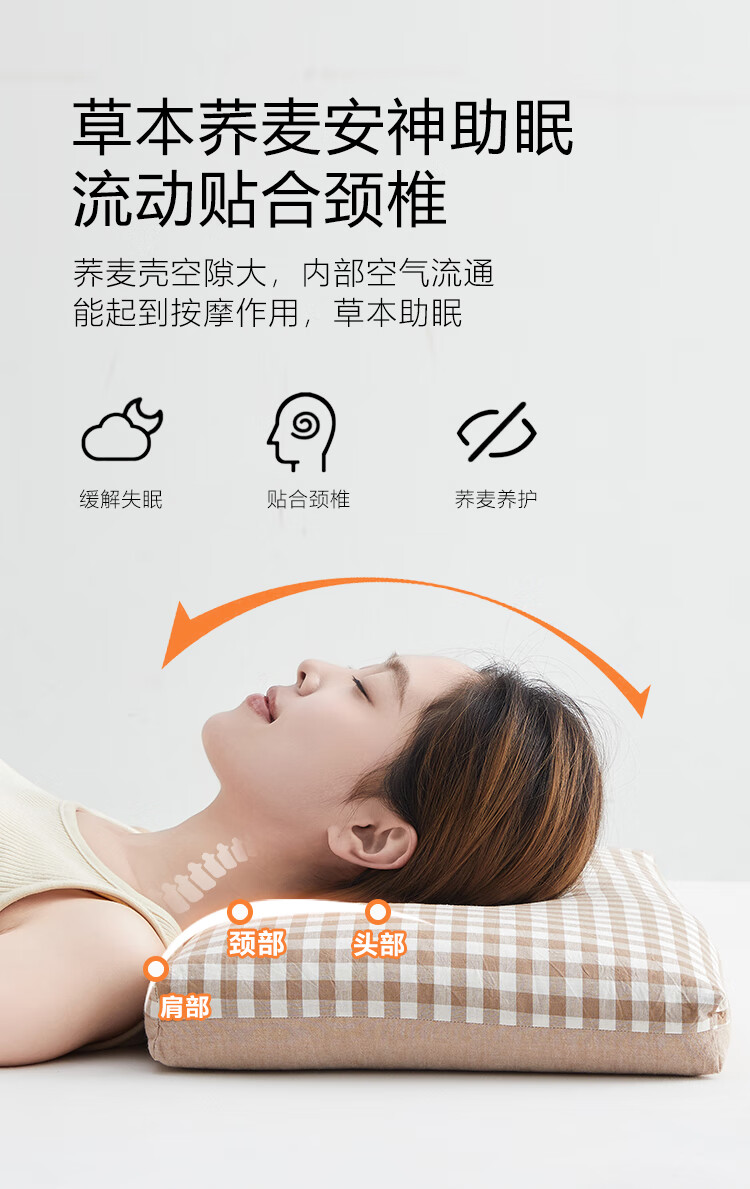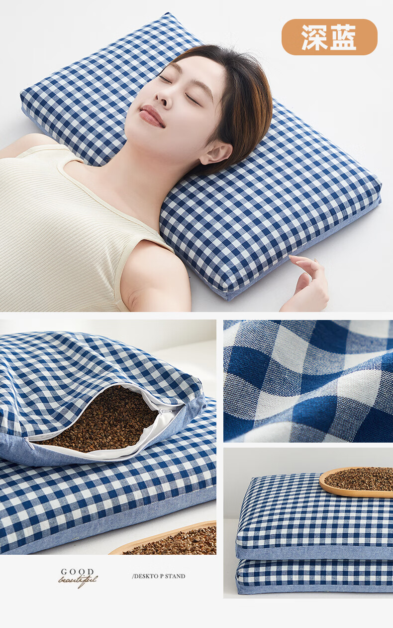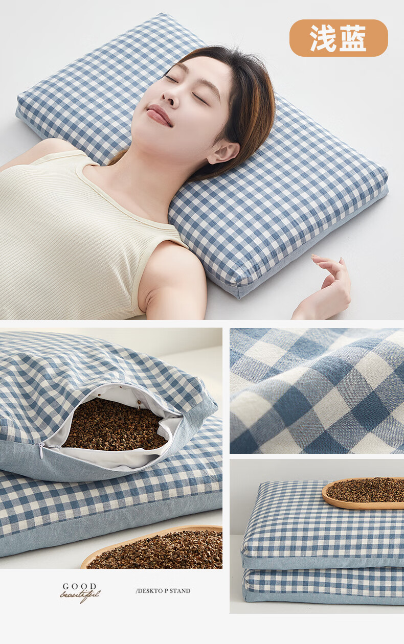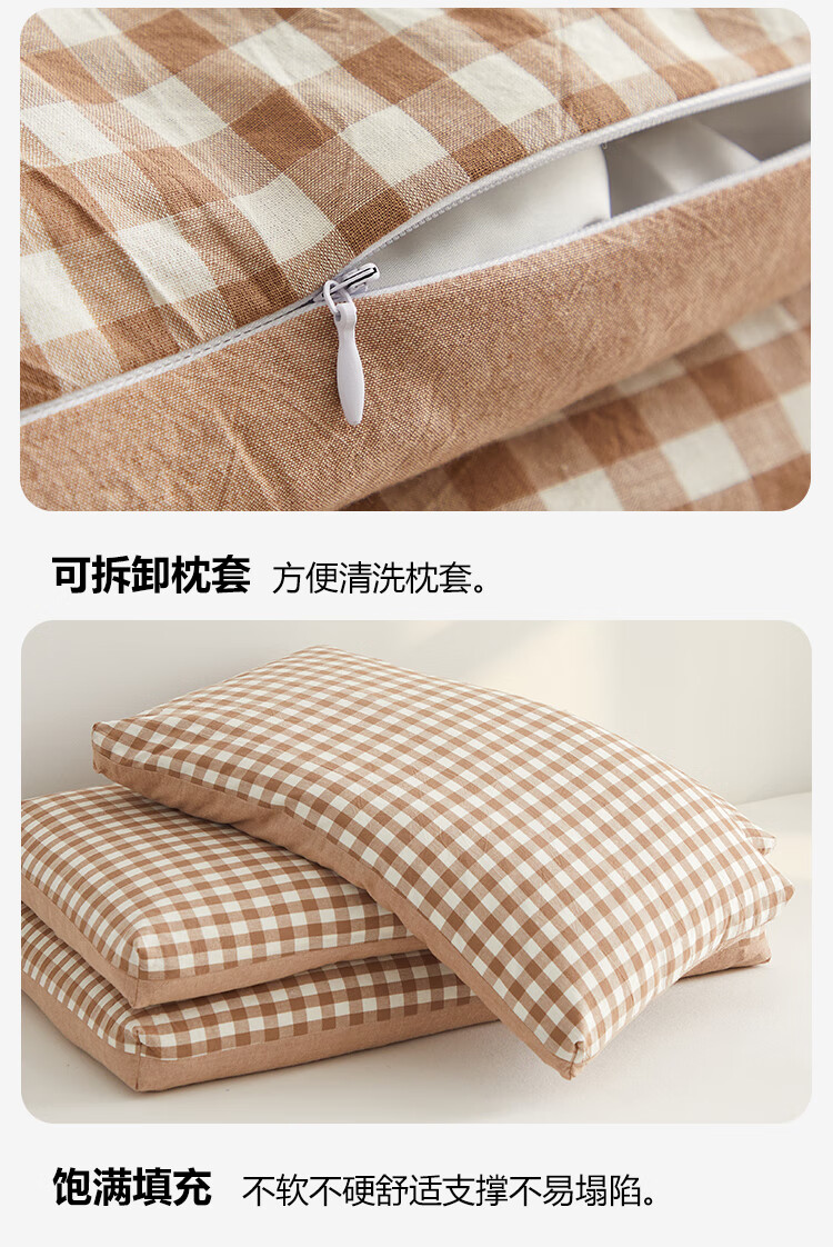 寝生活水洗棉荞麦双拼枕 枕头枕芯 一对 水洗棉双拼荞麦枕-咖色 35cm*55cm 大号