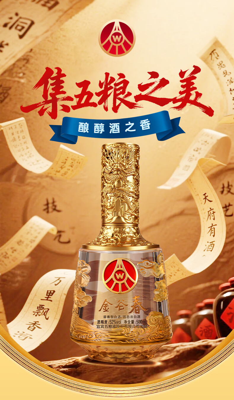五粮浓香金谷春万事如意 浓香型白酒 52度 500mL 2瓶
