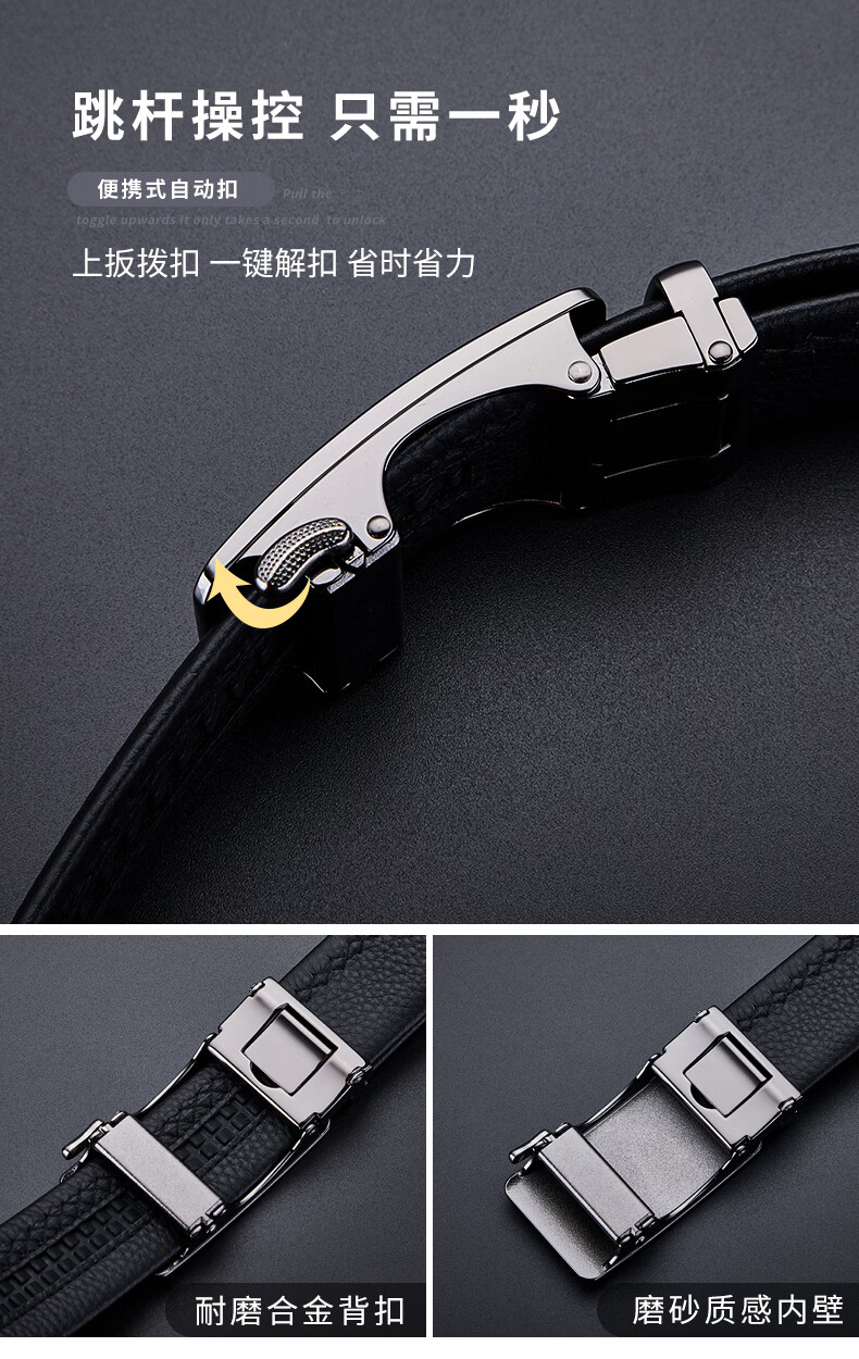 花花公子皮带男真皮自动扣腰带纯牛皮商务头层牛皮裤腰带 生日礼物实用 枪色