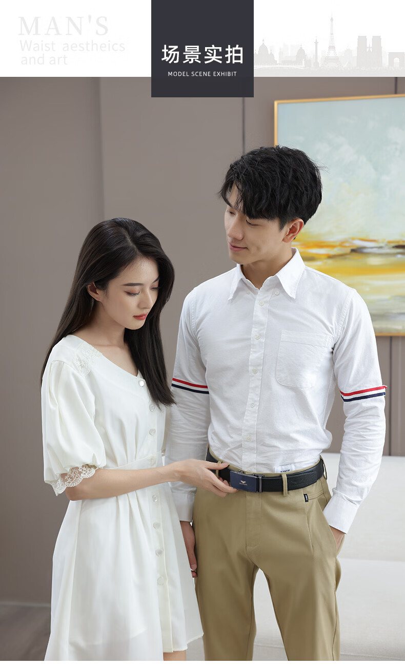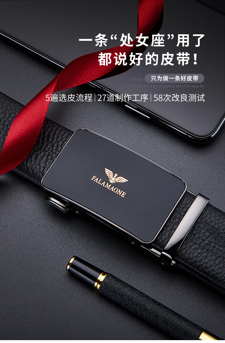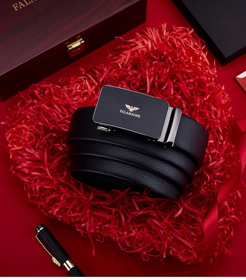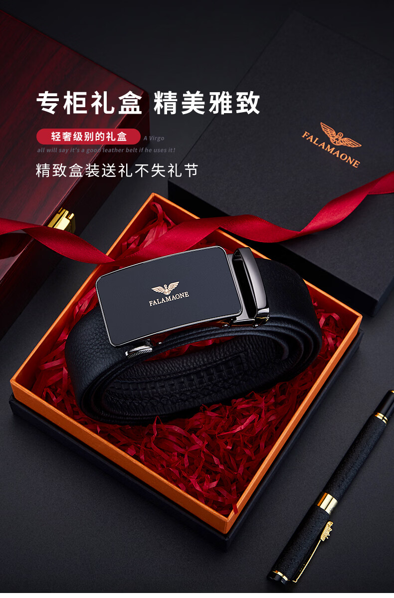 花花公子皮带男真皮自动扣腰带头层纯牛皮裤腰带 生日礼物送父亲送老公 头层牛皮 高档礼盒