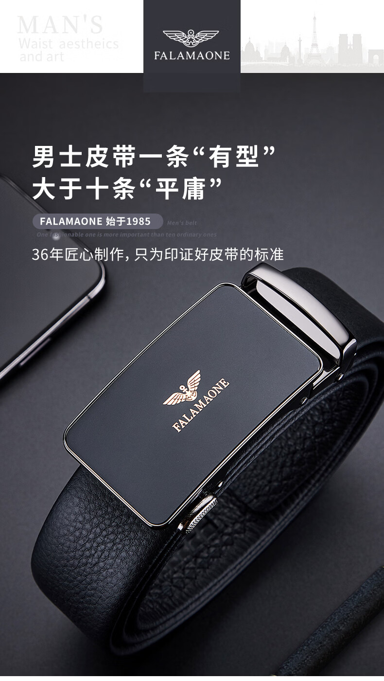 FALAMAONE法莱阿玛尼男士皮带商务腰带休闲男裤带实用高端礼物送男友老公老 枪色【专柜礼盒】 115cm 改尺寸联系客服