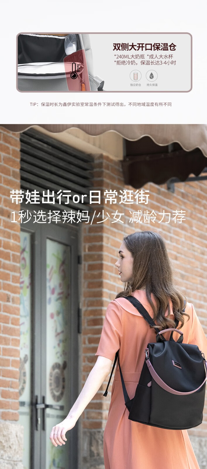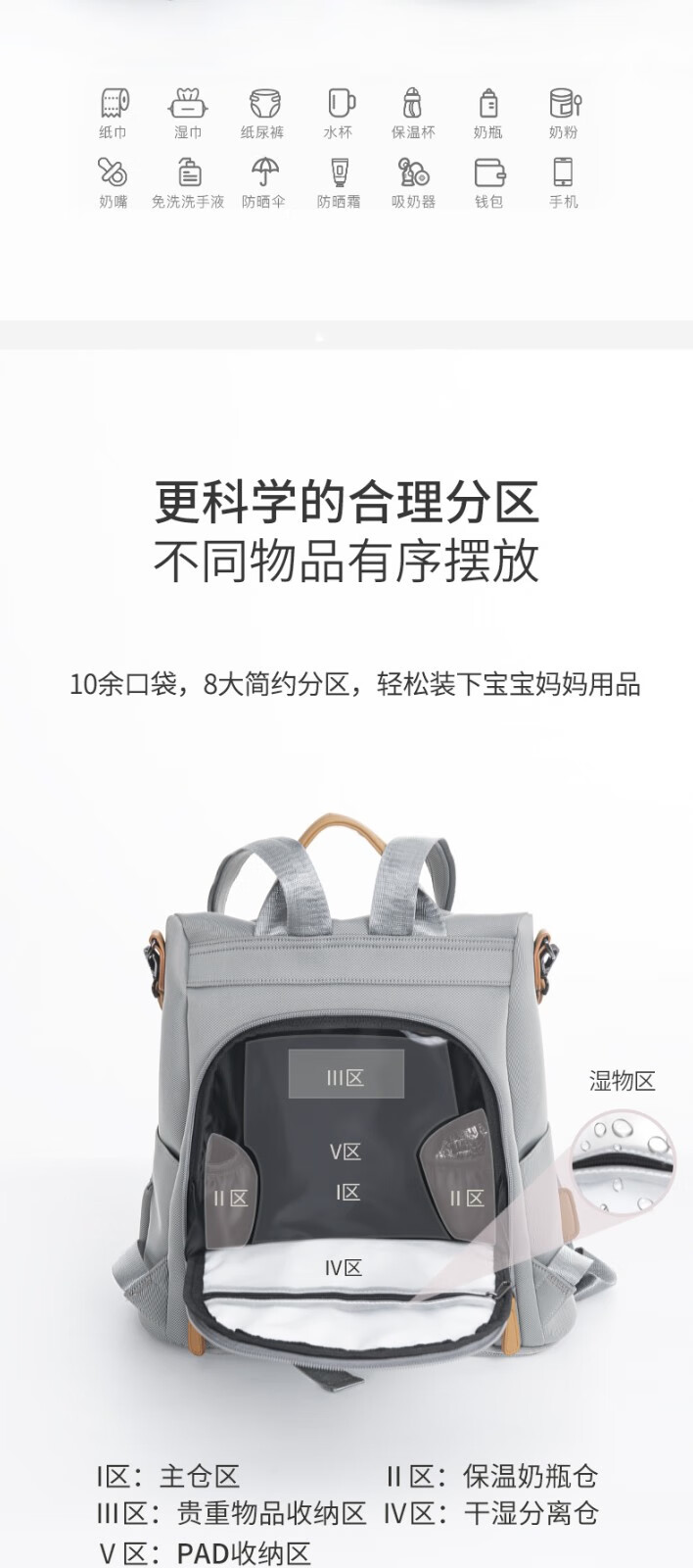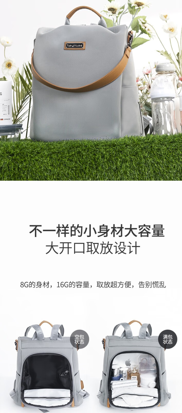 鑫伊妈咪包双肩多功能大容量保温母婴包手提包双肩包宝宝外出行妈妈包 棕榈灰(18L全新升级款)