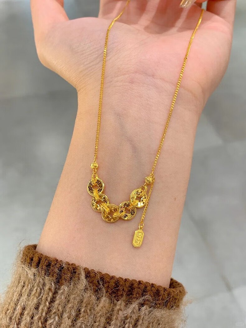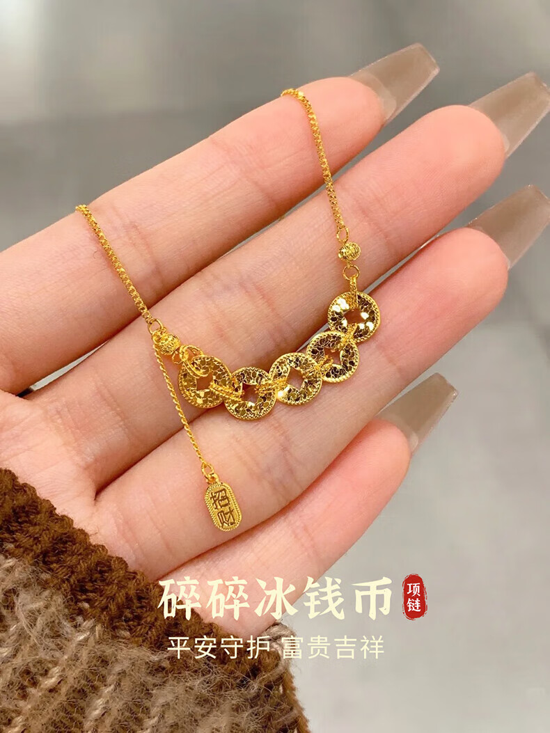 老凤祥爆闪钱多多项链2026新款碎冰冰五帝钱足银吊坠情人节礼物送女朋友 925银五福临门项链【品牌礼盒】