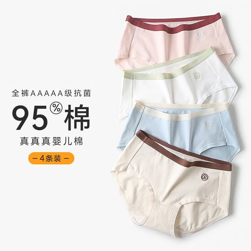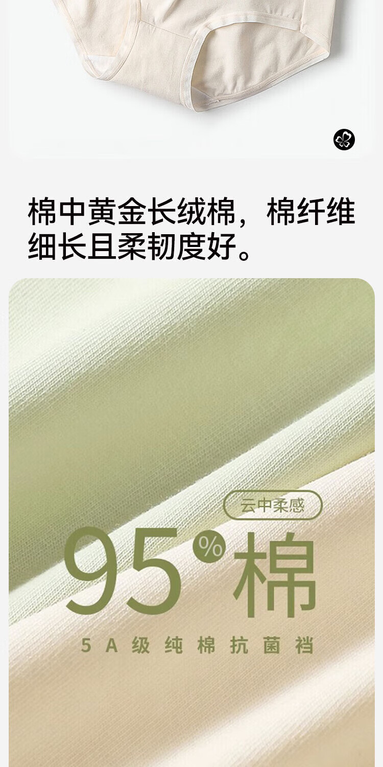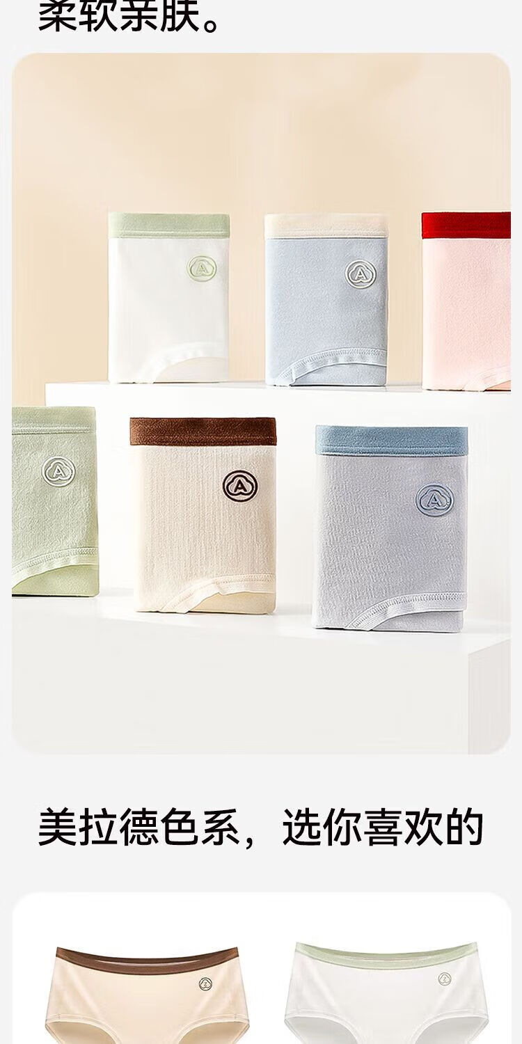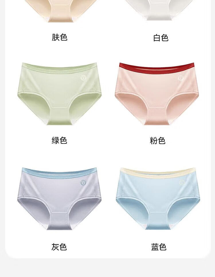 宜而爽100%纯棉女士内裤新款透气少女三角提臀式抗菌底裤头女生 2绿色+2蓝色+2粉色+1灰色 7条 L (95-120斤)