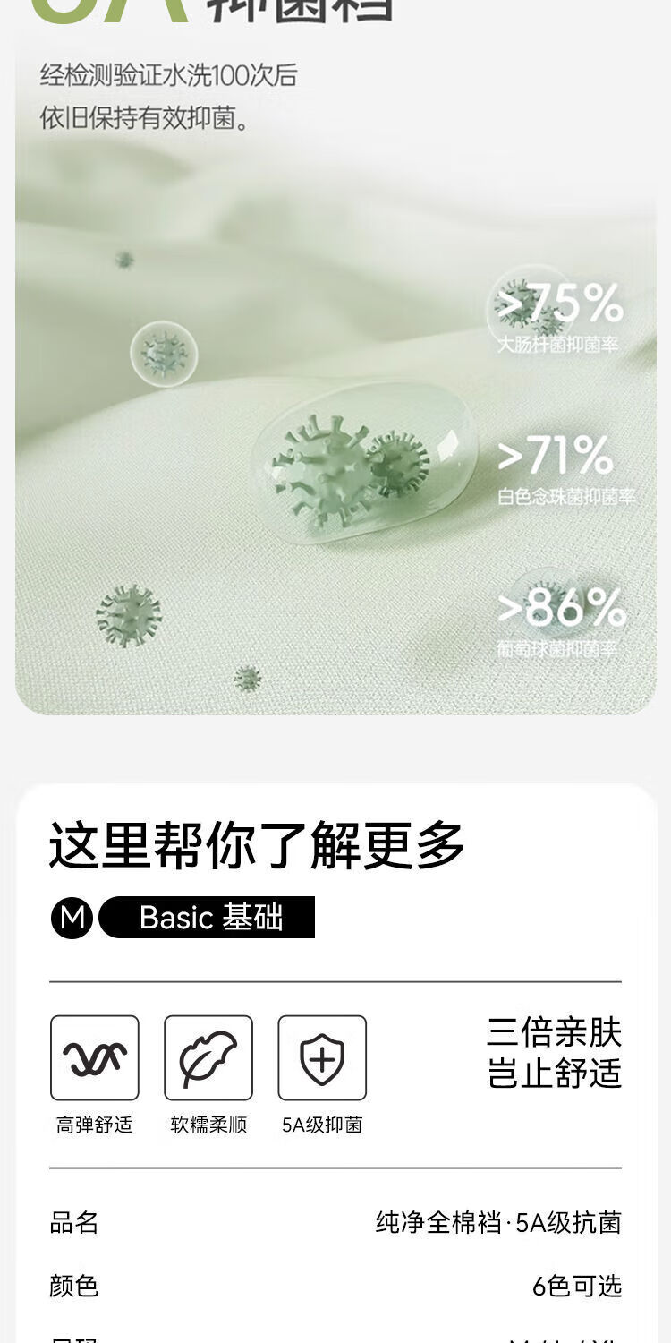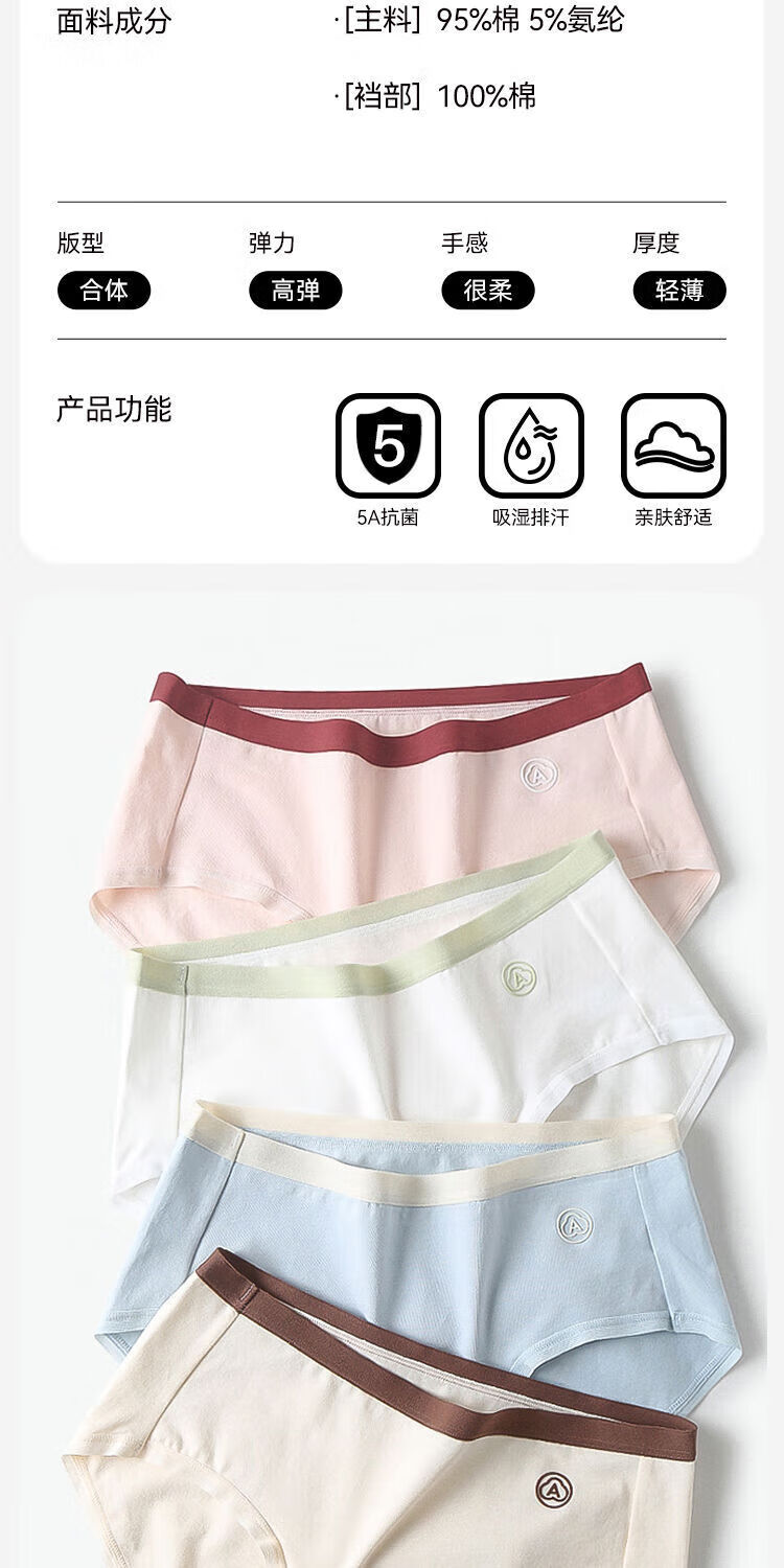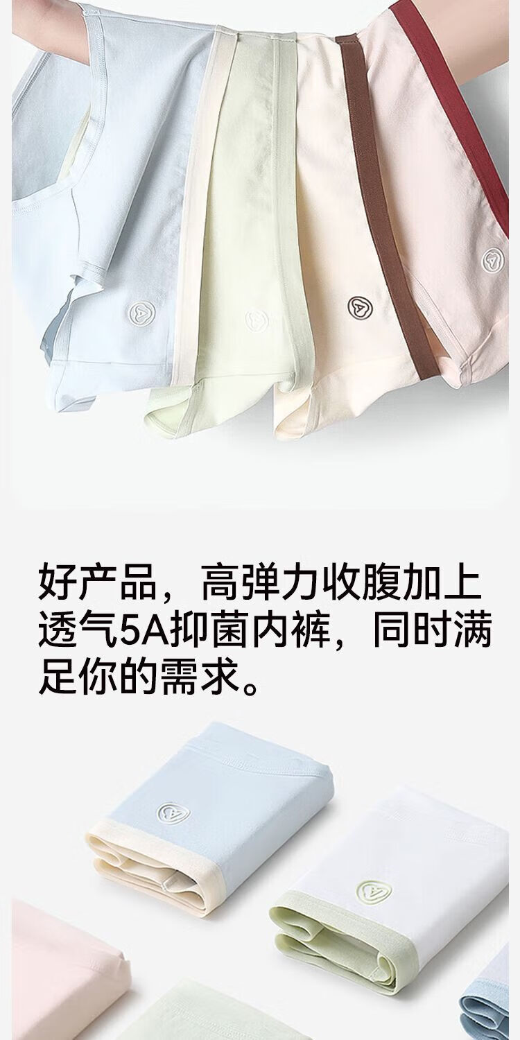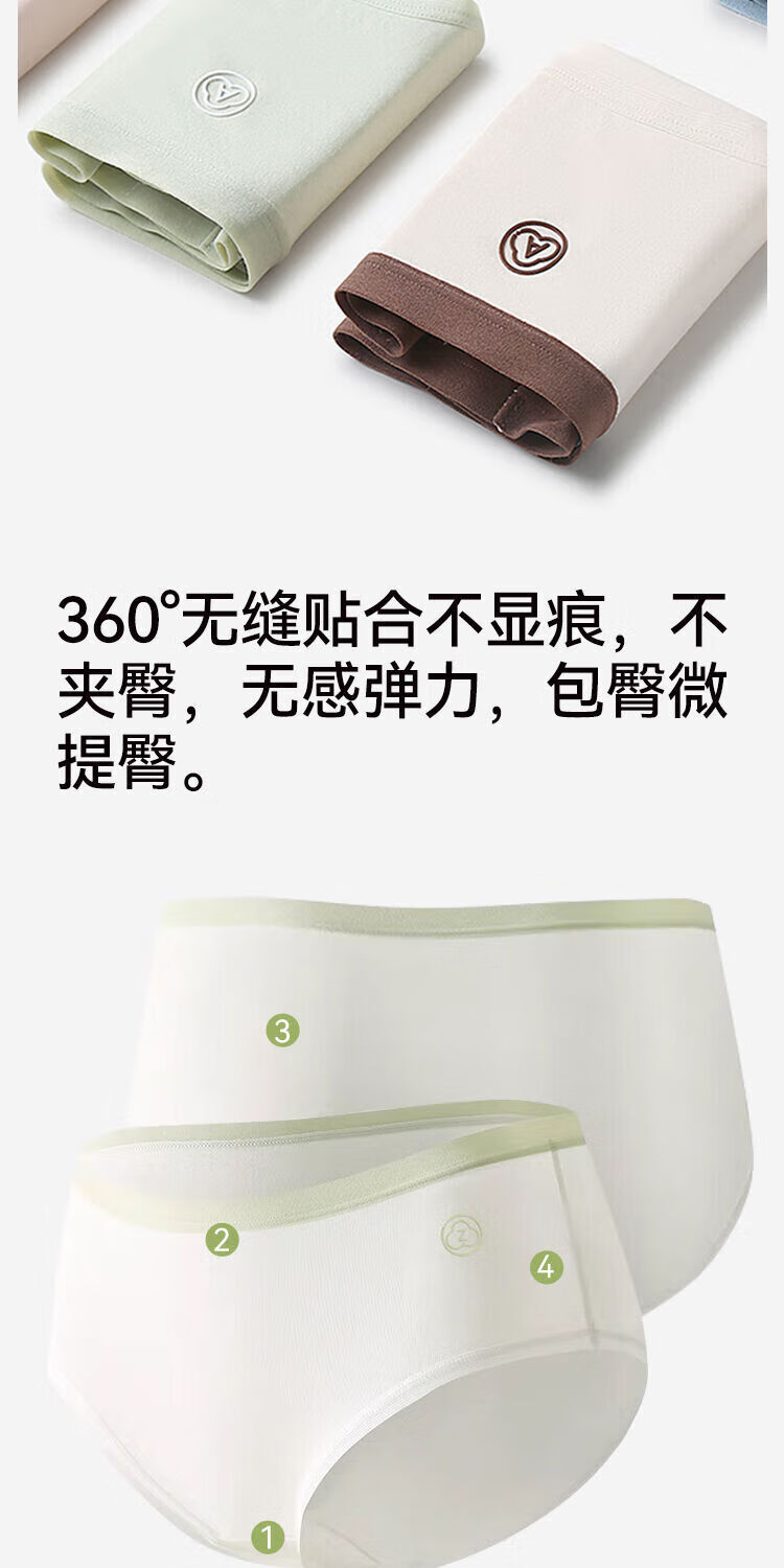 宜而爽100%纯棉女士内裤新款透气少女三角提臀式抗菌底裤头女生 2绿色+2蓝色+2粉色+1灰色 7条 L (95-120斤)