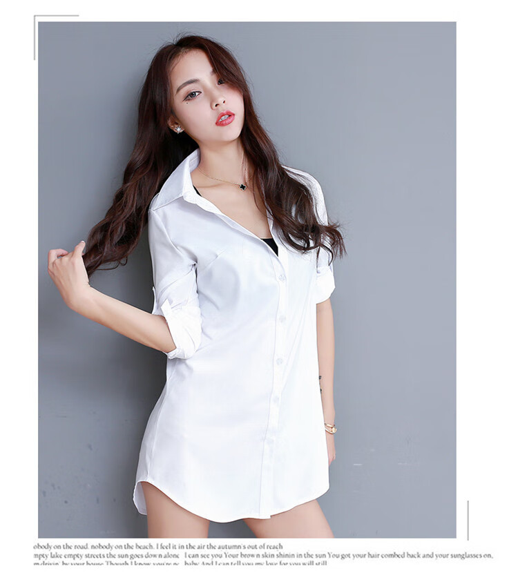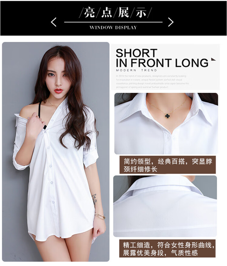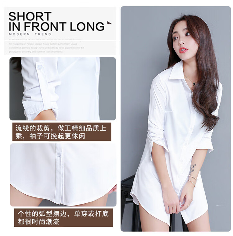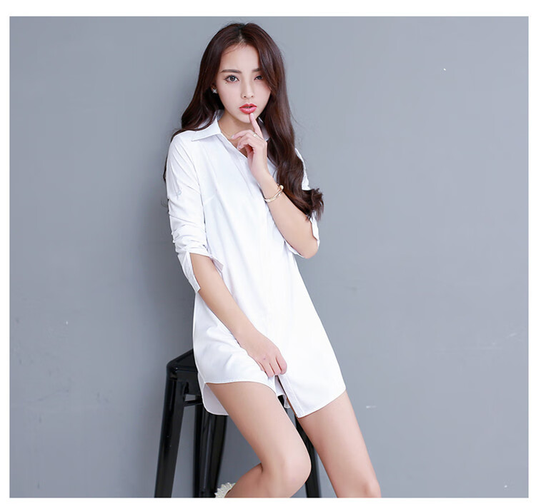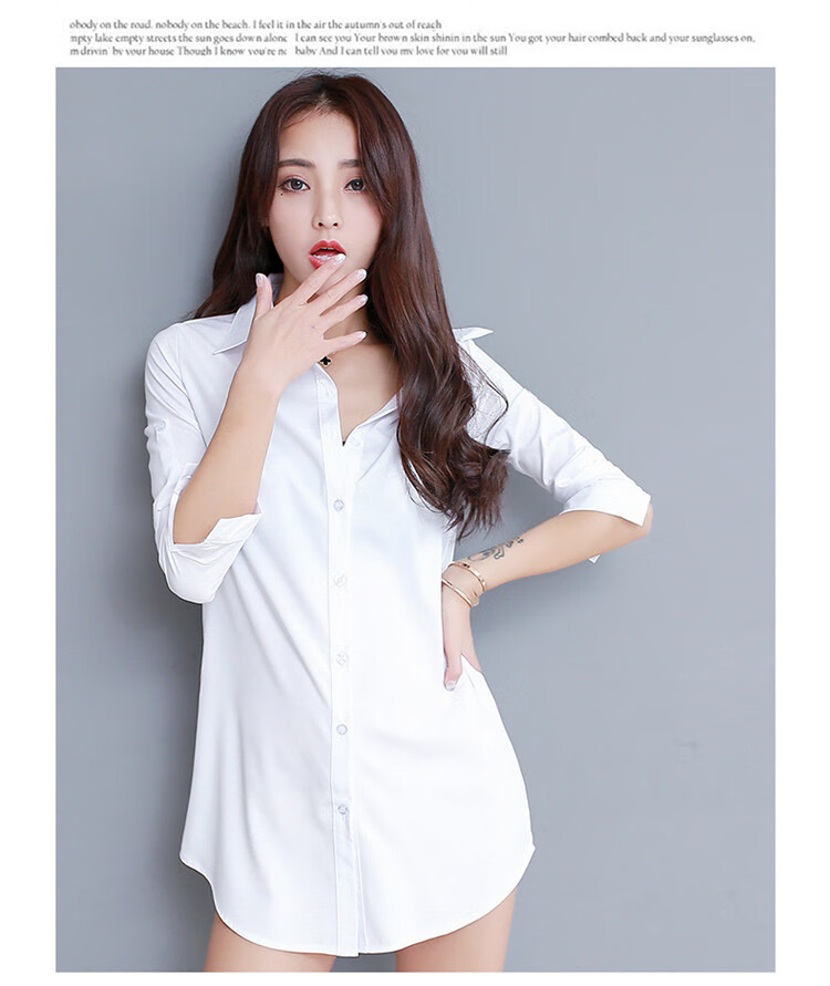 【严选百货】韩版宽松中长款女式白衬衫秋现货休闲性感纯色长袖衬 白色 3XL