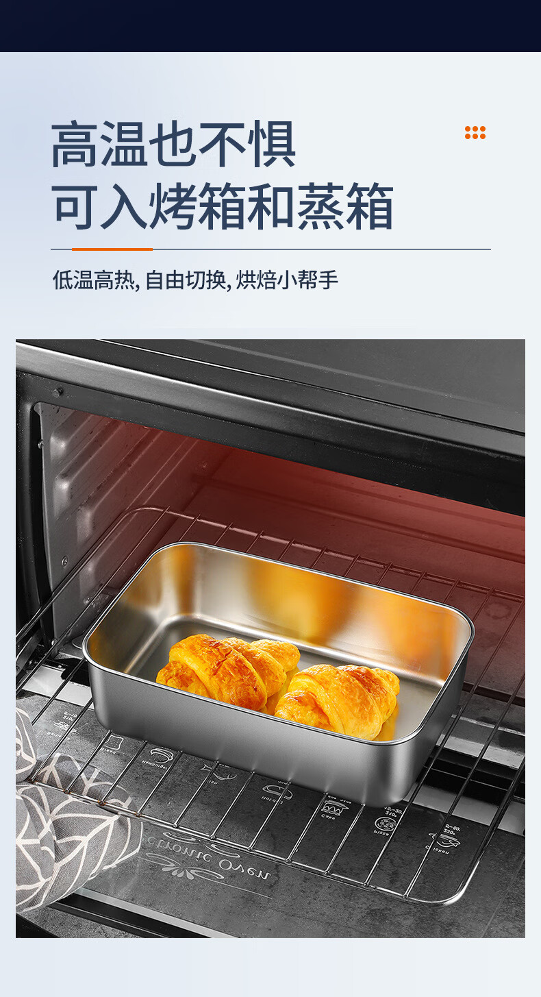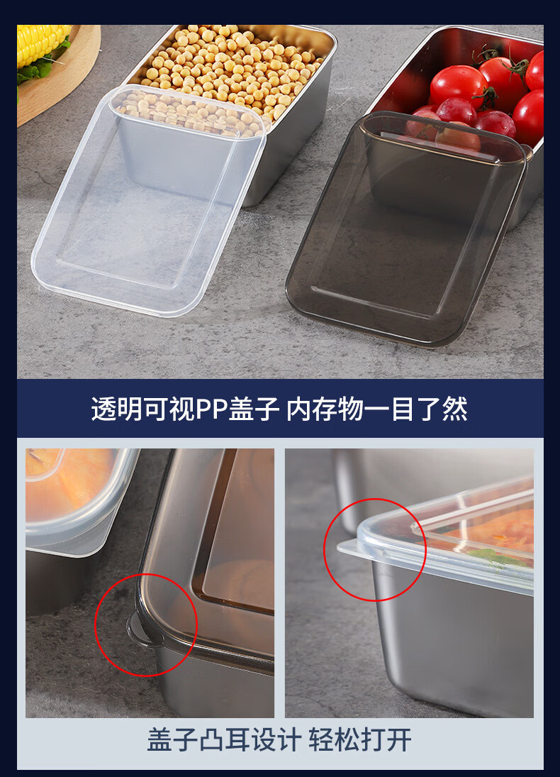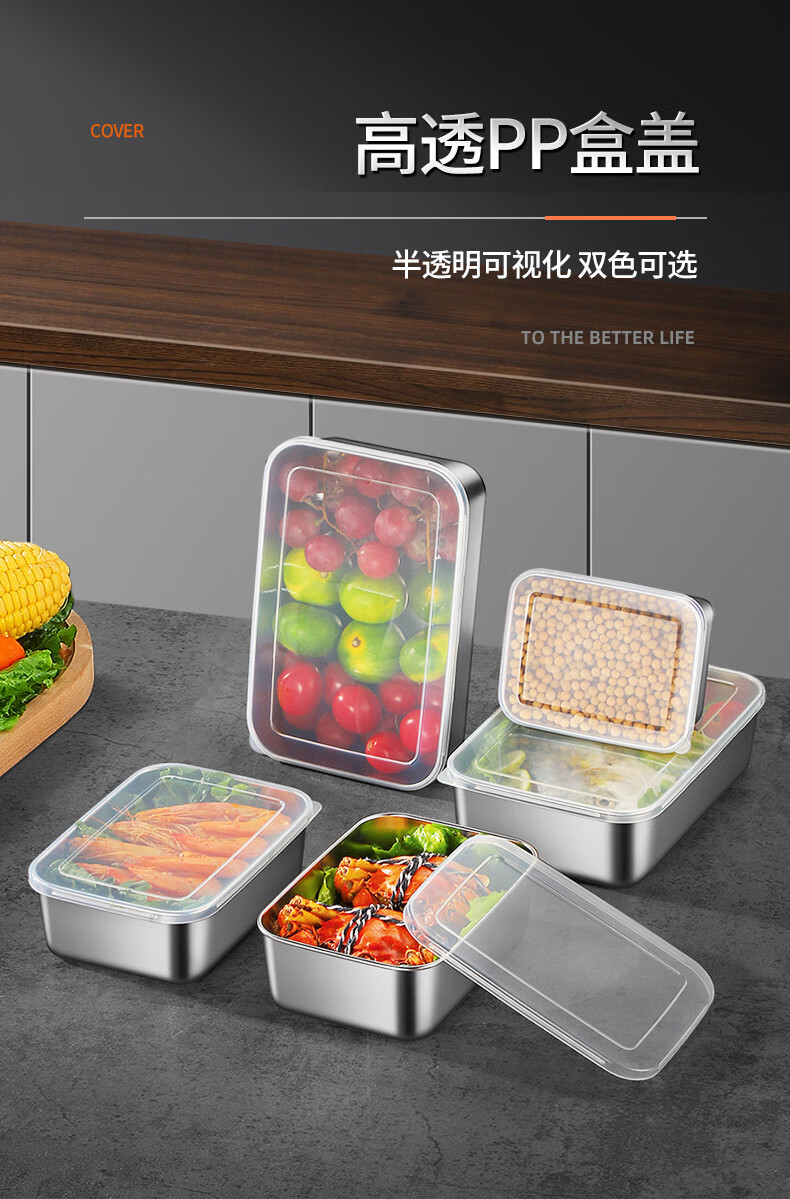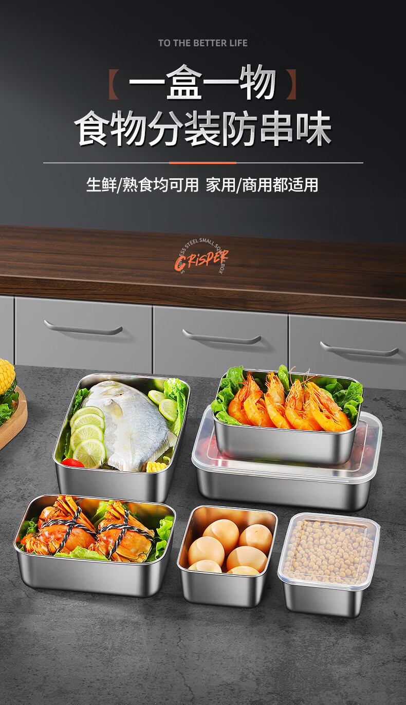 【工厂直发】不锈钢长方形保鲜盒带盖密封午餐备菜盘食品冰箱收纳 方型304小号盒【带盖】 银色