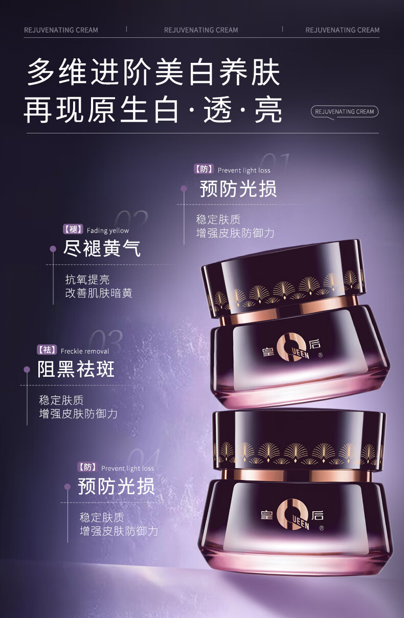 片仔癀皇后牌珍珠霜美白祛斑霜淡化黑色素去雀斑补水去黄提亮肤色面霜女 【特惠囤货装】美白祛斑保湿霜2瓶 共100g
