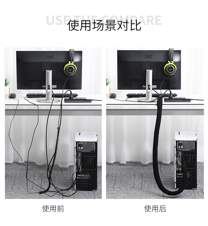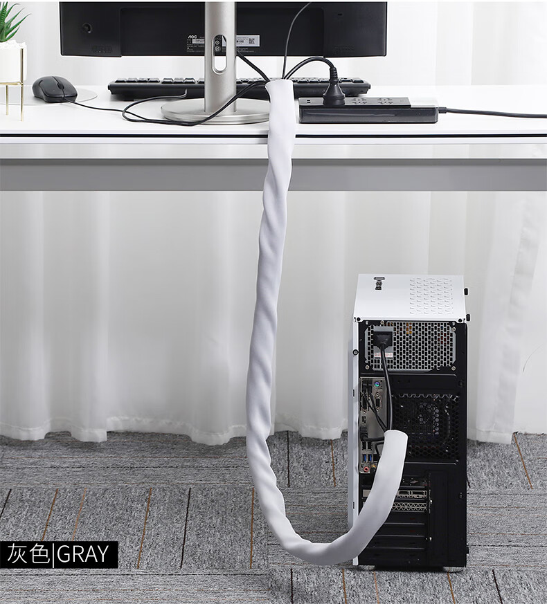 台式电脑线收纳束线理电线器包线管收纳线理线带防咬线套整理 灰色一包10根卡扣型捆线带