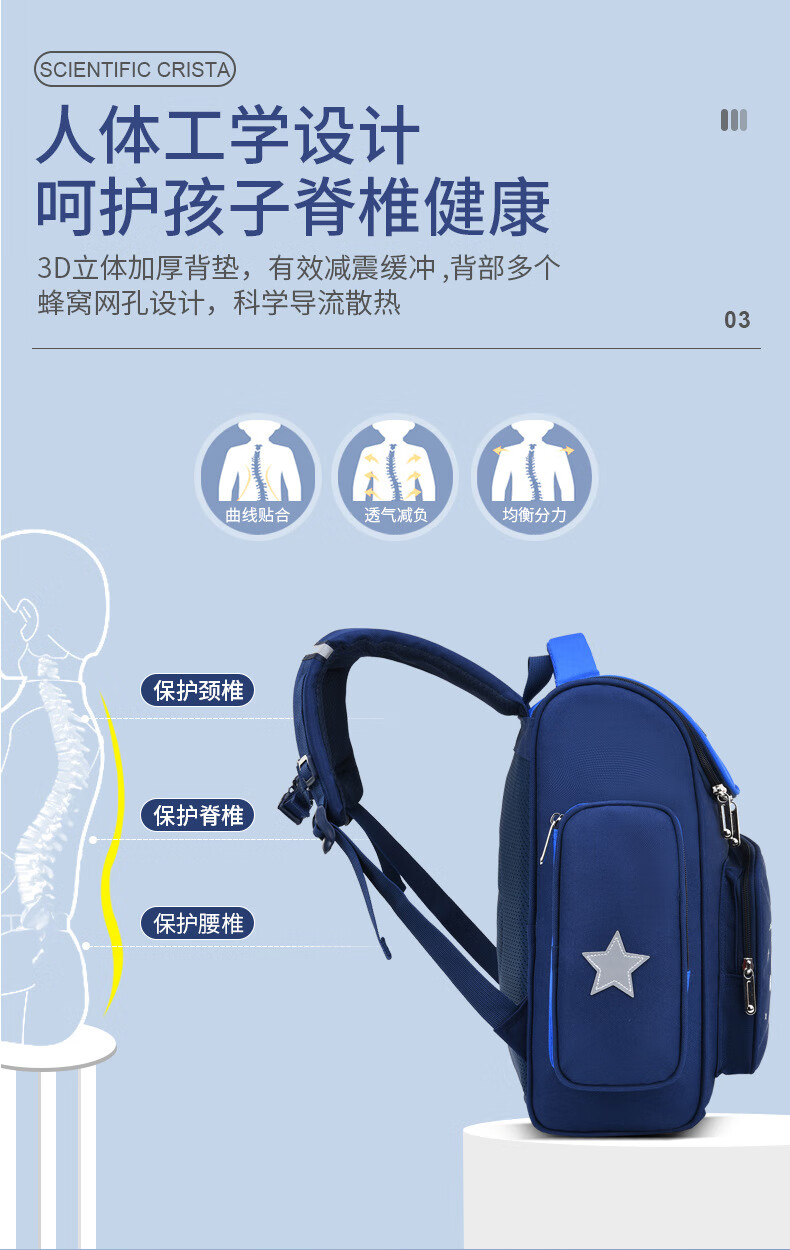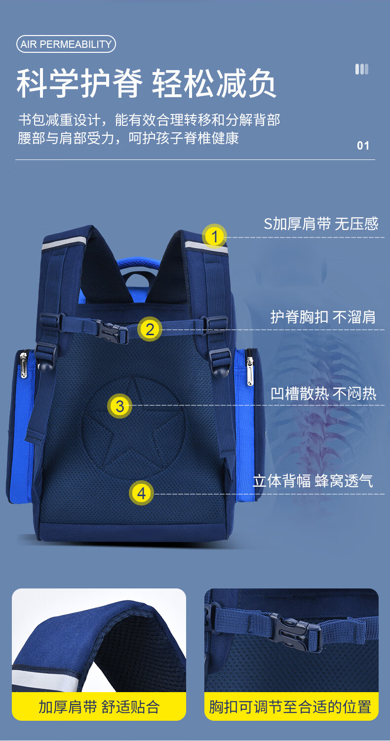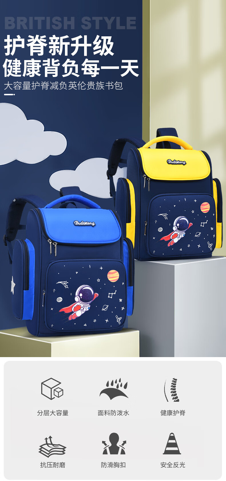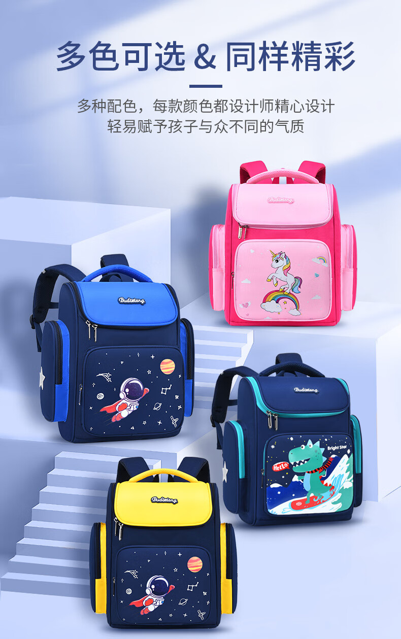 漫步时空书包 小学生1-3年级超轻减负儿童背包男女减压护脊双肩包 4976 宝蓝黄
