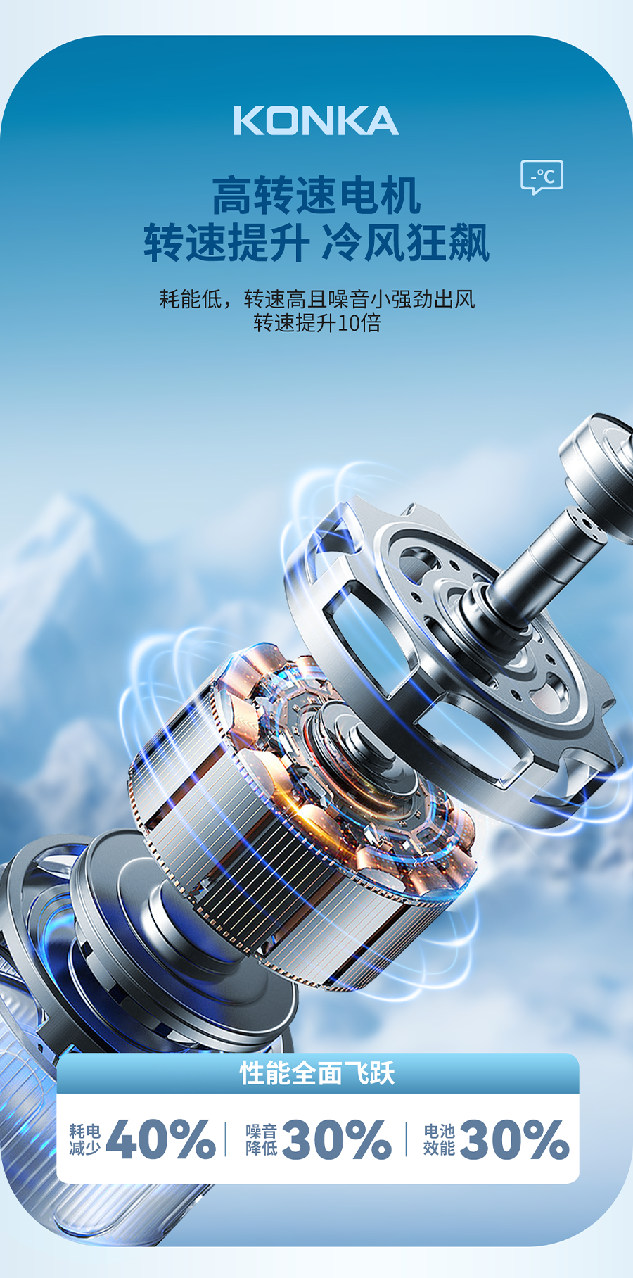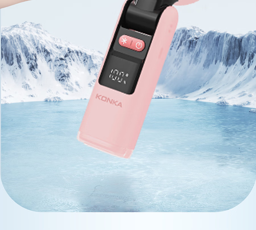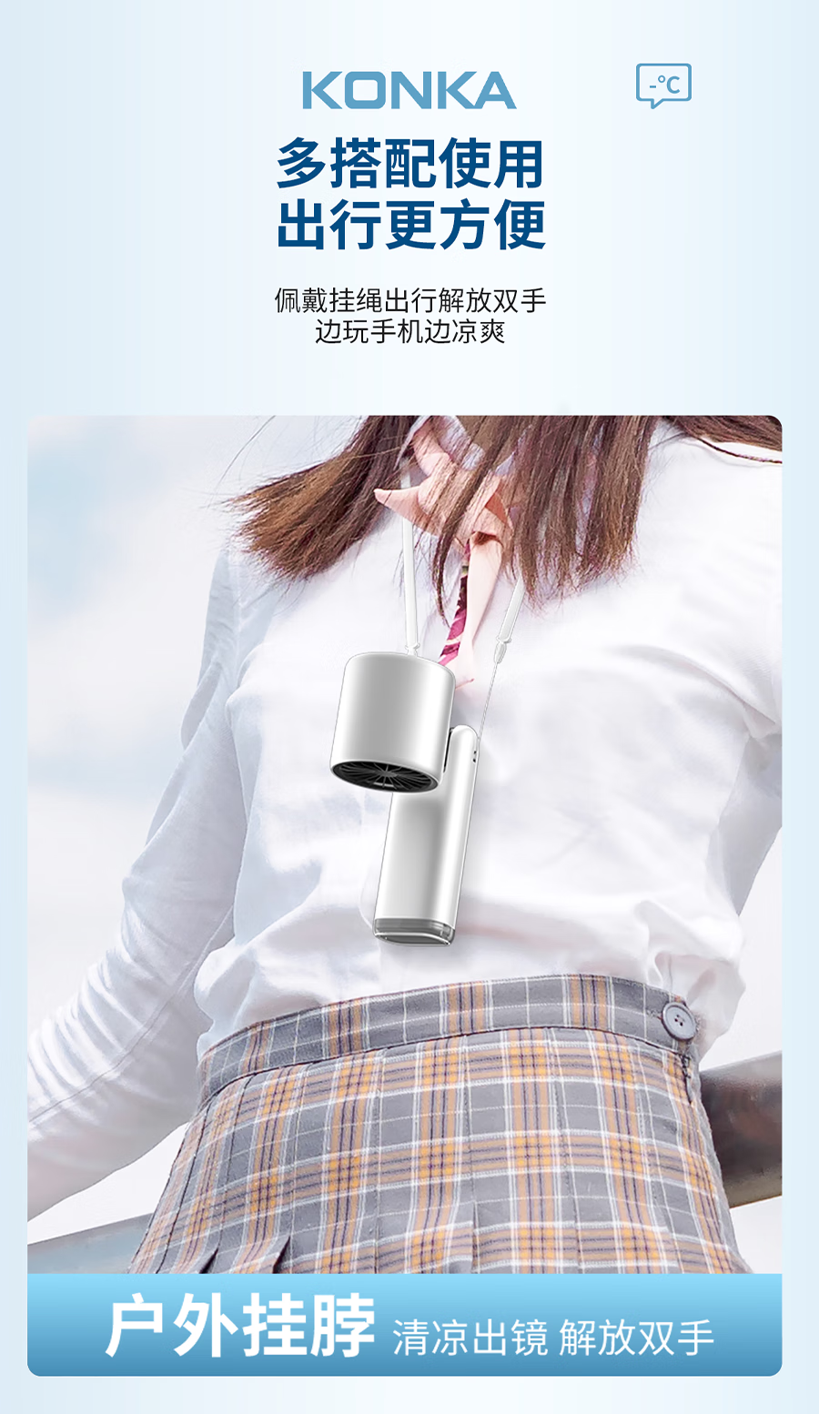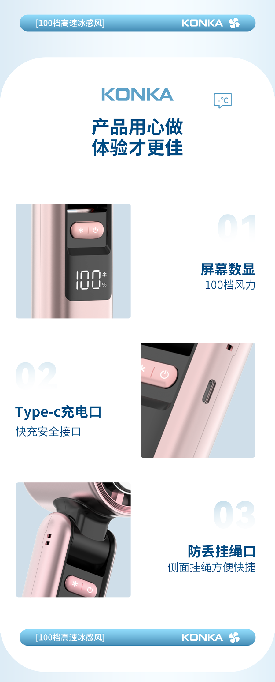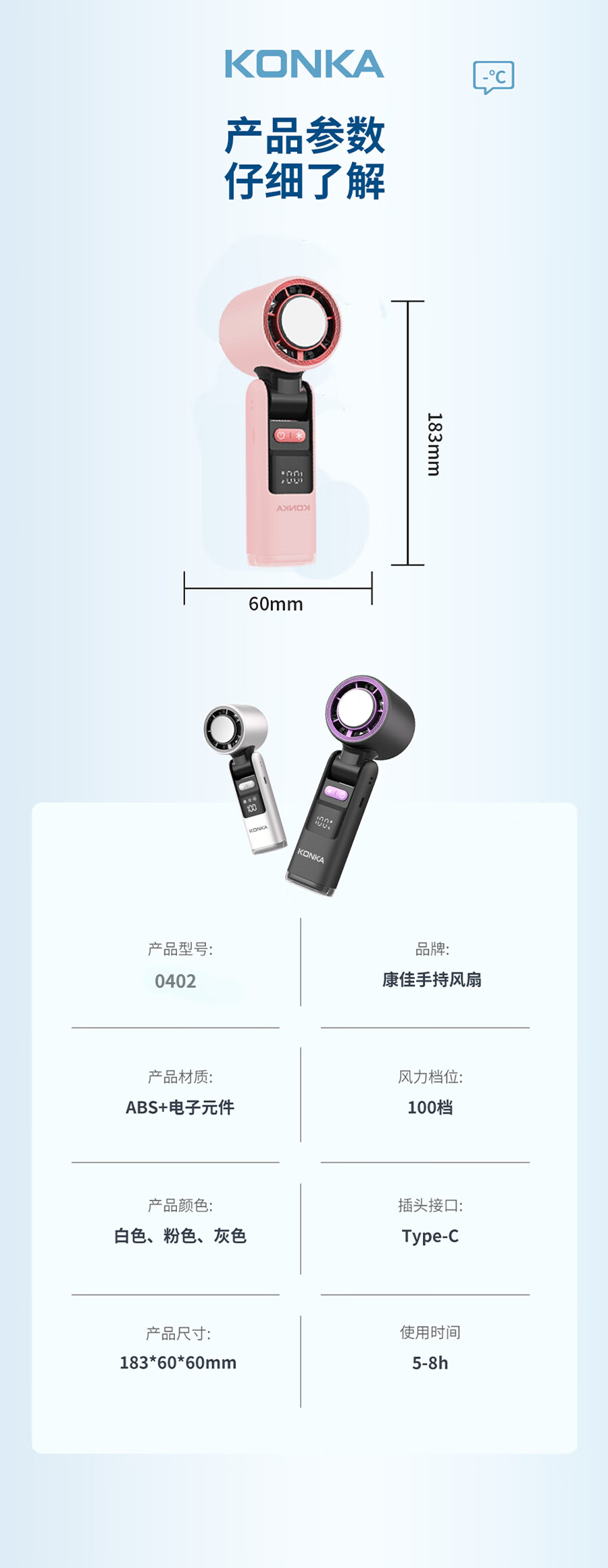 康佳手持小风扇USB充电式便携户外半导体制冷可折叠桌面户外100档高速大风力强劲降温神器 白色 高速100档+制冷+底部LED照明+可折叠+挂绳