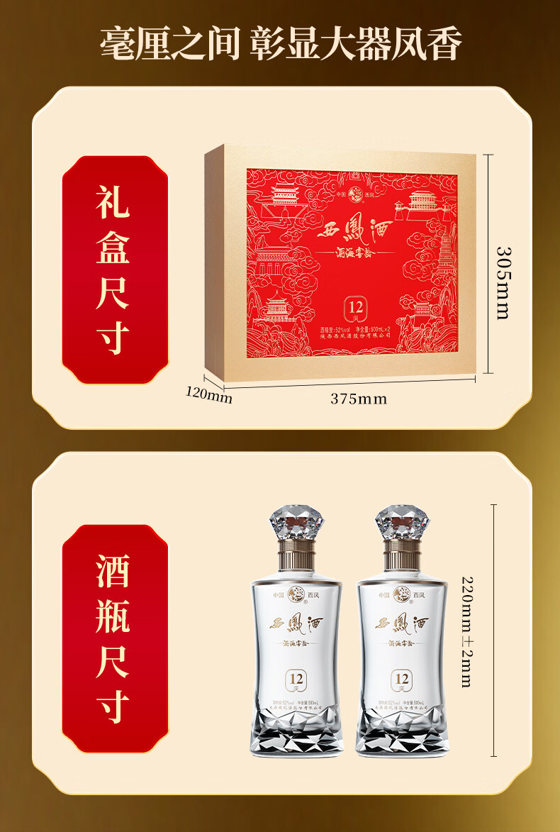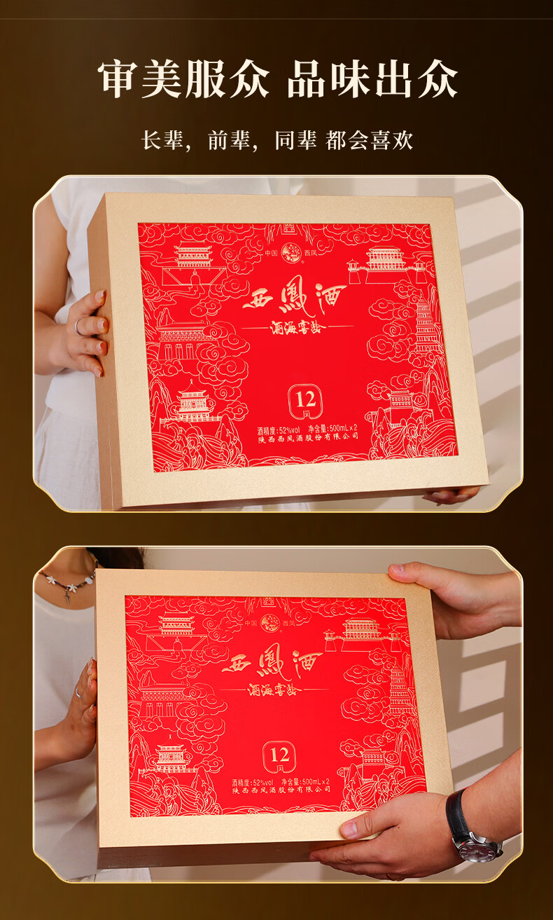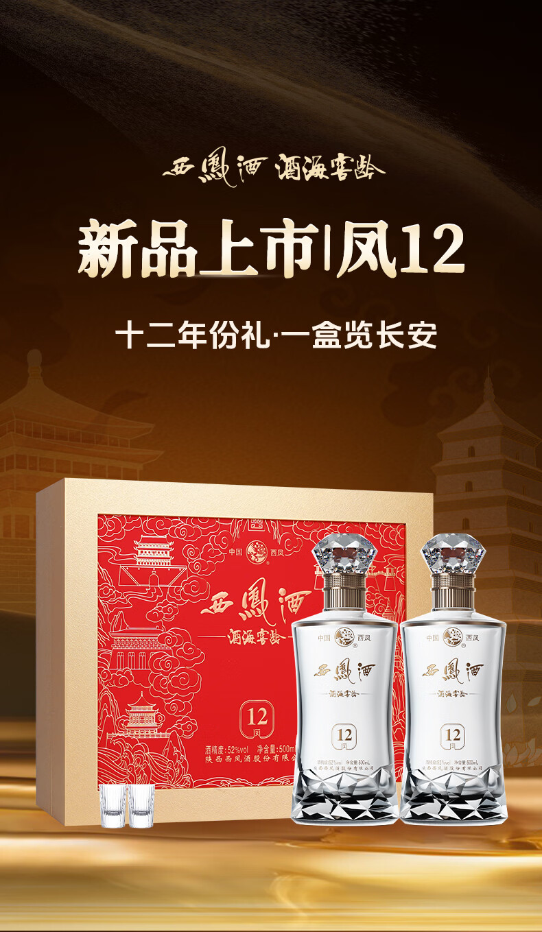 西凤酒12年礼盒送礼酒高档礼品白酒礼盒高度酒陕西特产500ml*2瓶 52度 500mL 2瓶 西凤酒12年礼盒