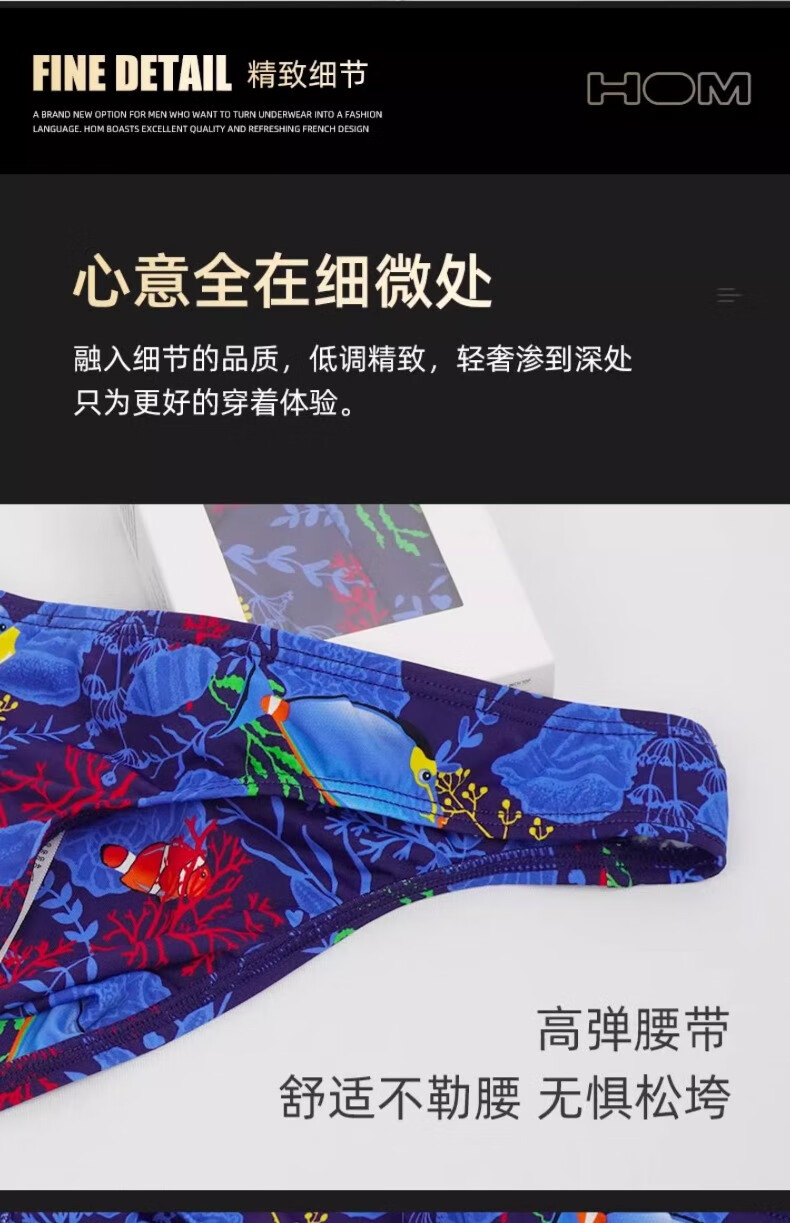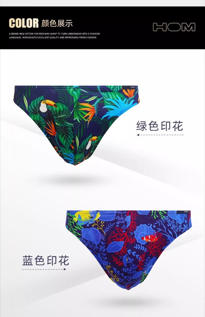HOM法国男士丁字裤低腰性感三角裤男内裤时尚潮流印花单丁透气短裤衩 三条装 (颜色备注或联系客服) XL