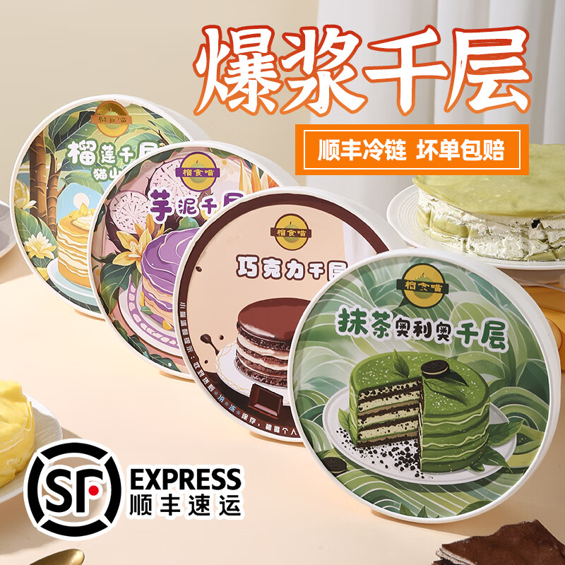 榴食喵猫山王榴莲千层蛋糕小蛋糕千层榴莲蛋糕盒子蛋糕动物奶油西点甜品 巧克力千层400g*1盒