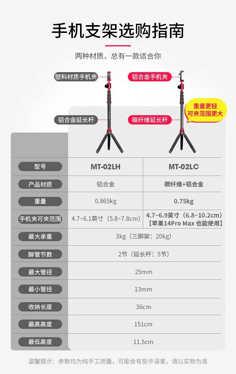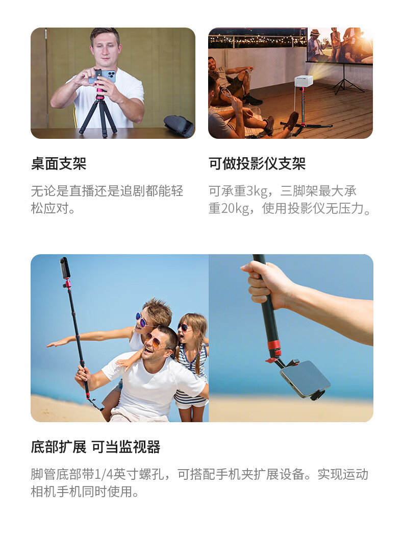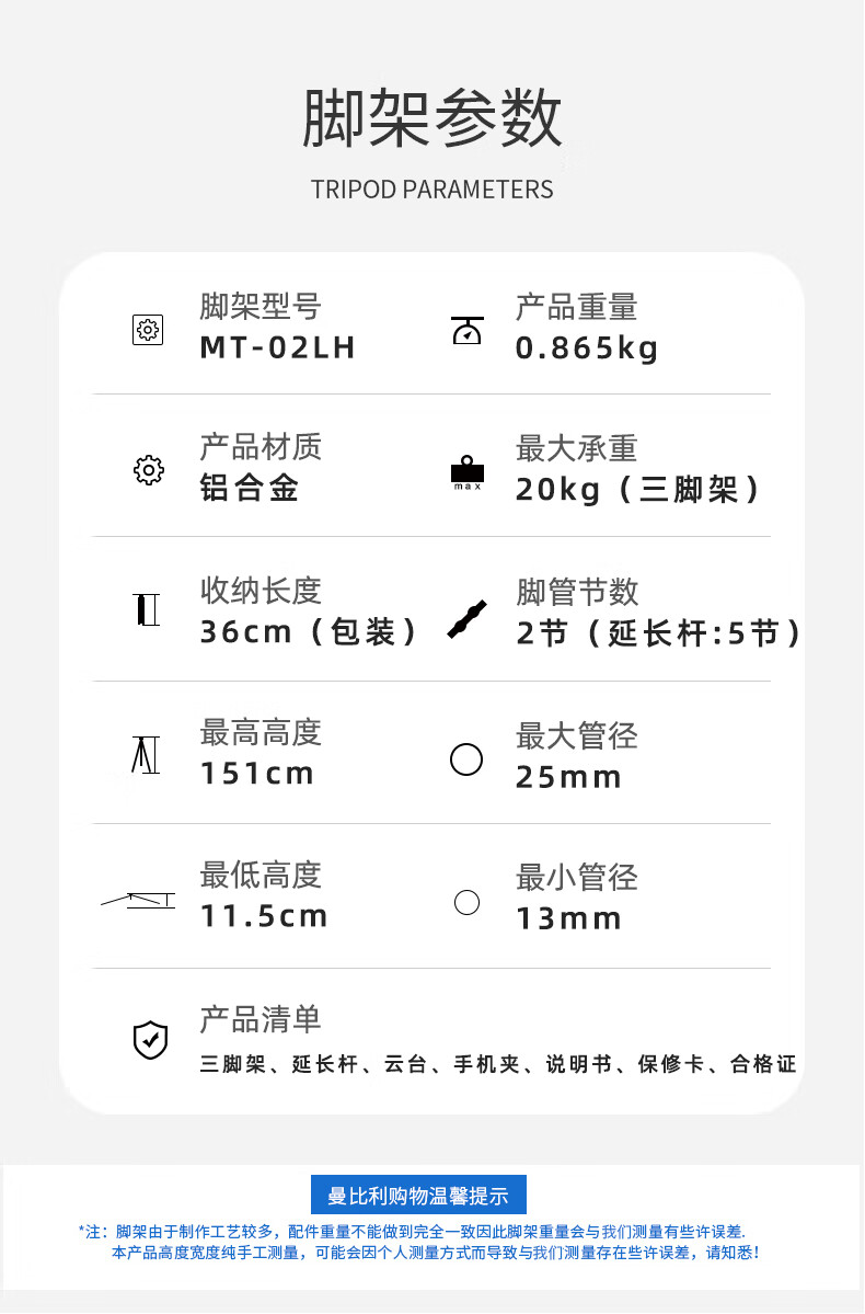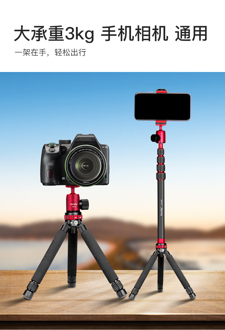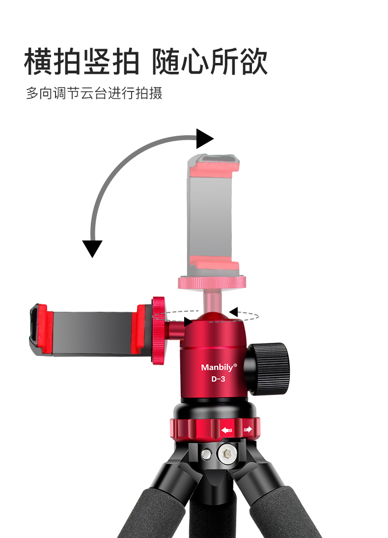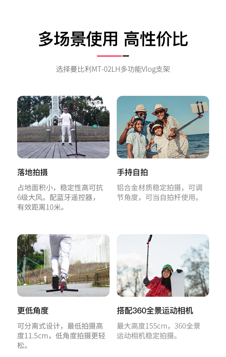 曼比利(Manbily)MT-02LH手机支架直播三脚架迷你运功相机手持Pocket3便携户外直播短视频落地手机平板自拍投影支架 MT-02LH