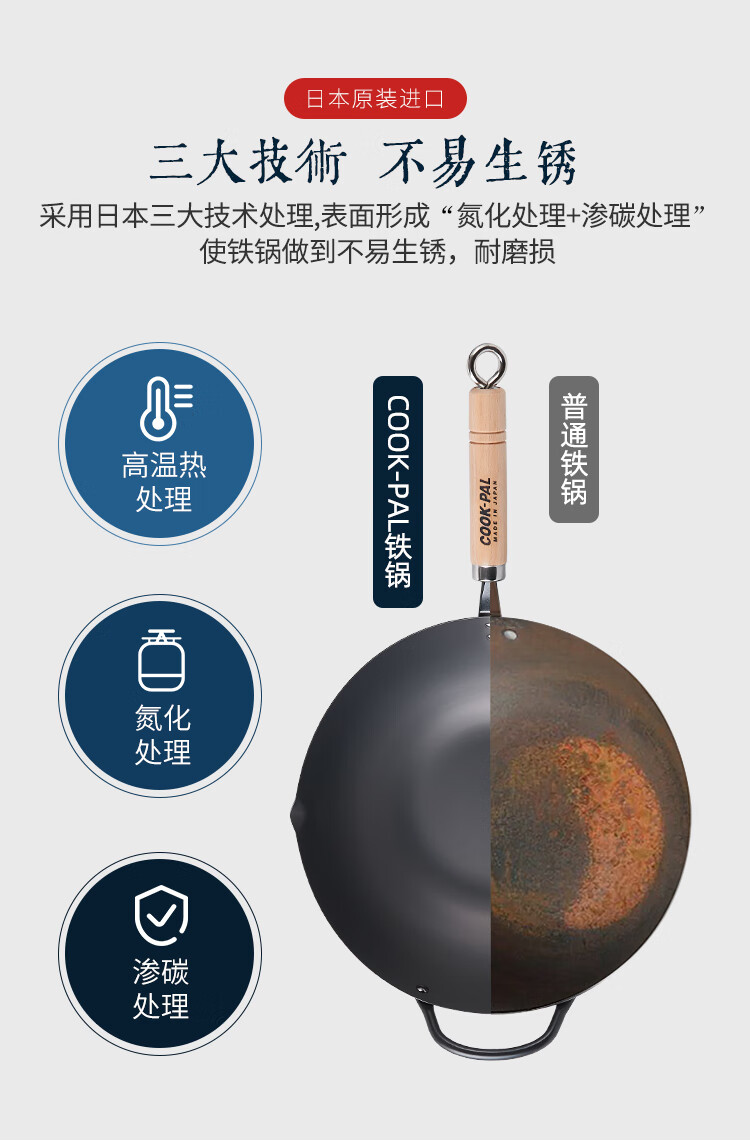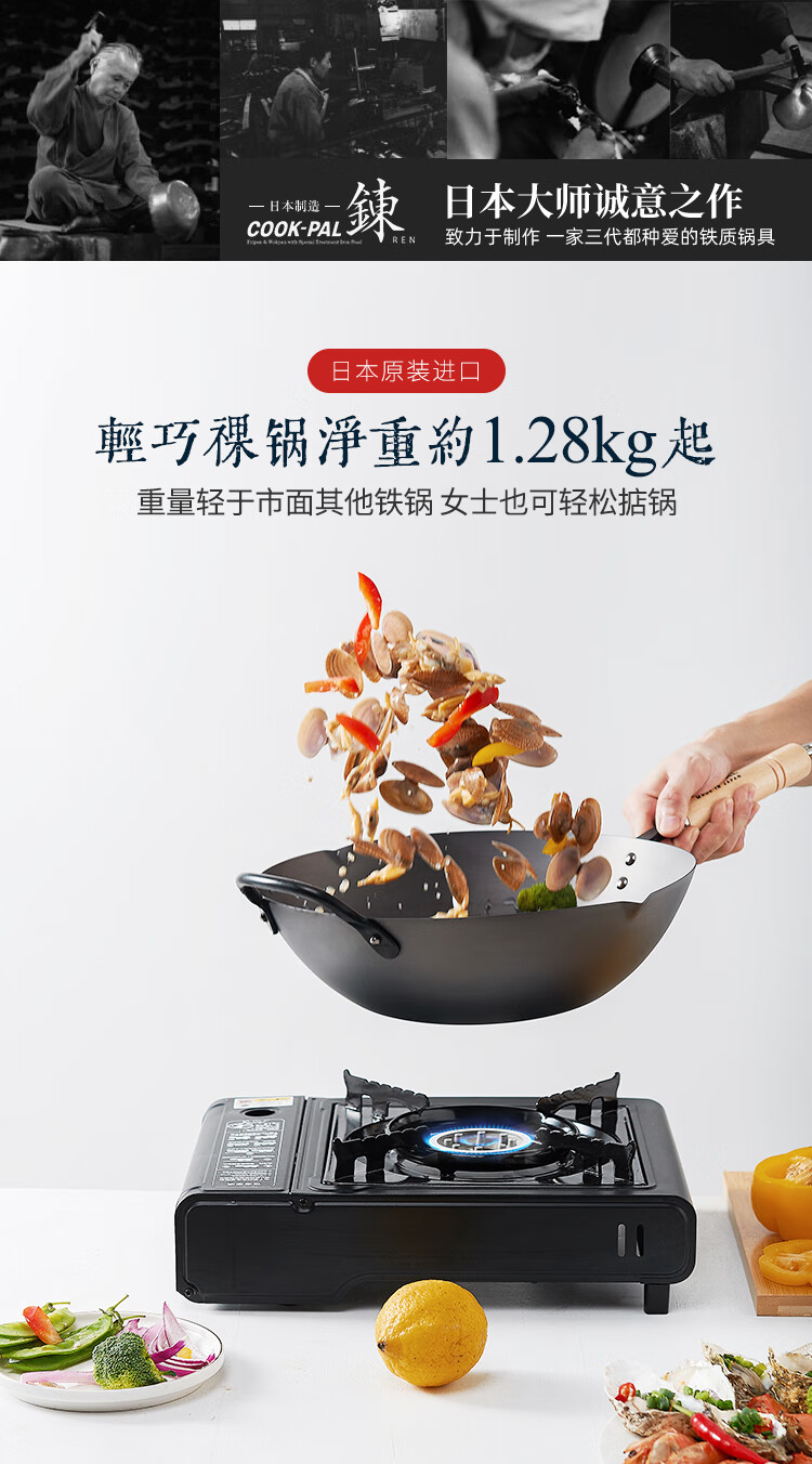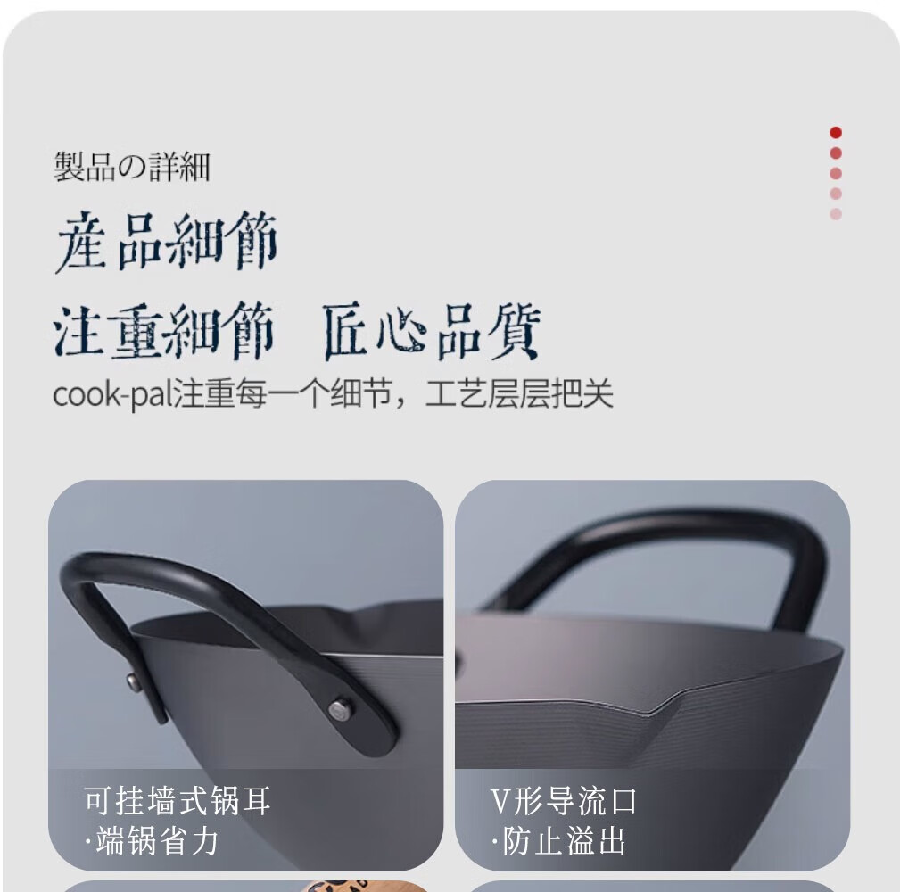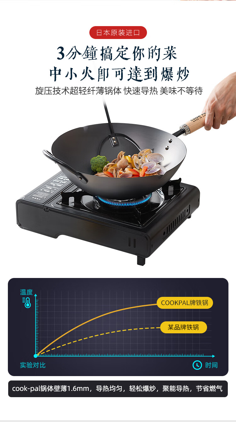 COOK-PAL吉川日本原装进口炒锅铁锅无涂层不粘锅熟铁氮化锅家用炒菜锅 锅+原装盖+原装铲+20cm雪平锅(关注店铺赠木筷) 36cm