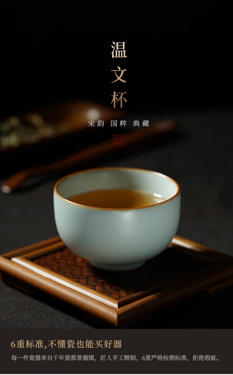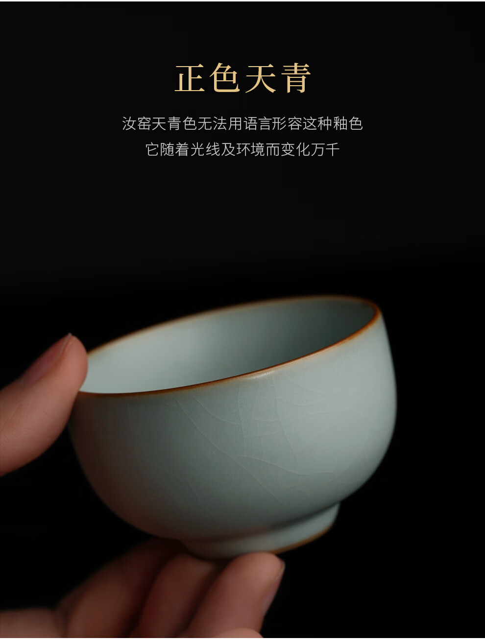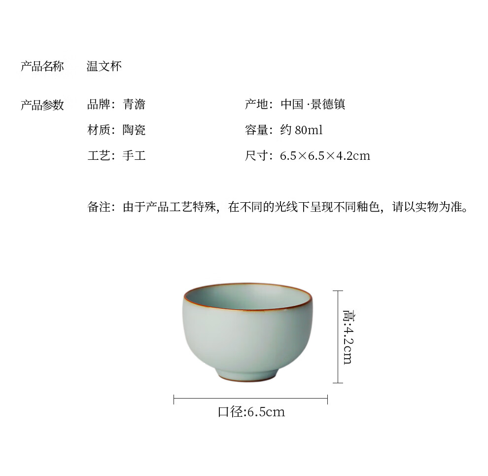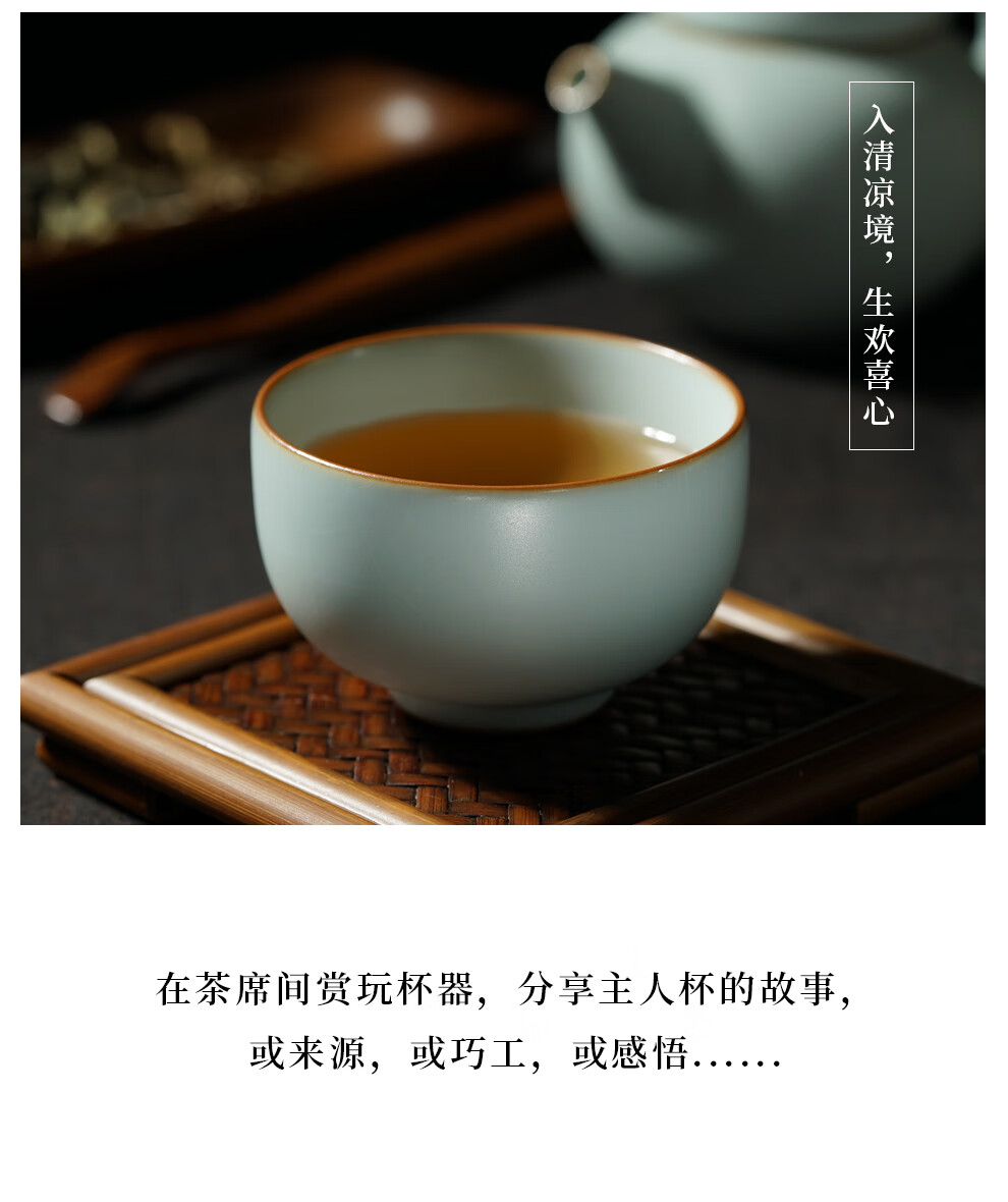 青澹汝窑茶杯茶碗主人杯汝瓷功夫茶具陶瓷纯手工天青色景德镇温文杯 温文杯约80ml 开片可养