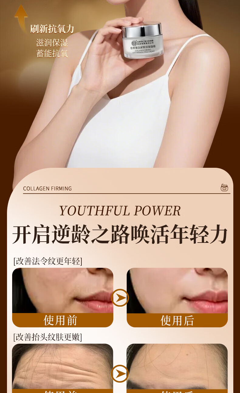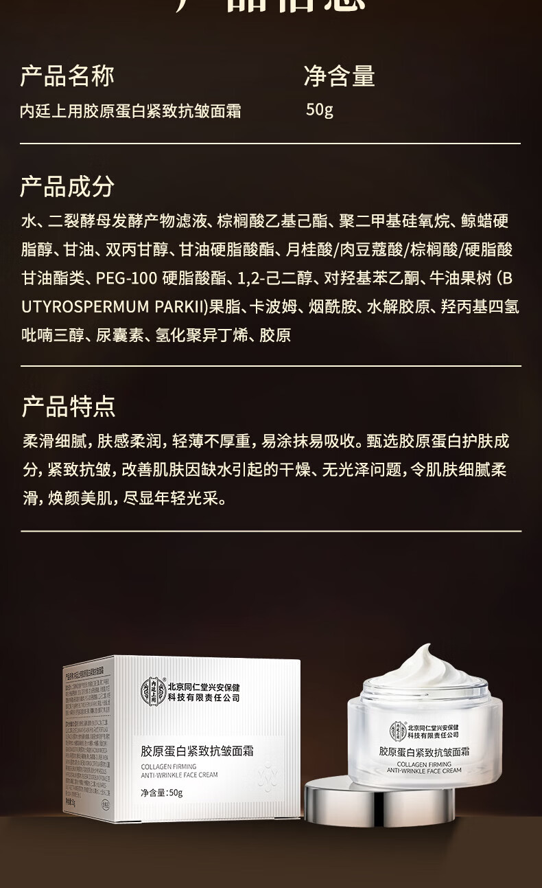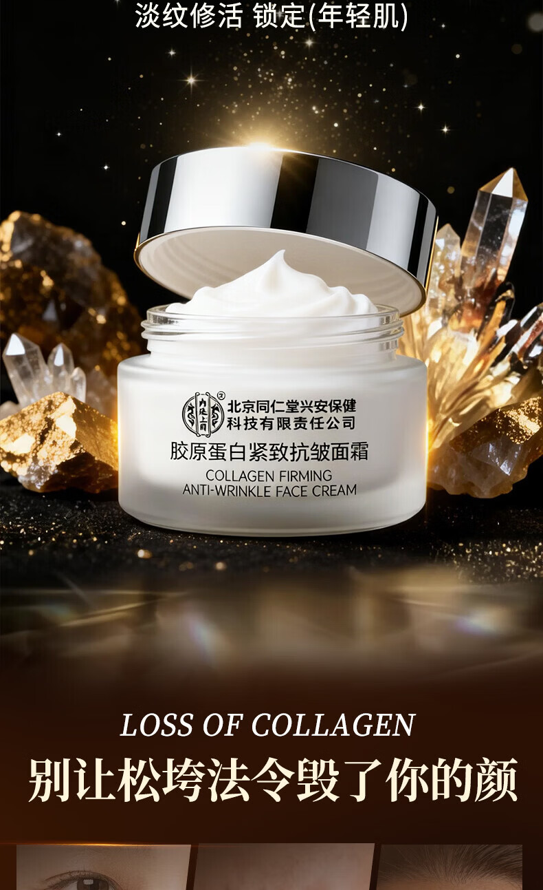 北京同仁堂胶原蛋白紧致抗皱面霜50g补水保湿去皱纹抬头纹法令纹鱼尾纹护肤 【1瓶体验装】50g/瓶