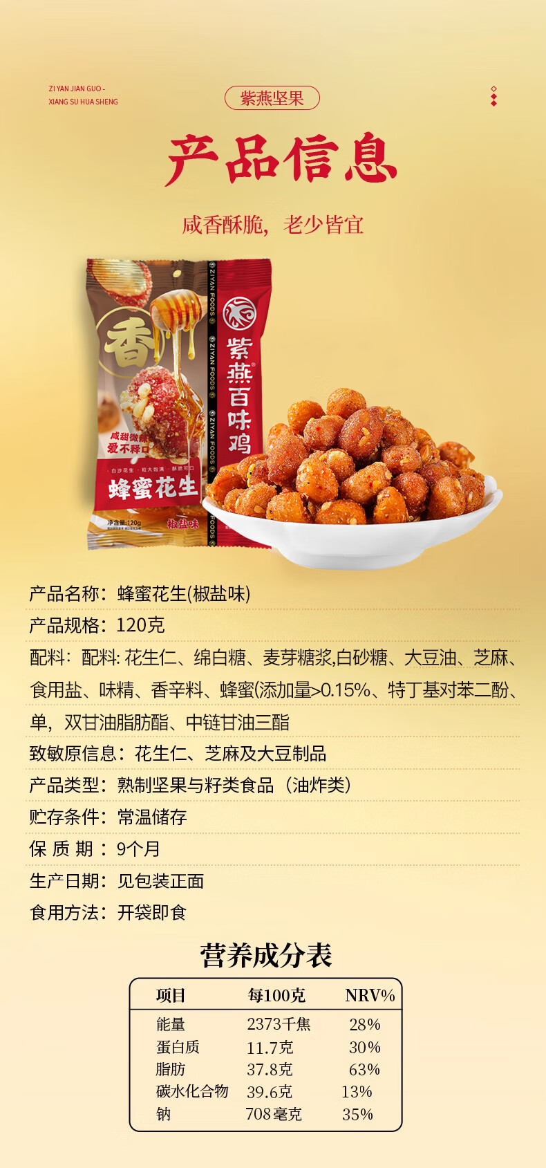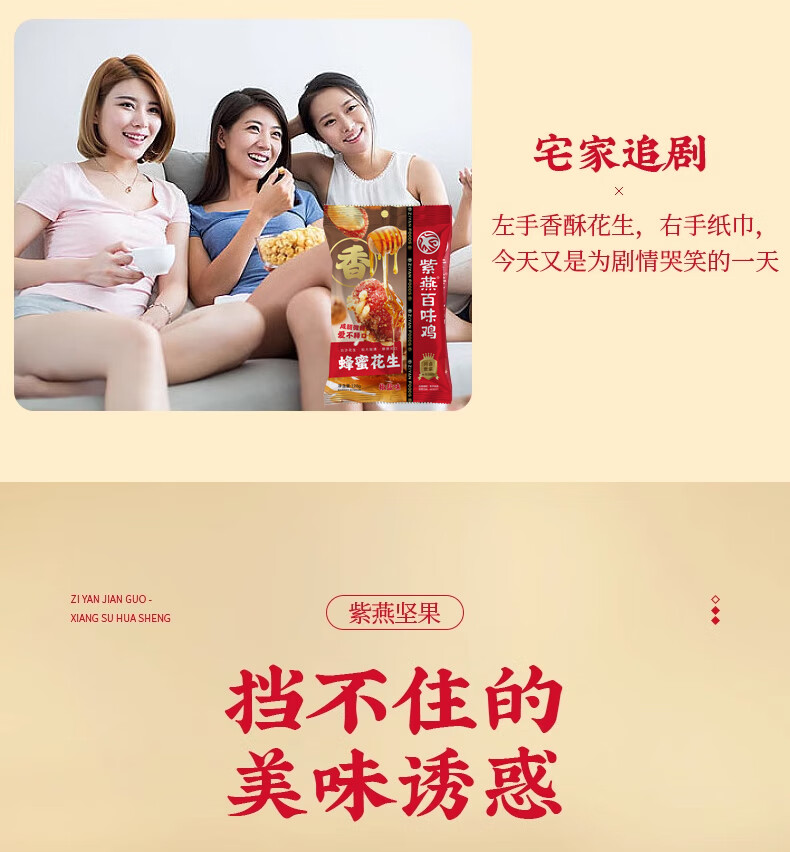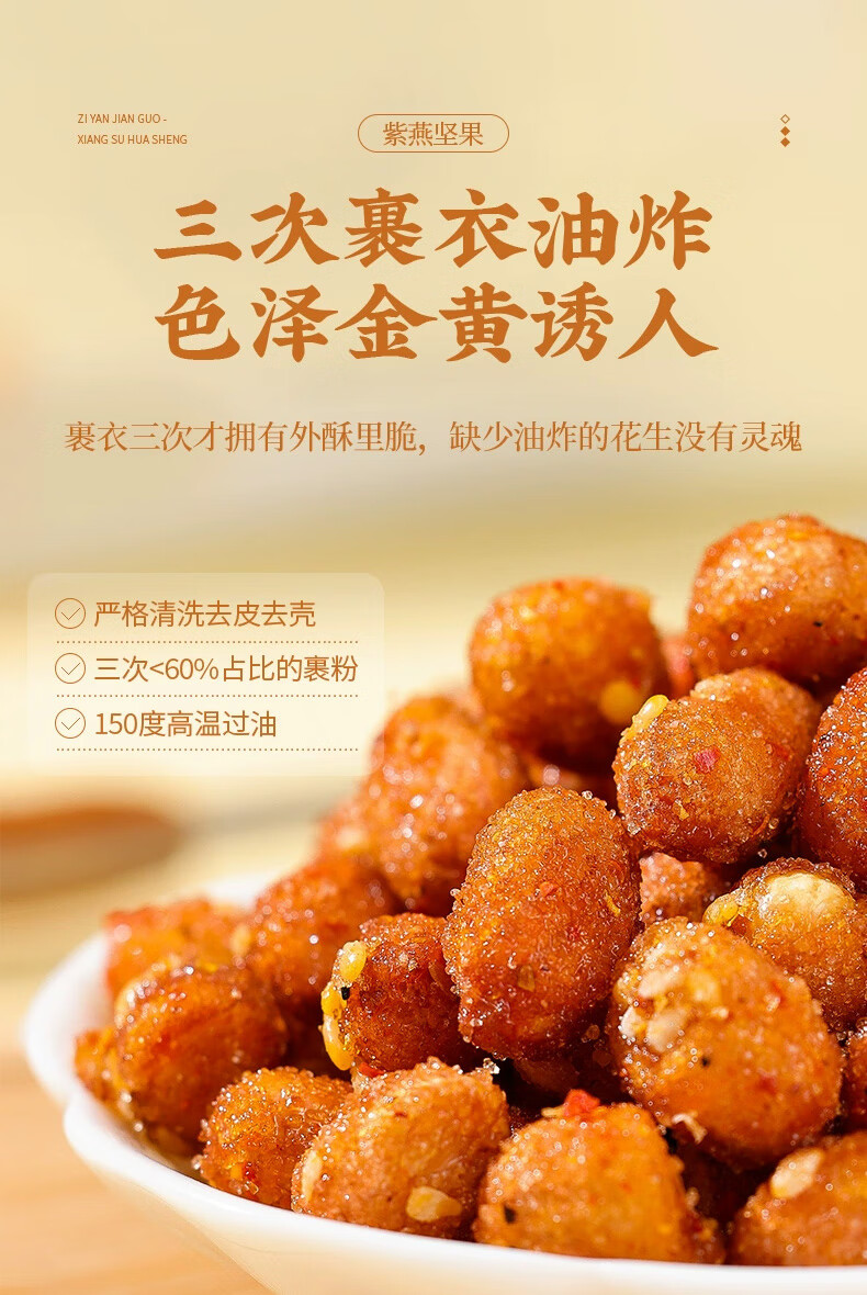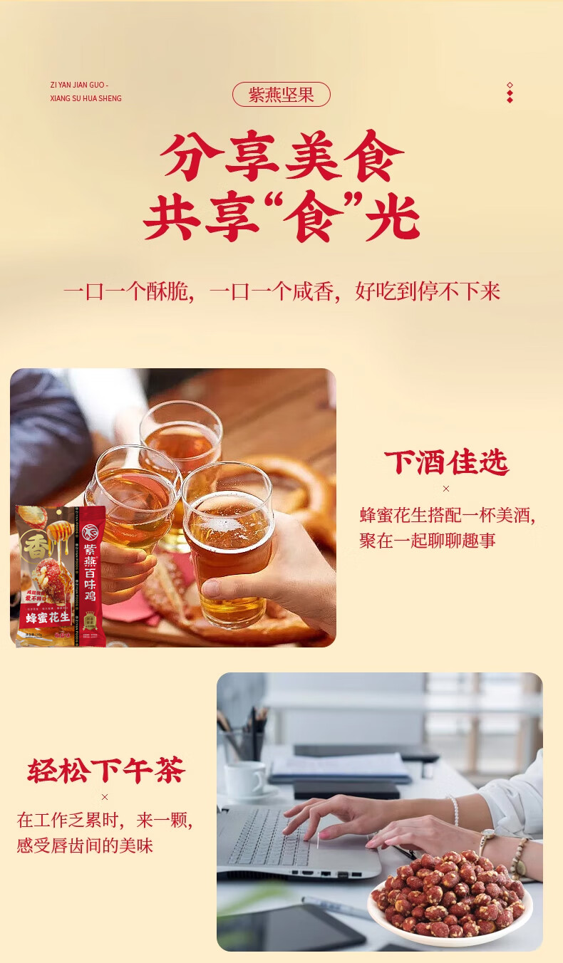 紫燕百味鸡蜂蜜花生椒盐味零食预制菜坚果花生米休闲开袋即食120gx5袋