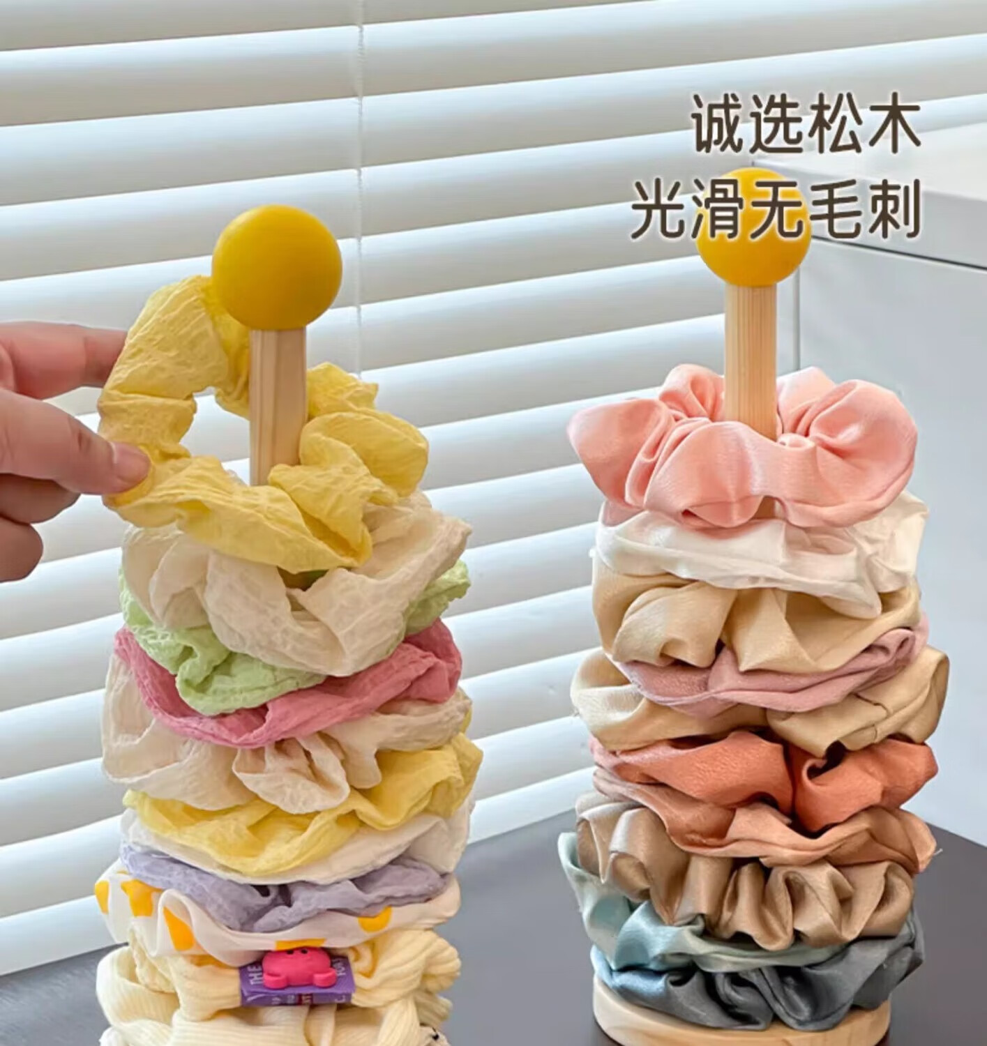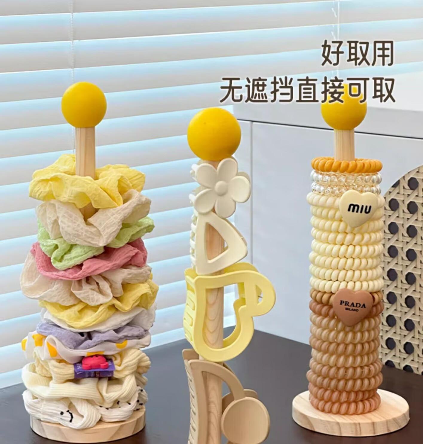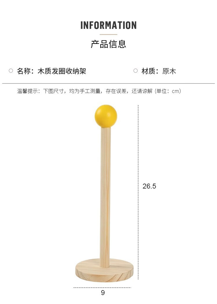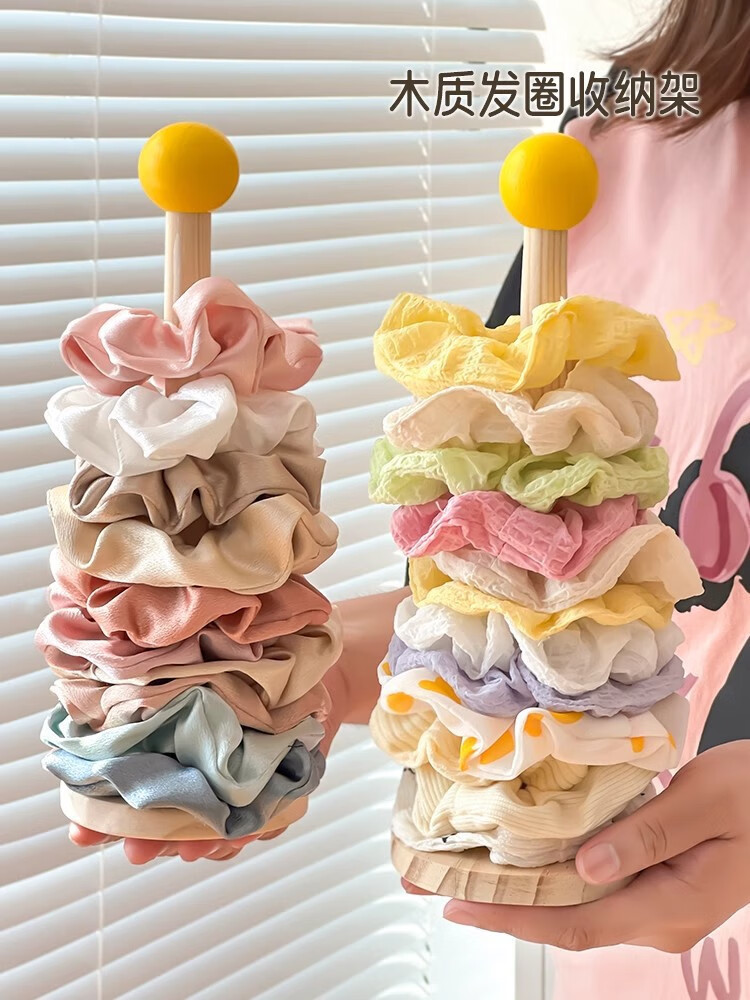 加恩倍木质大肠发圈收纳架高颜值皮筋头绳头花鲨鱼夹收纳神器发饰展示架 发饰展示架+奶黄球【1个】