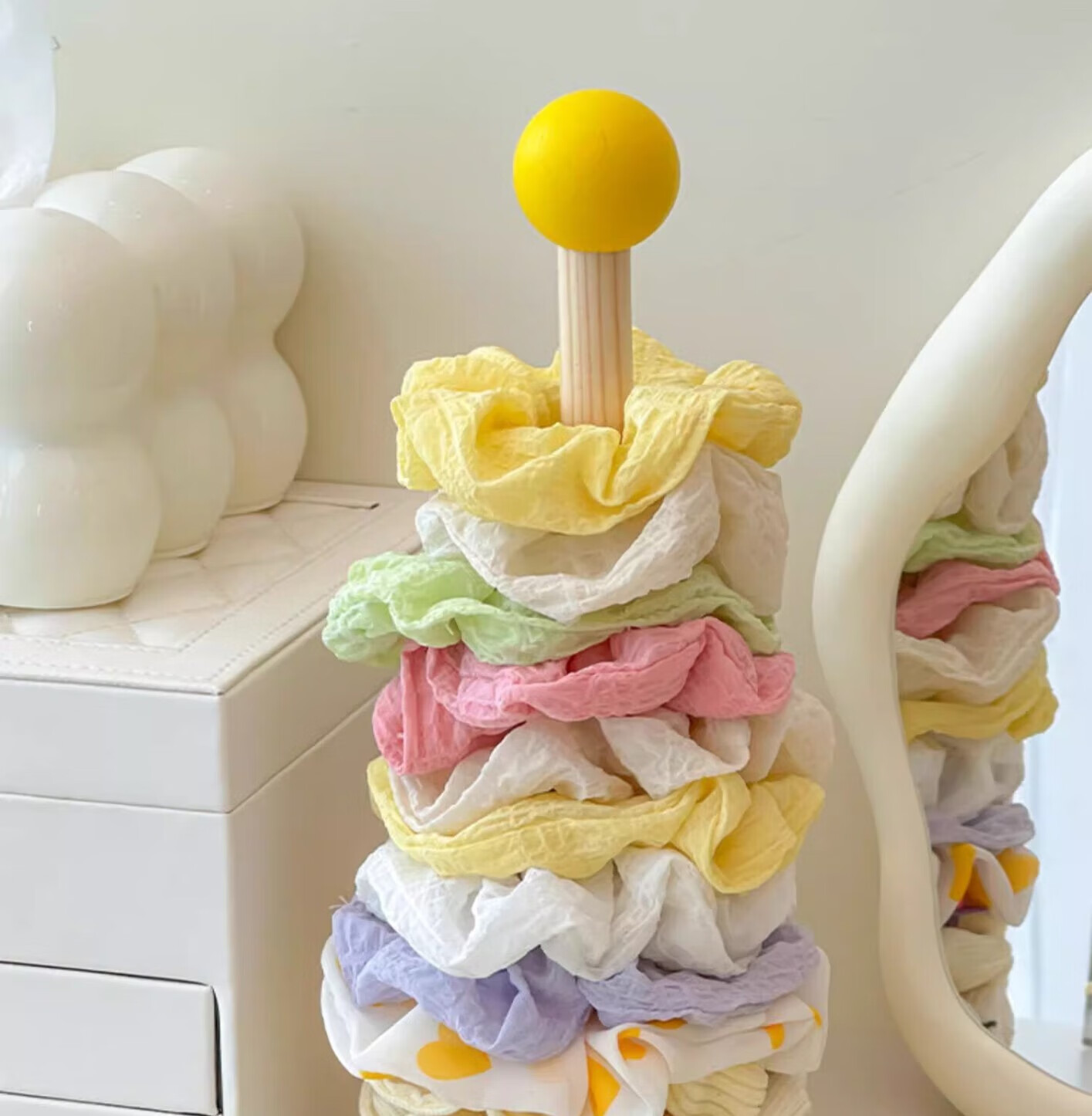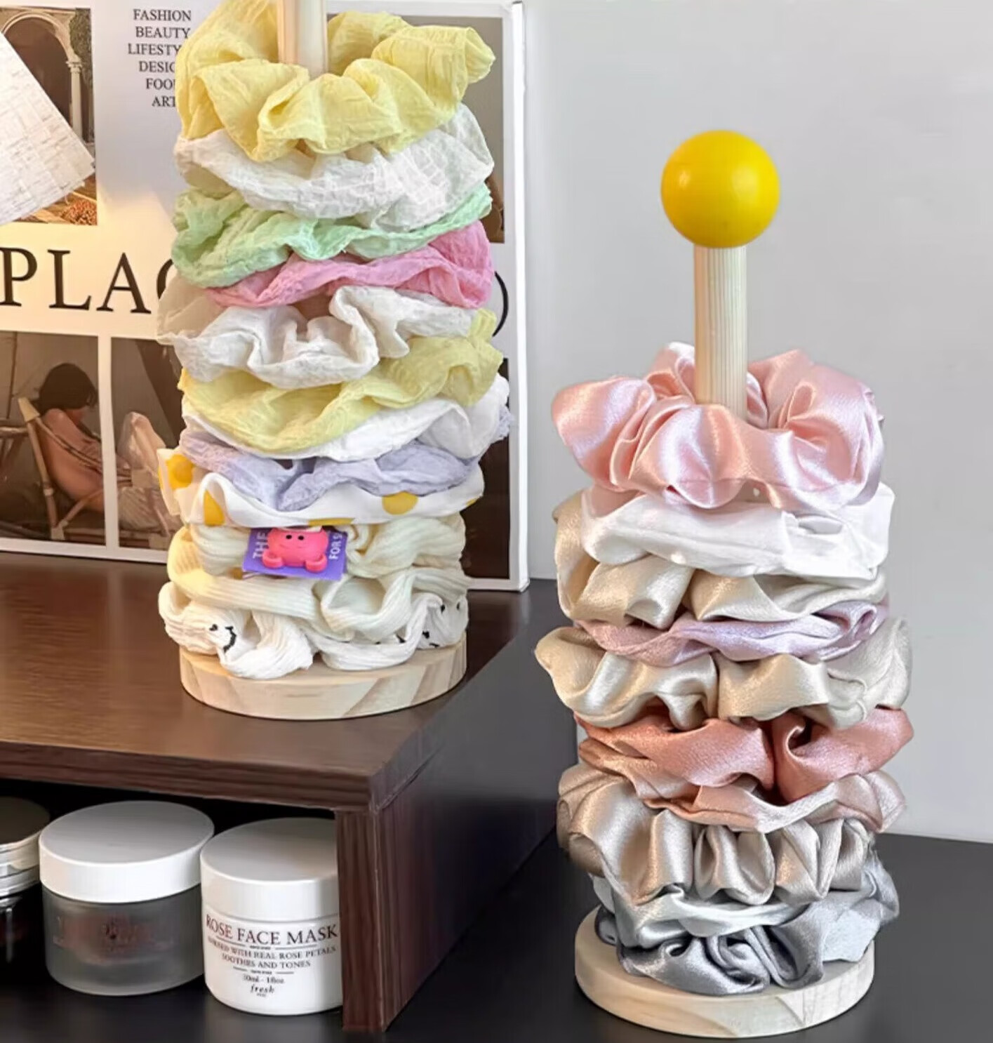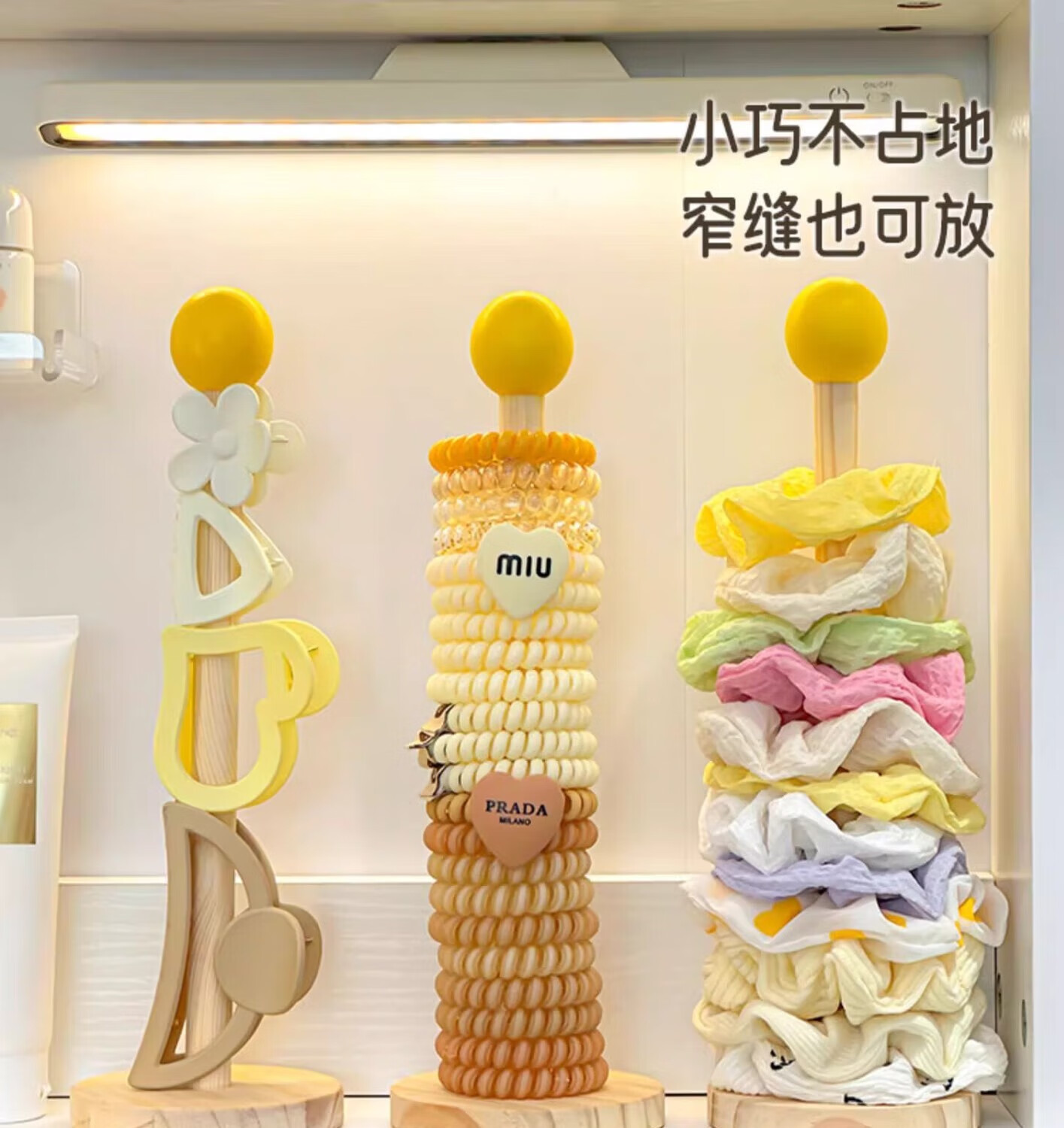 加恩倍木质大肠发圈收纳架高颜值皮筋头绳头花鲨鱼夹收纳神器发饰展示架 发饰展示架+奶黄球【1个】