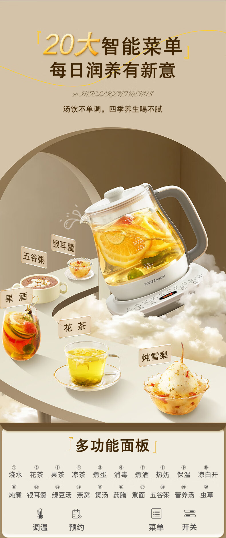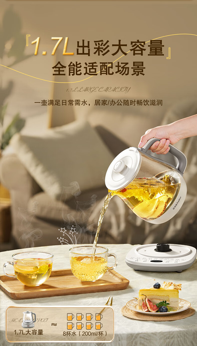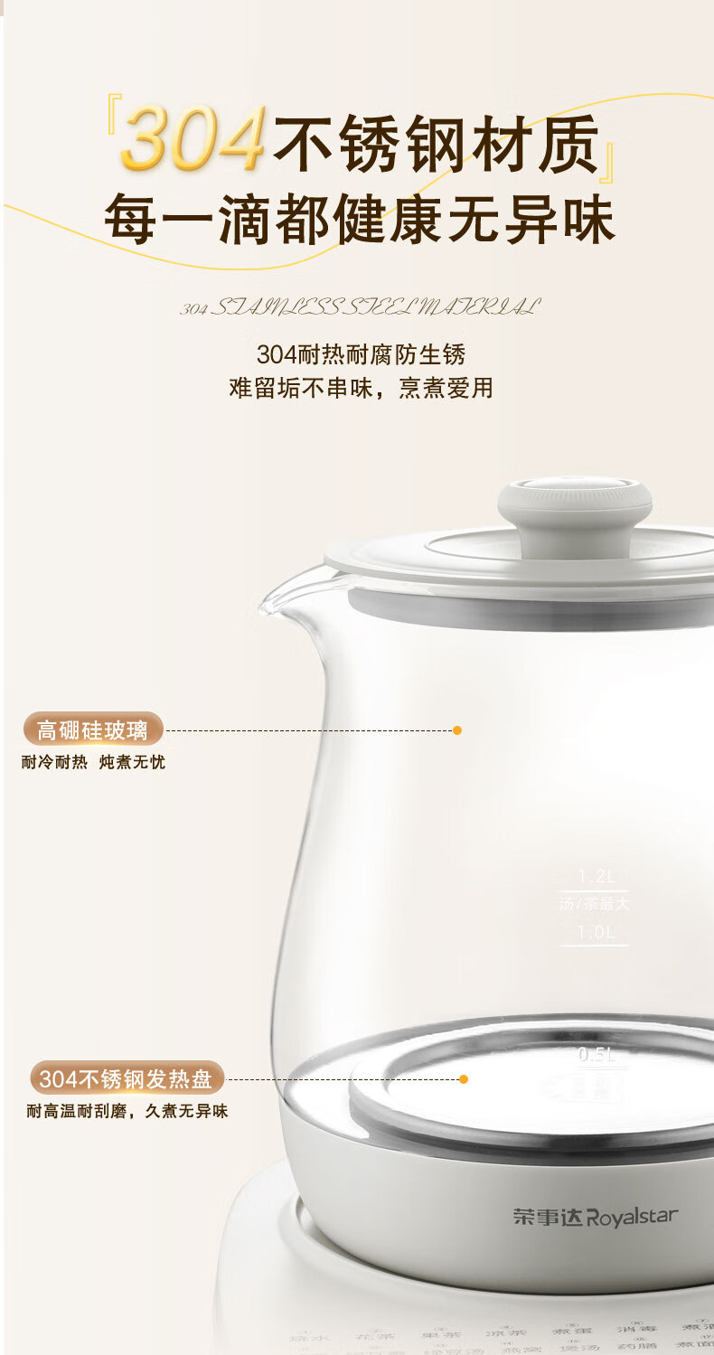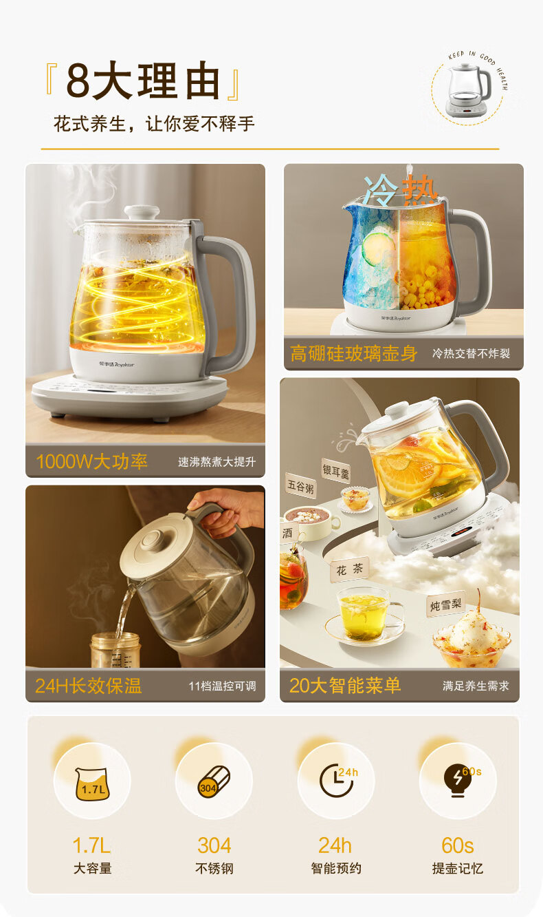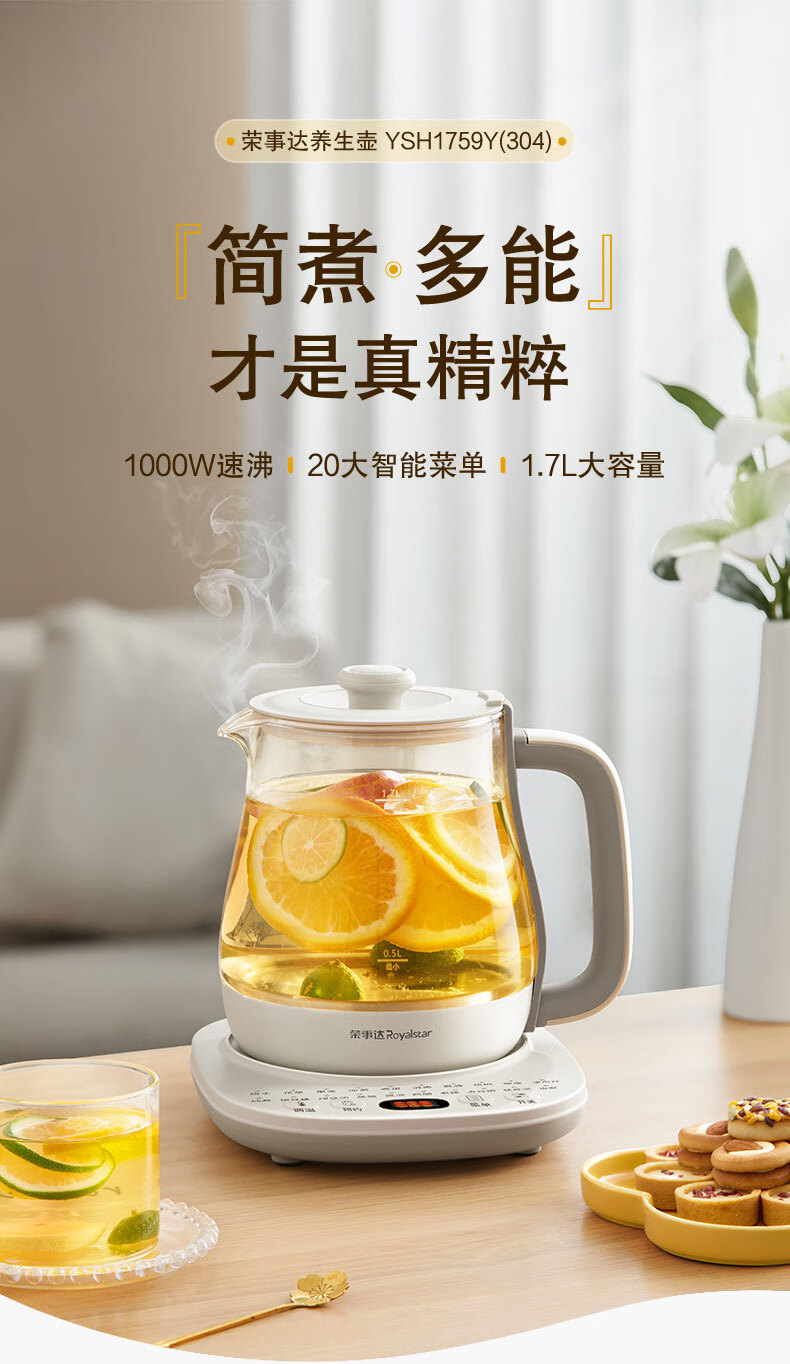荣事达(Royalstar)养生壶 烧水壶煮茶壶电热水壶保温一体花茶壶恒温壶24H全自动保温1.7L家用开水壶 YSH1759Y(304)