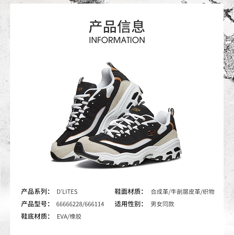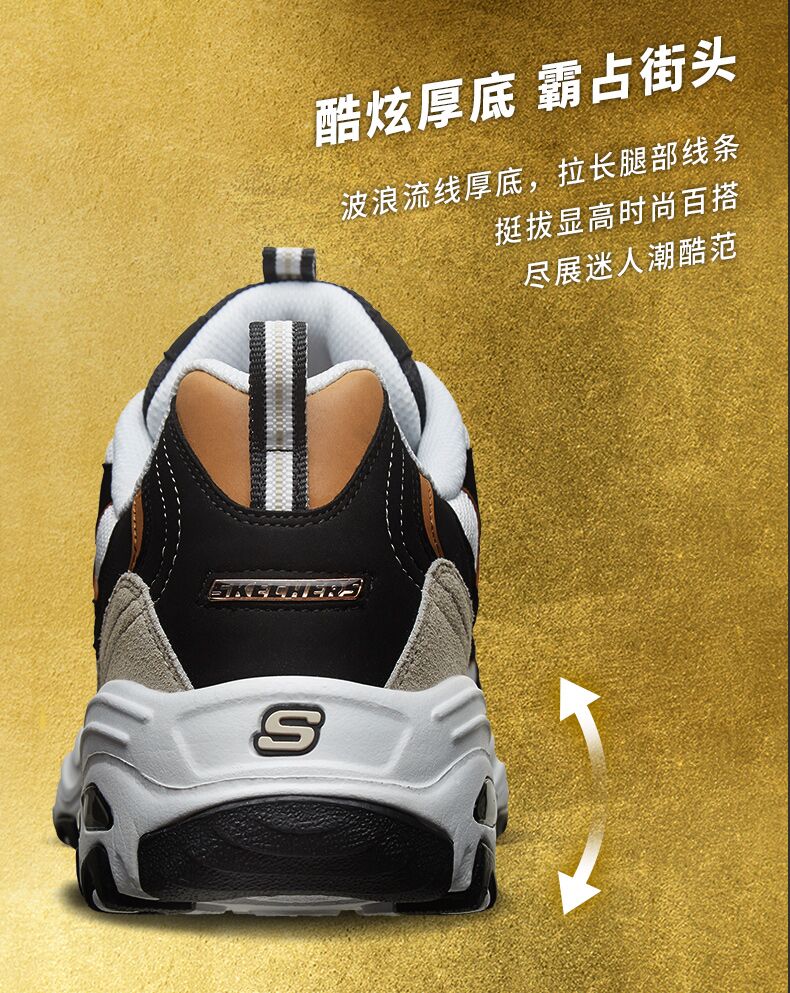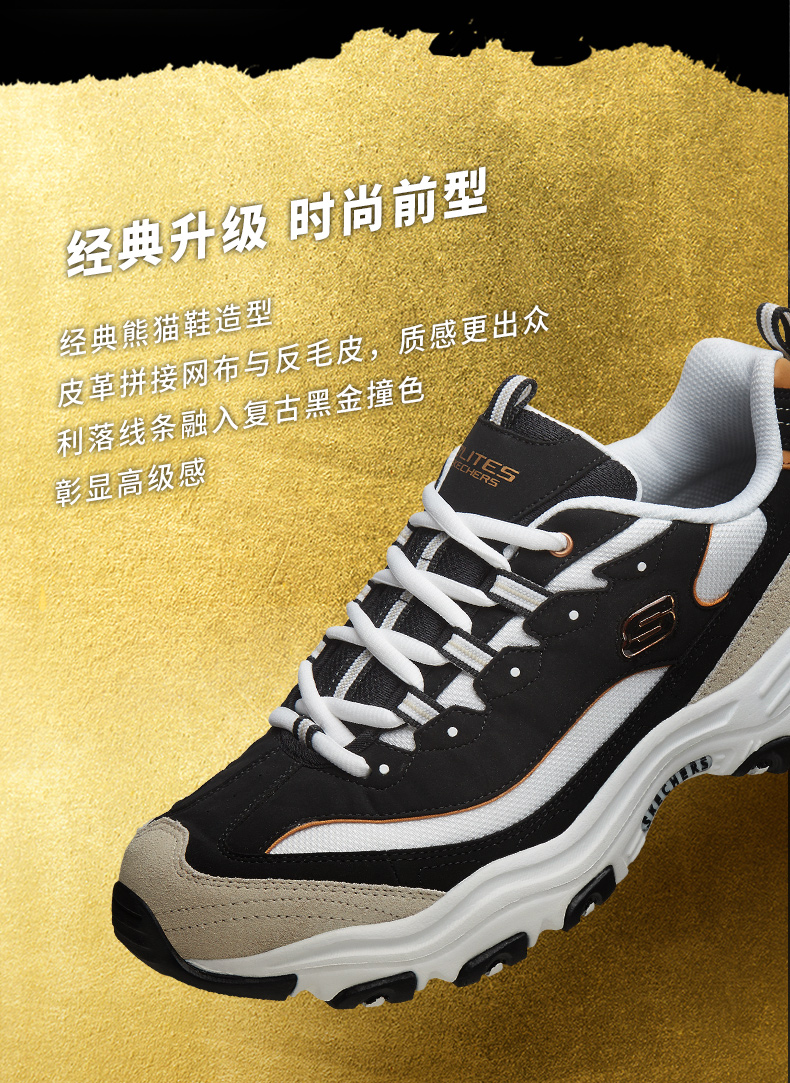 斯凯奇(Skechers)新年礼物黑白金熊猫鞋冬季情侣鞋复古老爹鞋休闲运动鞋66666228