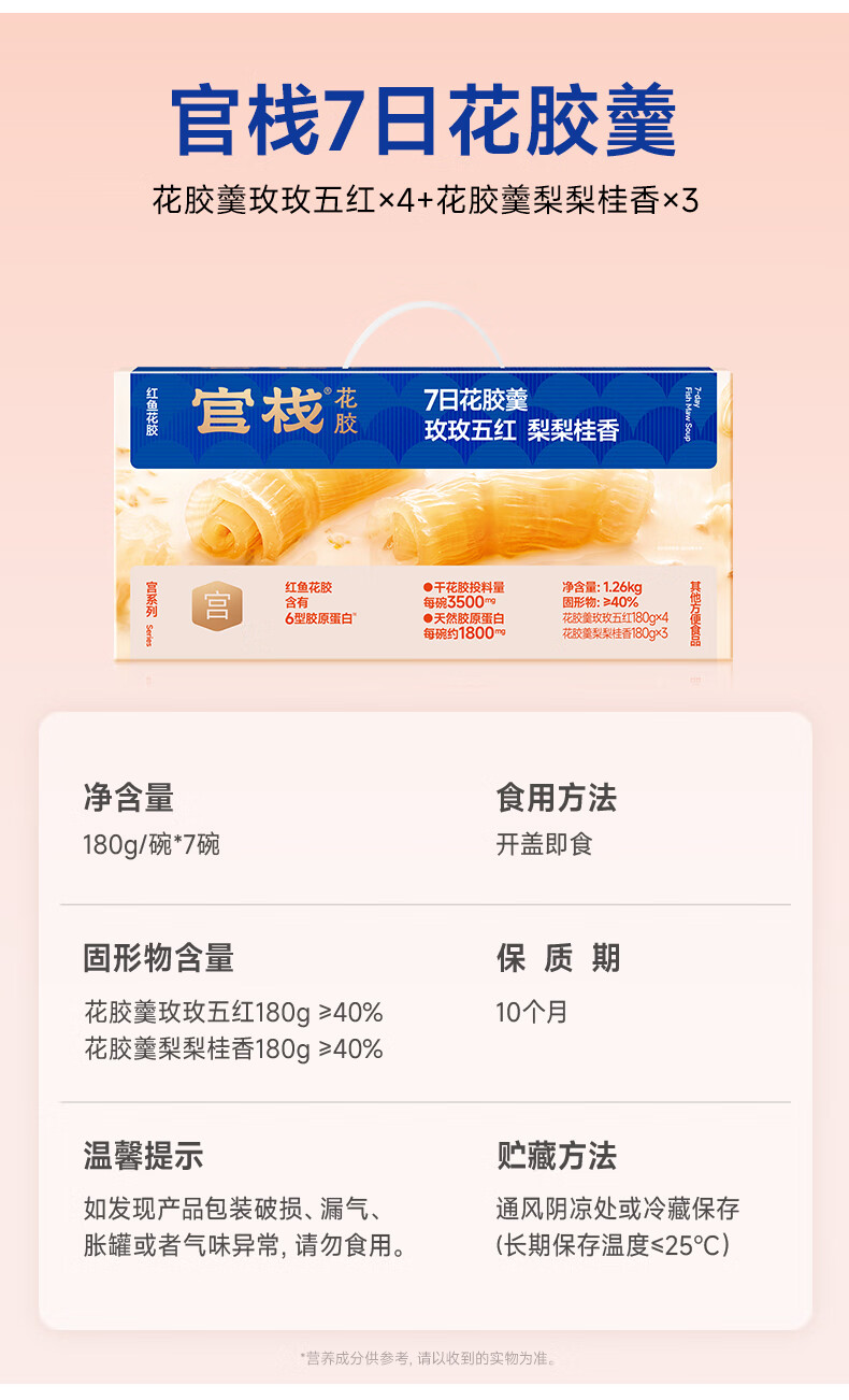 官栈【年货礼盒】养宫金蝶花胶羹 花胶孕产妇营养滋补品 代餐轻食送礼 【养宫滋补礼盒】花胶羹2口味 180g*7碗