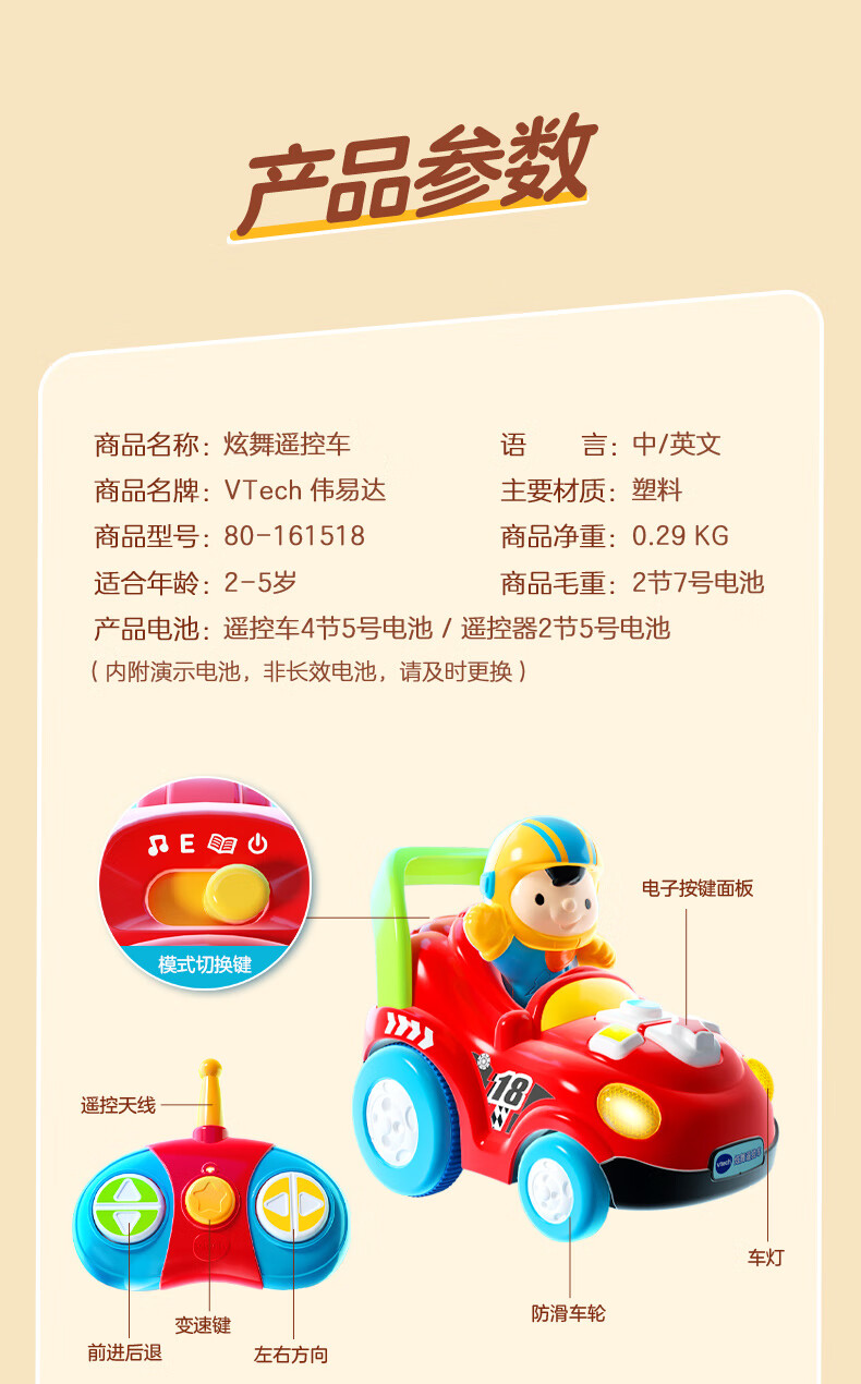 伟易达(Vtech)儿童玩具炫舞遥控赛车电动四驱漂移汽车2-5岁男女孩生日新年礼物 炫舞遥控车【2-5岁】