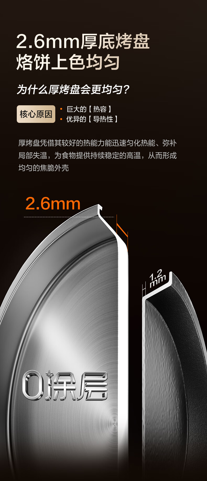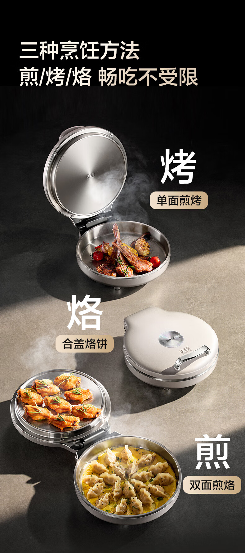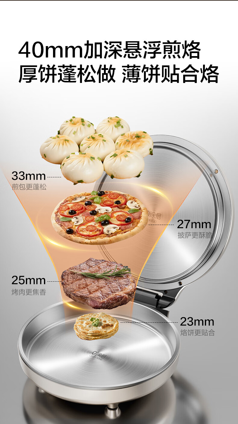 苏泊尔(SUPOR)电饼铛 0涂层304不锈钢 电饼档家用 煎饼锅烤肉锅 烙饼锅早餐机煎烤机 40mm加深 JJ30A830