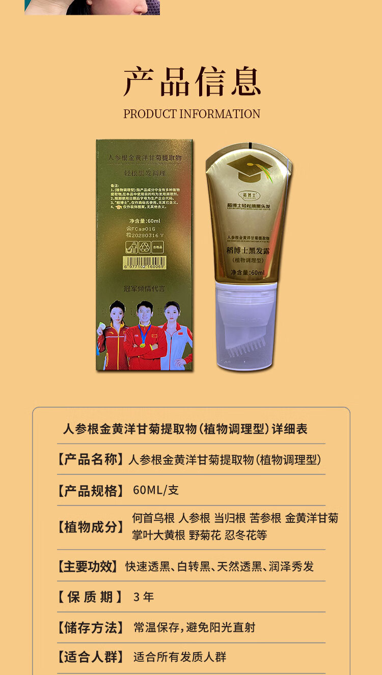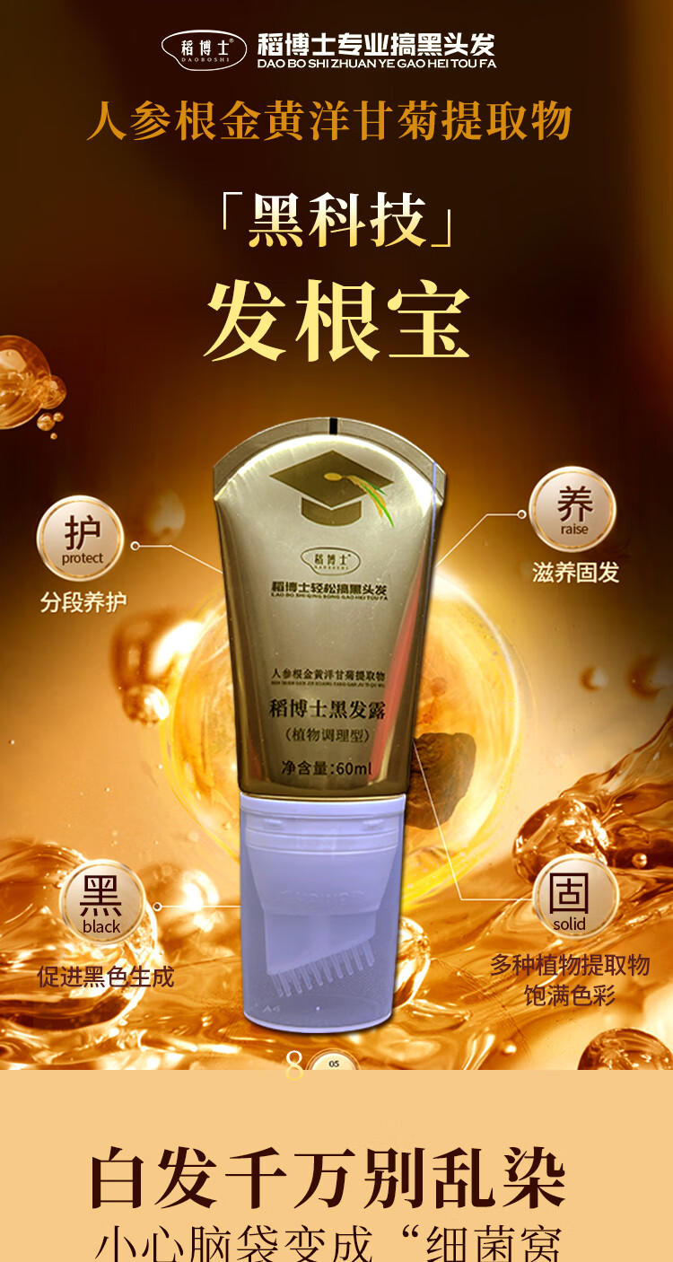 稻博士不粘头皮健康染发膏 0氨0双氧水