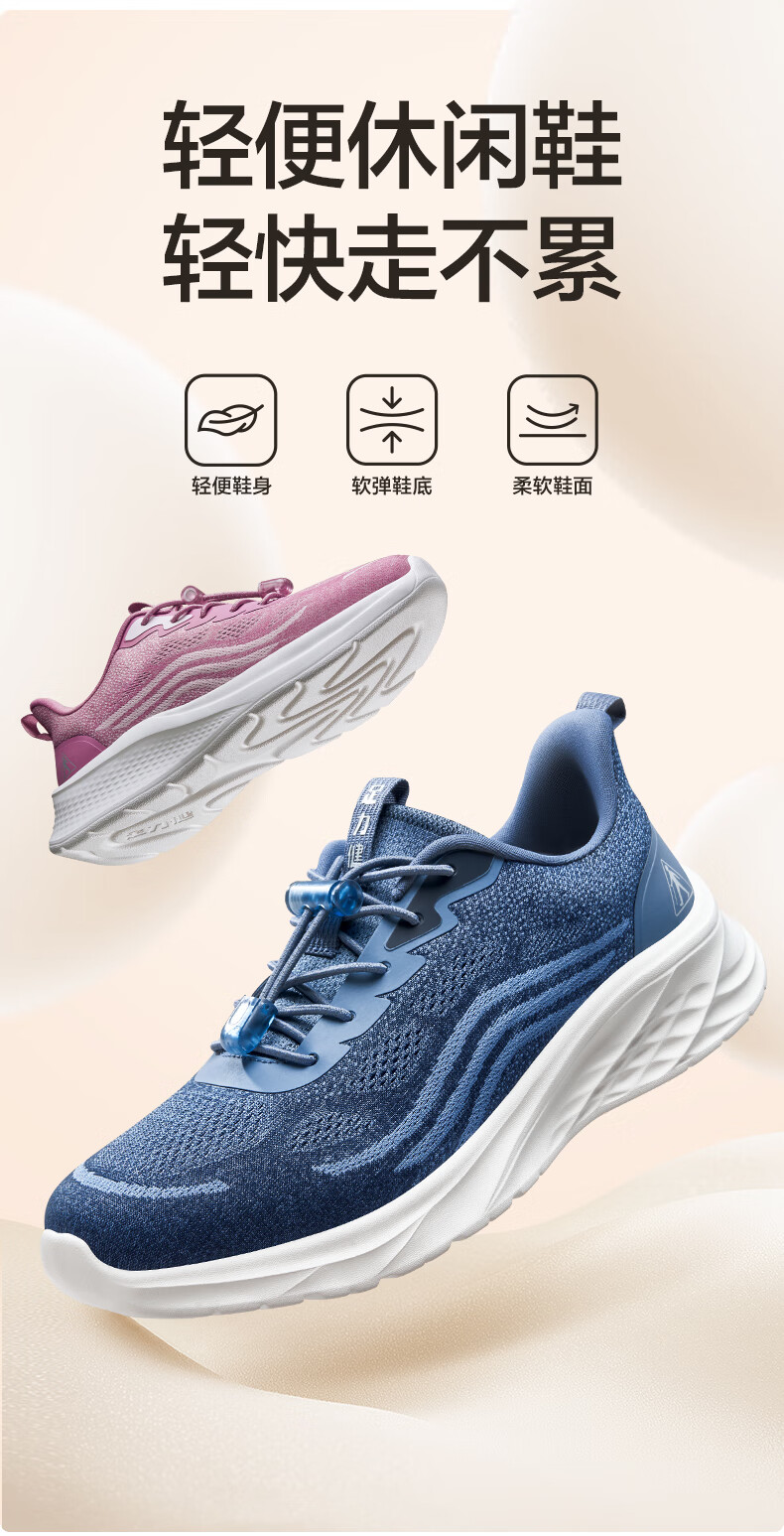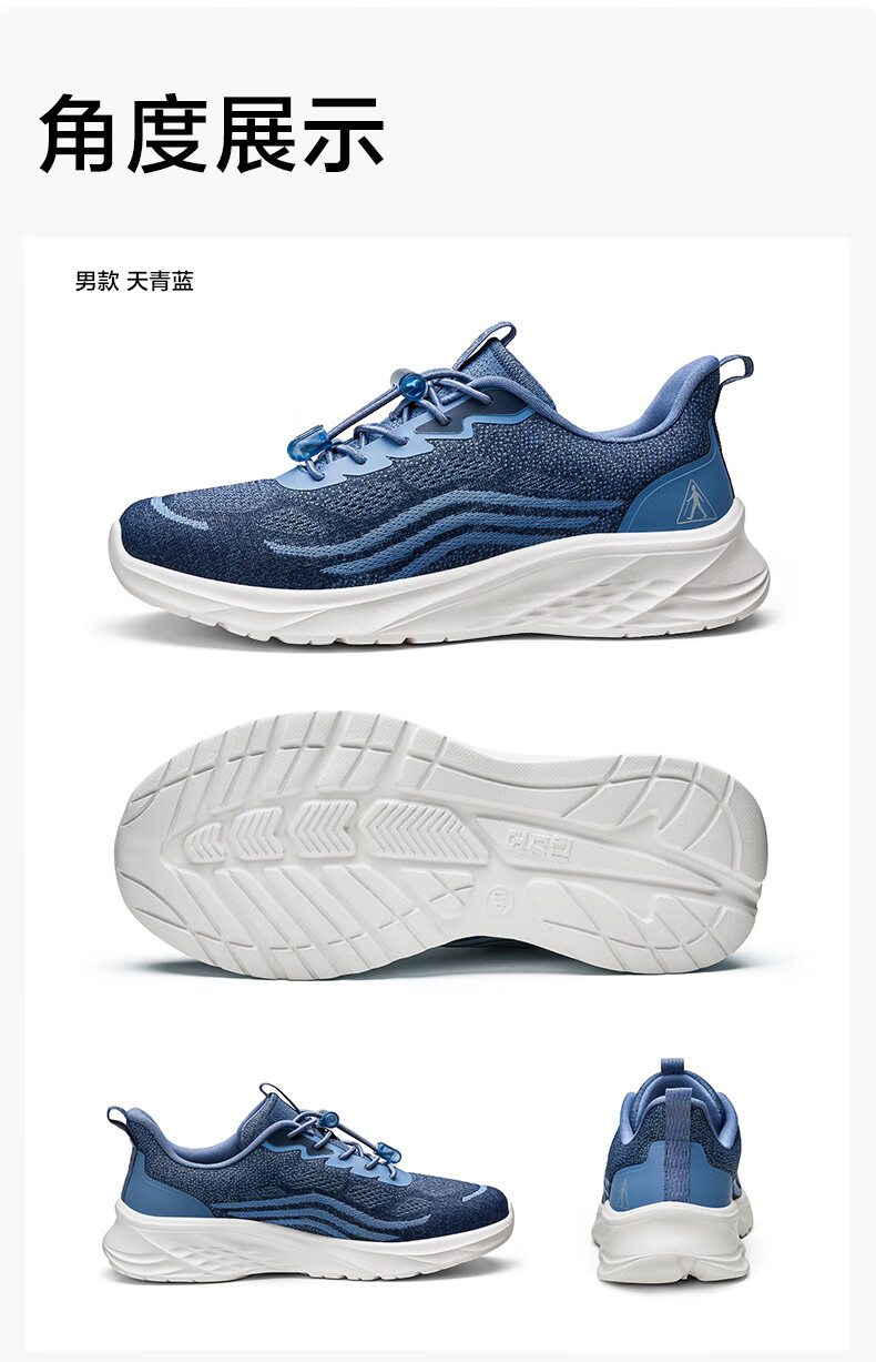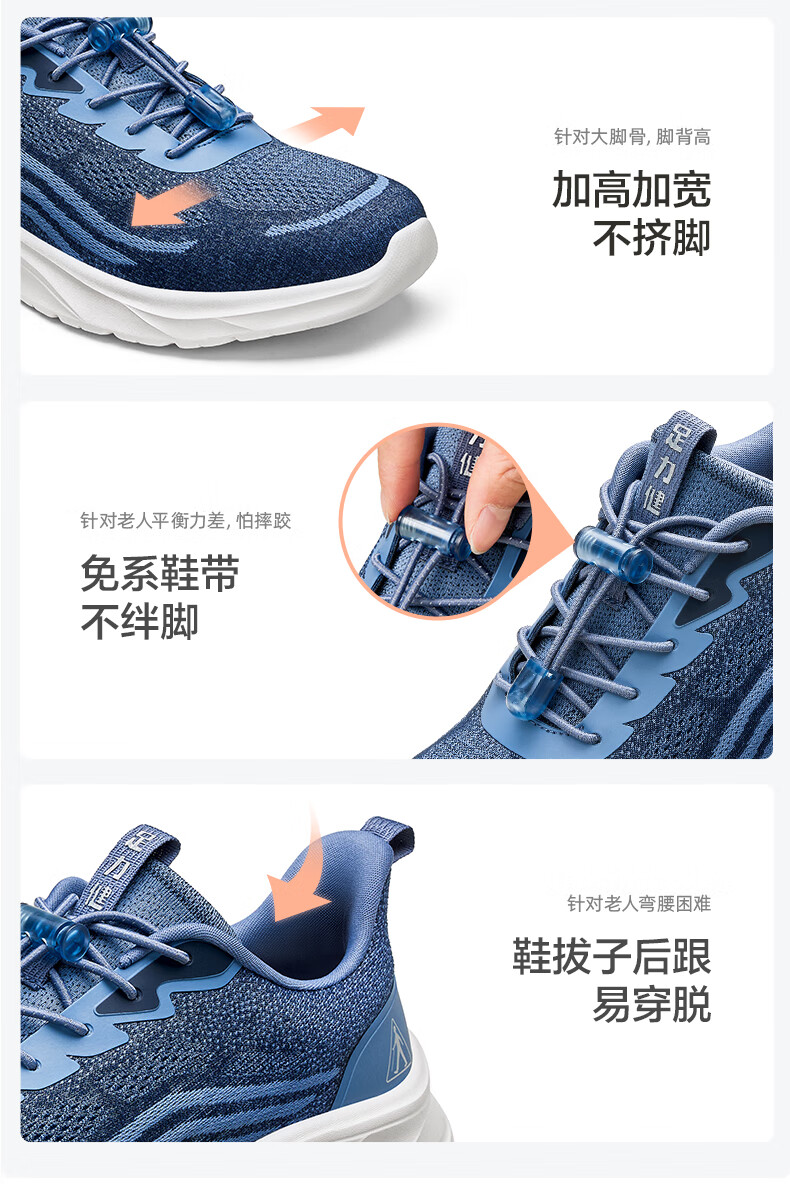 足力健老人鞋爸妈鞋秋季新品老年人休闲轻便散步运动健步行送礼长辈 天青蓝-男款 43