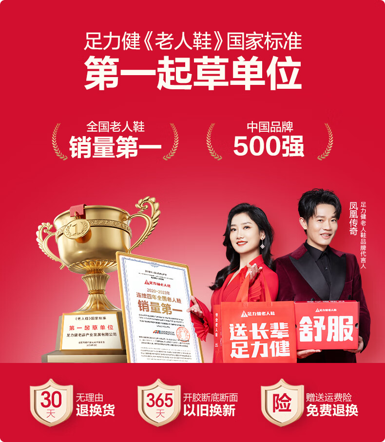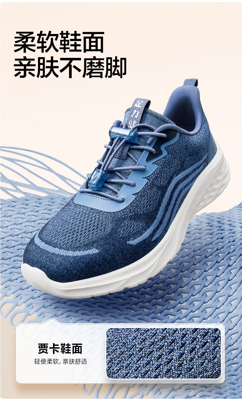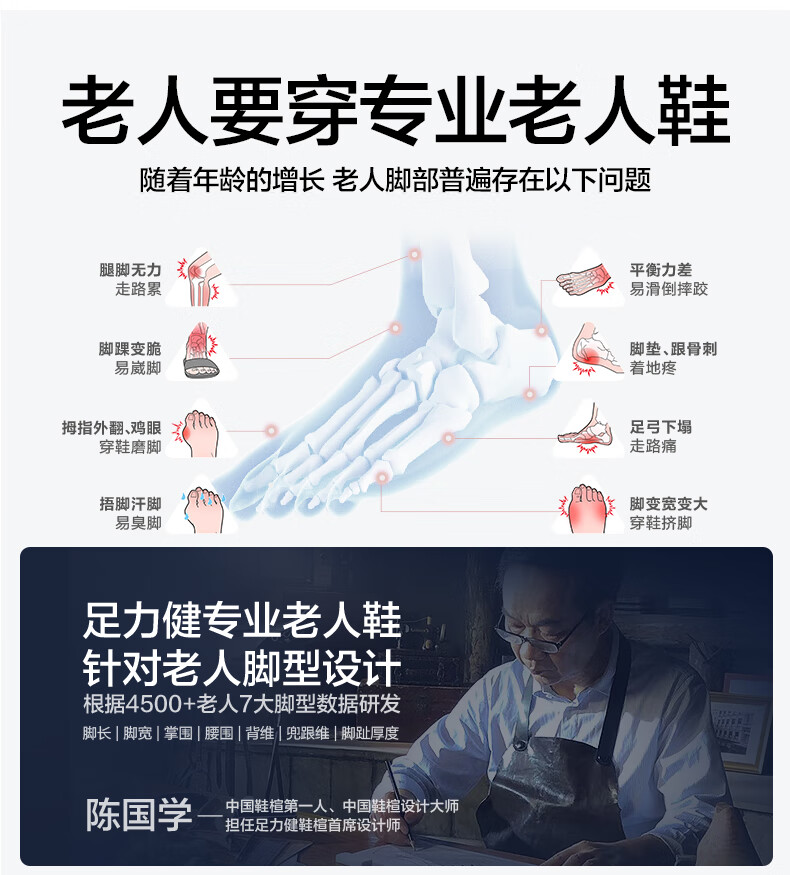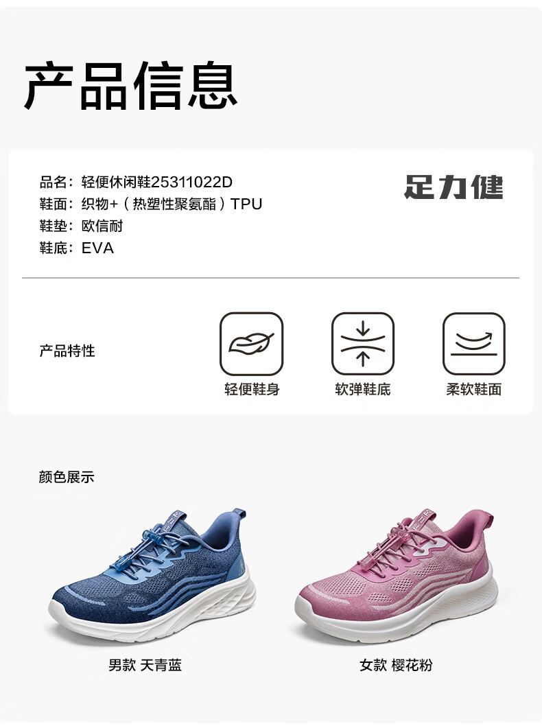 足力健老人鞋爸妈鞋秋季新品老年人休闲轻便散步运动健步行送礼长辈 天青蓝-男款 43