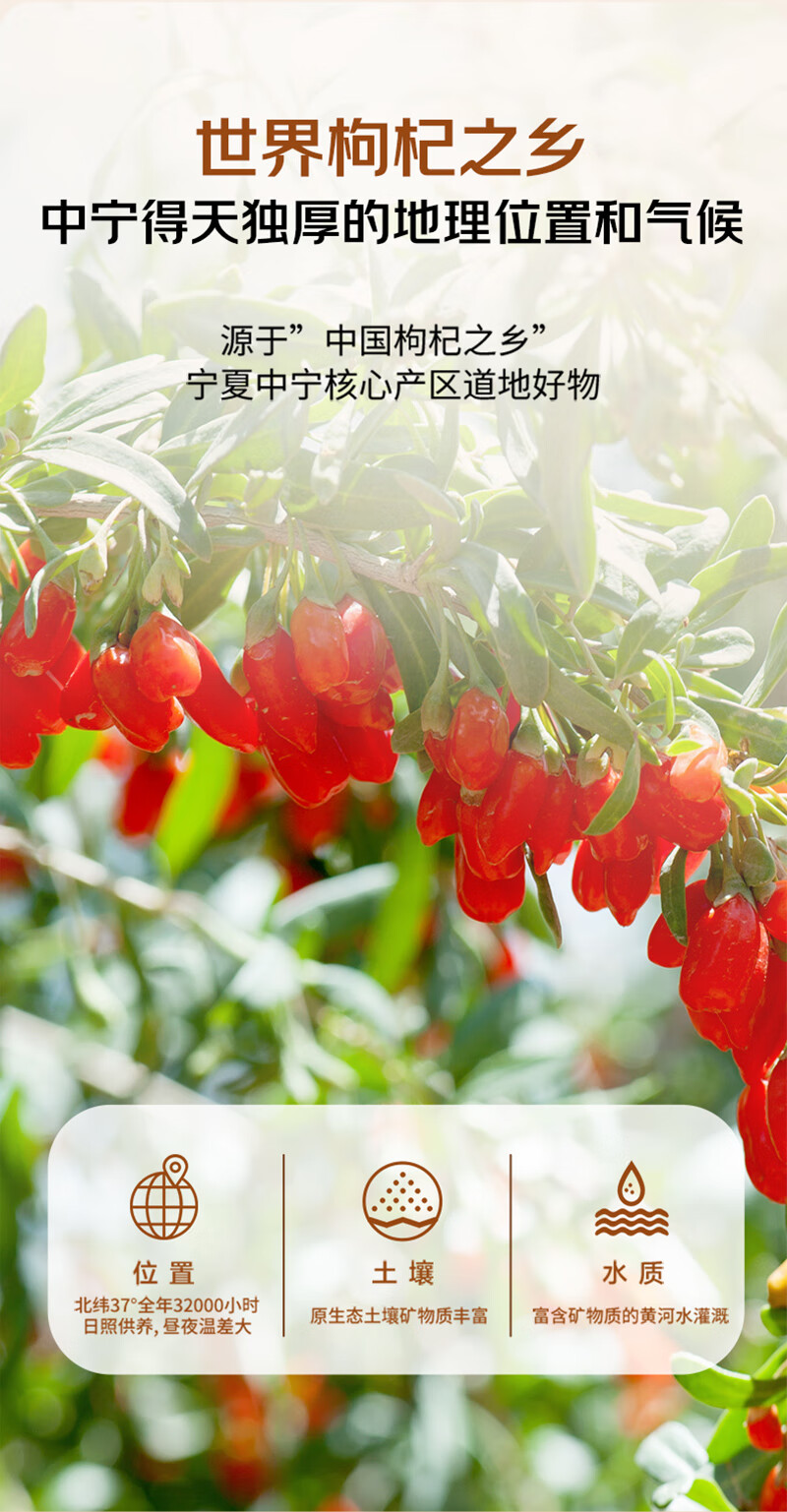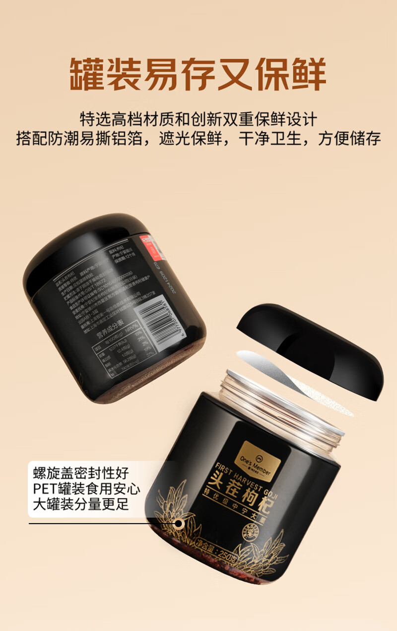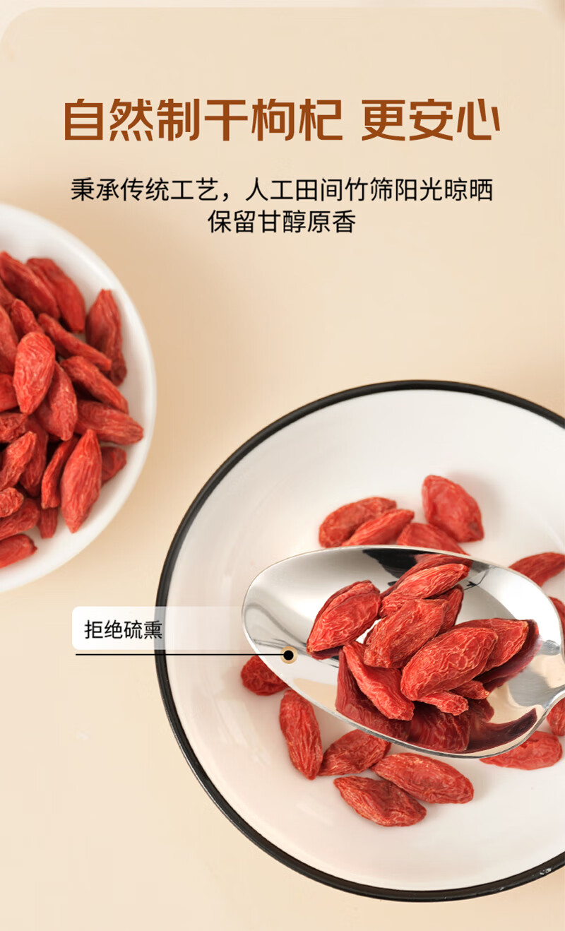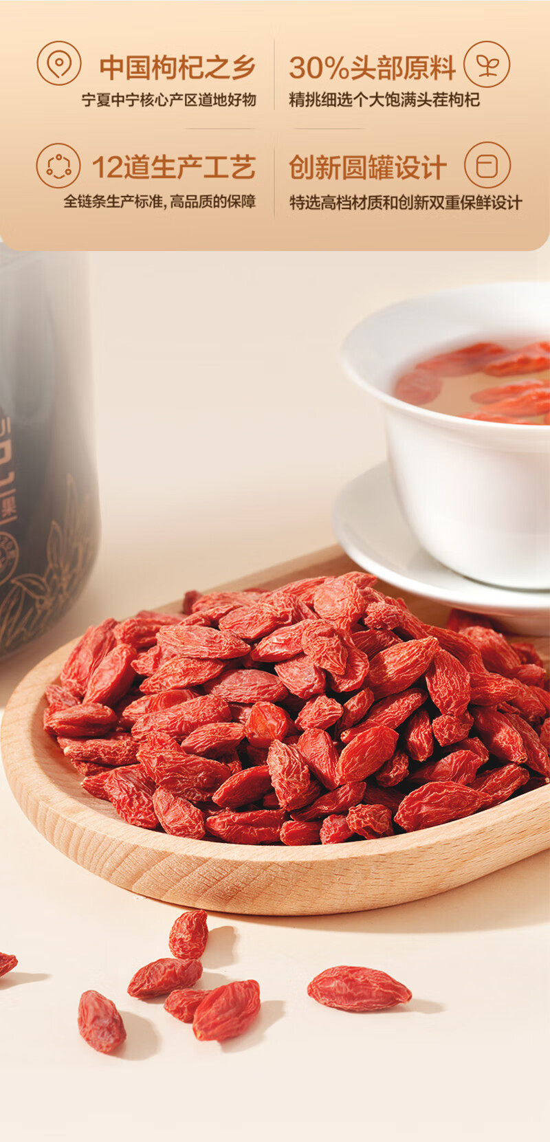 1号会员店红枸杞子特优级大果头茬220粒枸杞250g新货宁夏中宁免洗构苟杞茶