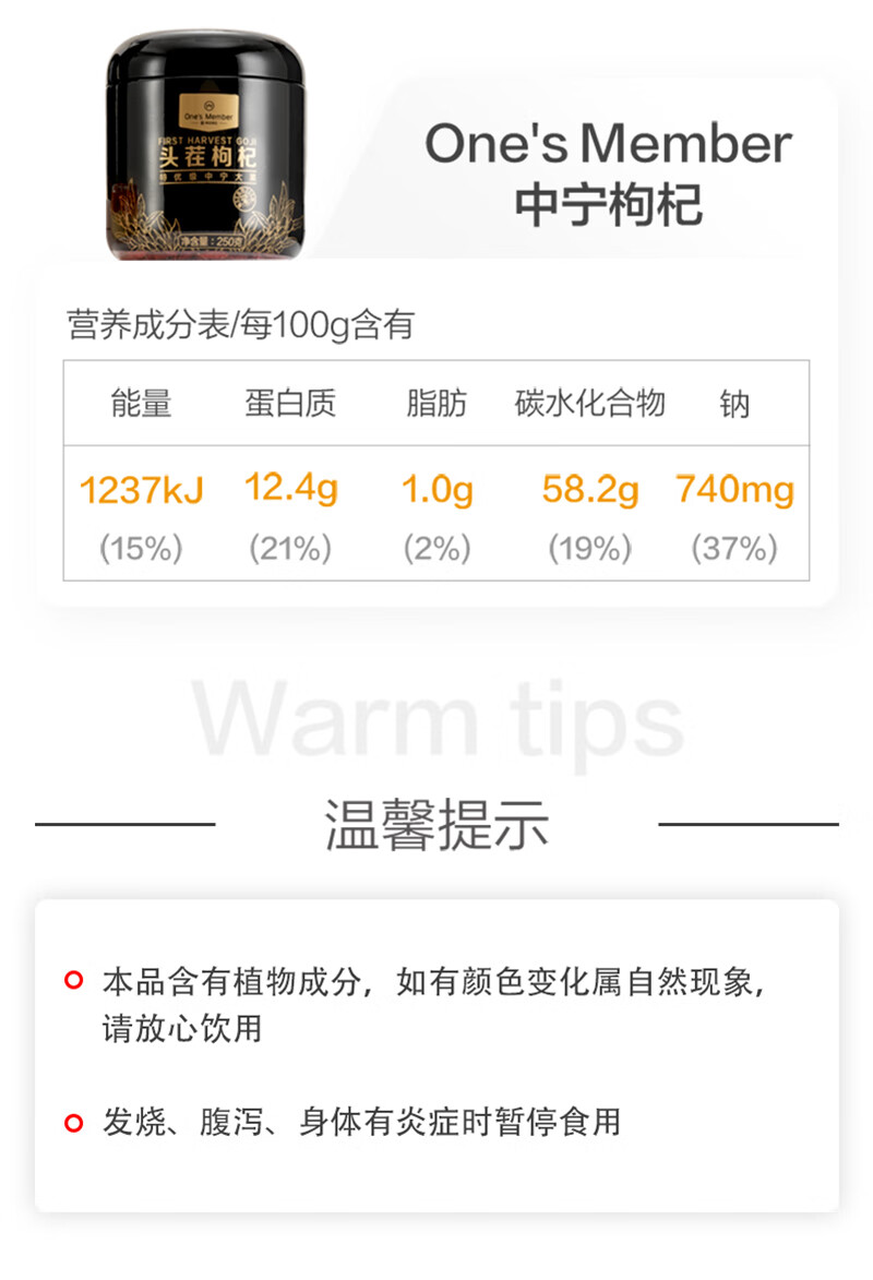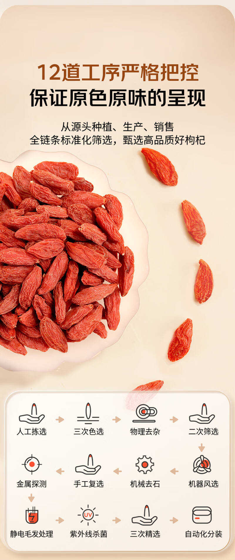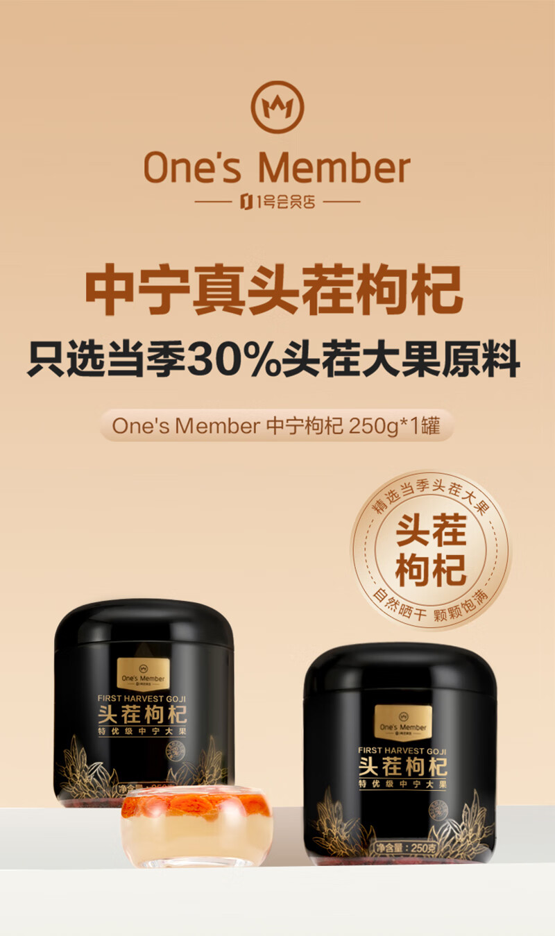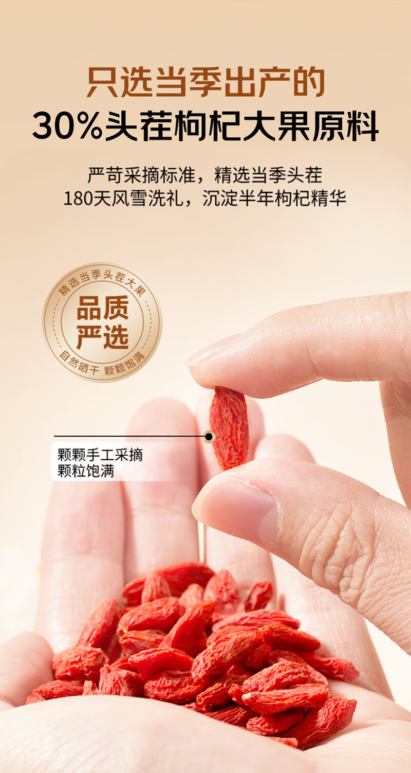 1号会员店红枸杞子特优级大果头茬220粒枸杞250g新货宁夏中宁免洗构苟杞茶