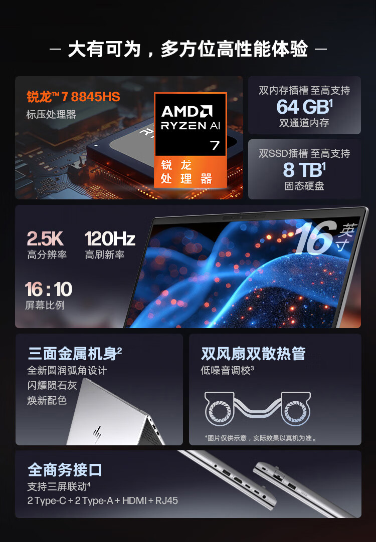 惠普(HP)战99 高性能笔记本电脑AI锐龙版 16英寸R7-8845HS 32G 1T 2.5K屏【政府补贴】