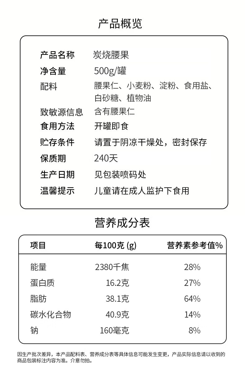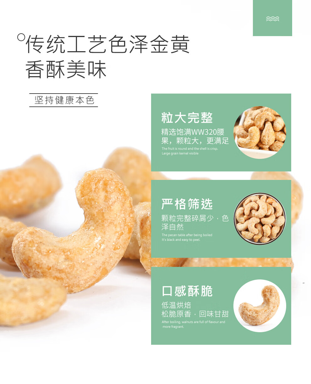 农香森 越南炭烧大腰果仁500g坚果罐装盐焗碳烧干果休闲零食熟散装称斤