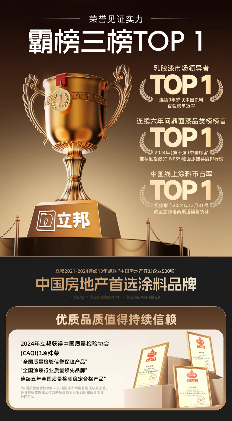 立邦乳胶漆油漆涂料内墙漆防霉抗甲醛五合一净味无添加环保室内漆 涂刷礼包