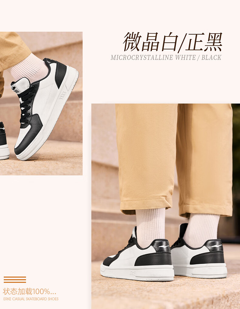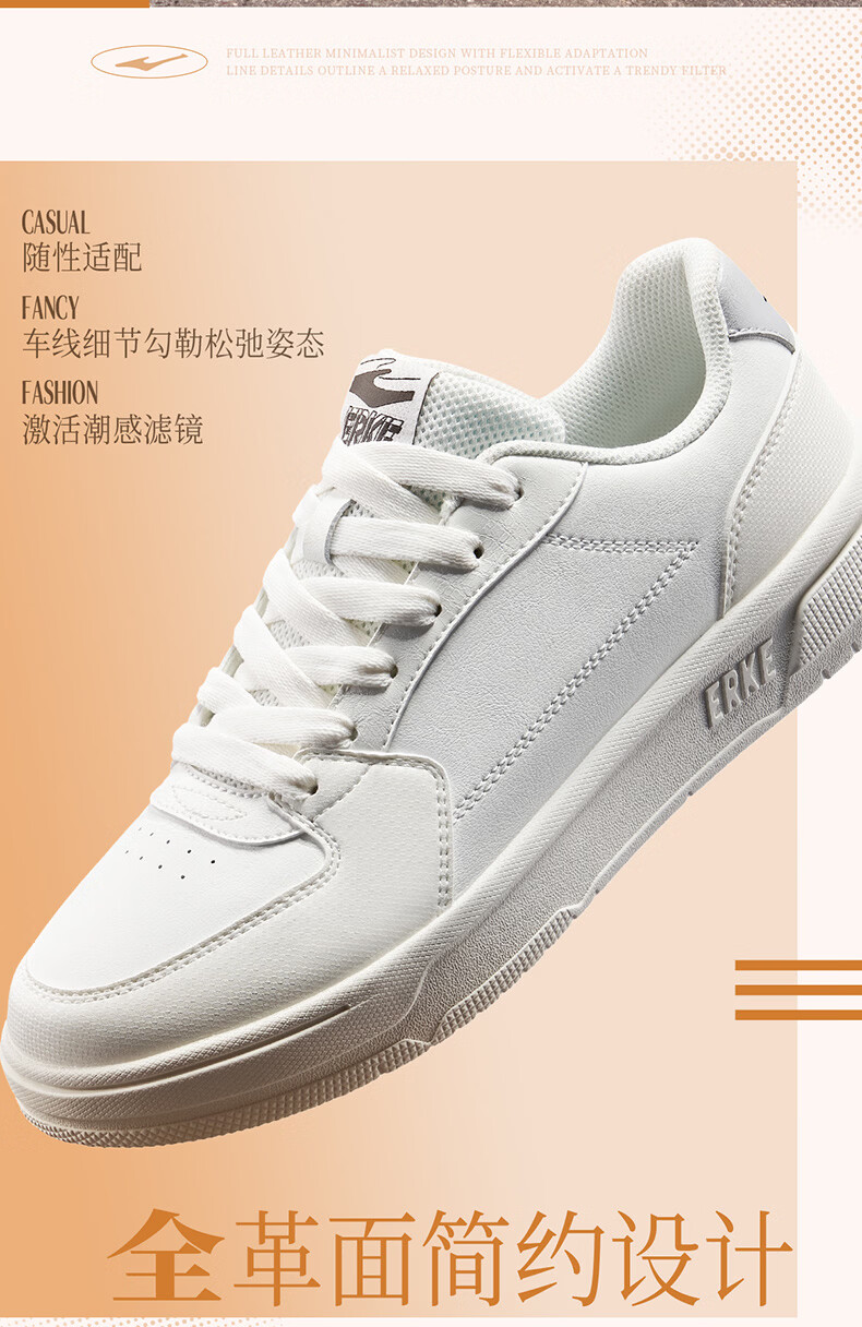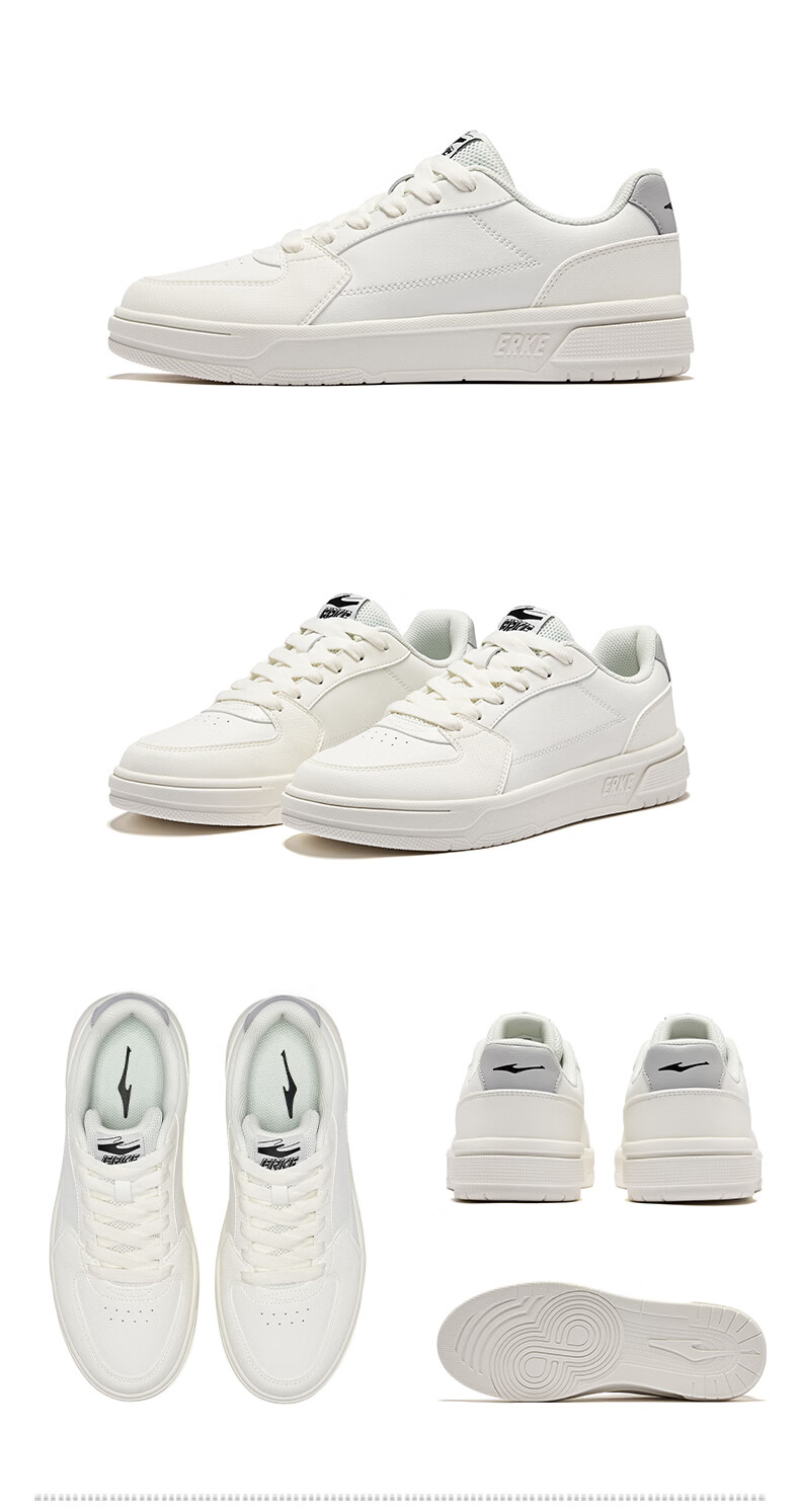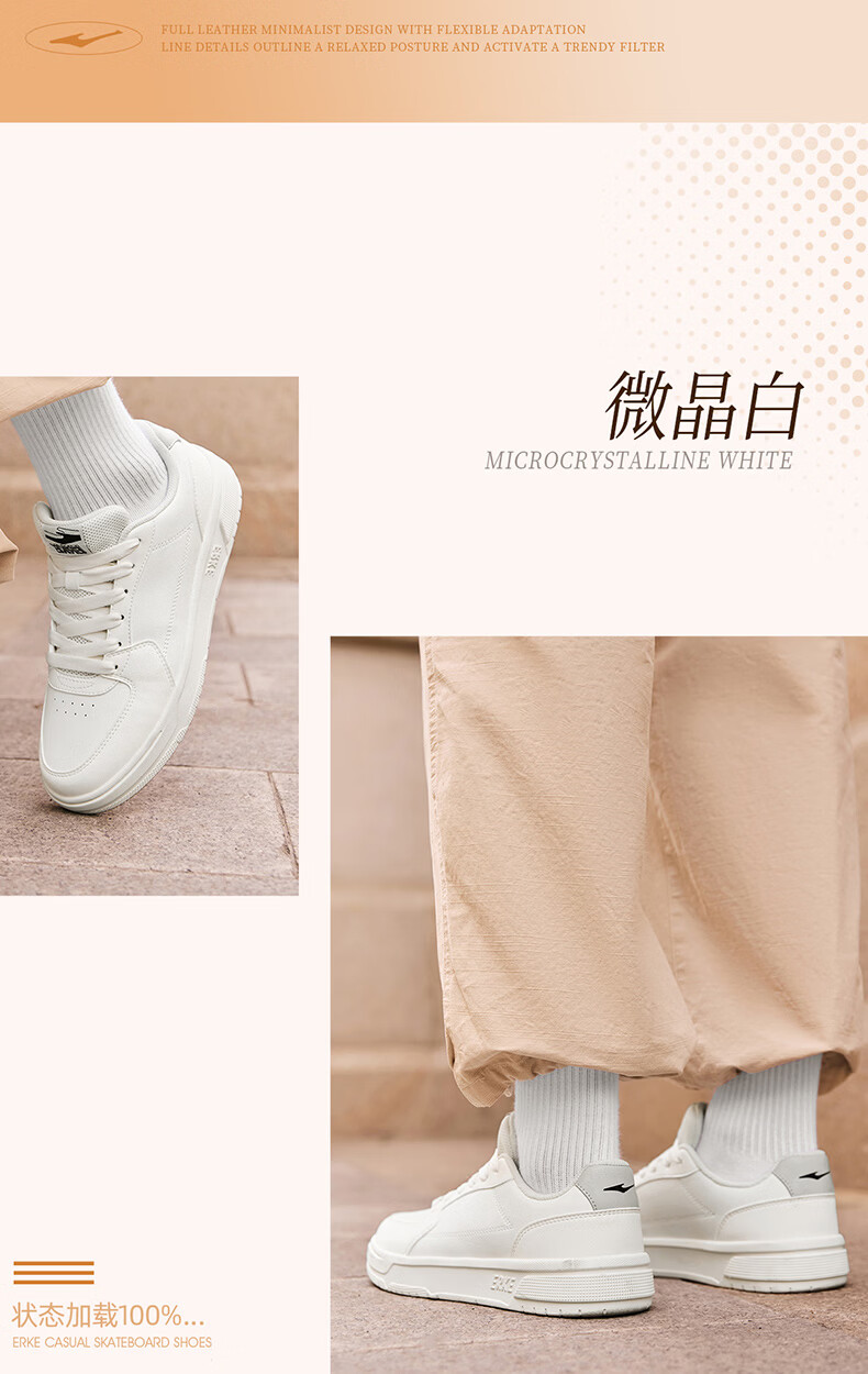 鸿星尔克板鞋男秋冬季新款滑板鞋经典天和复古休闲鞋男轻便运动鞋子男 微晶白/云雾灰 43
