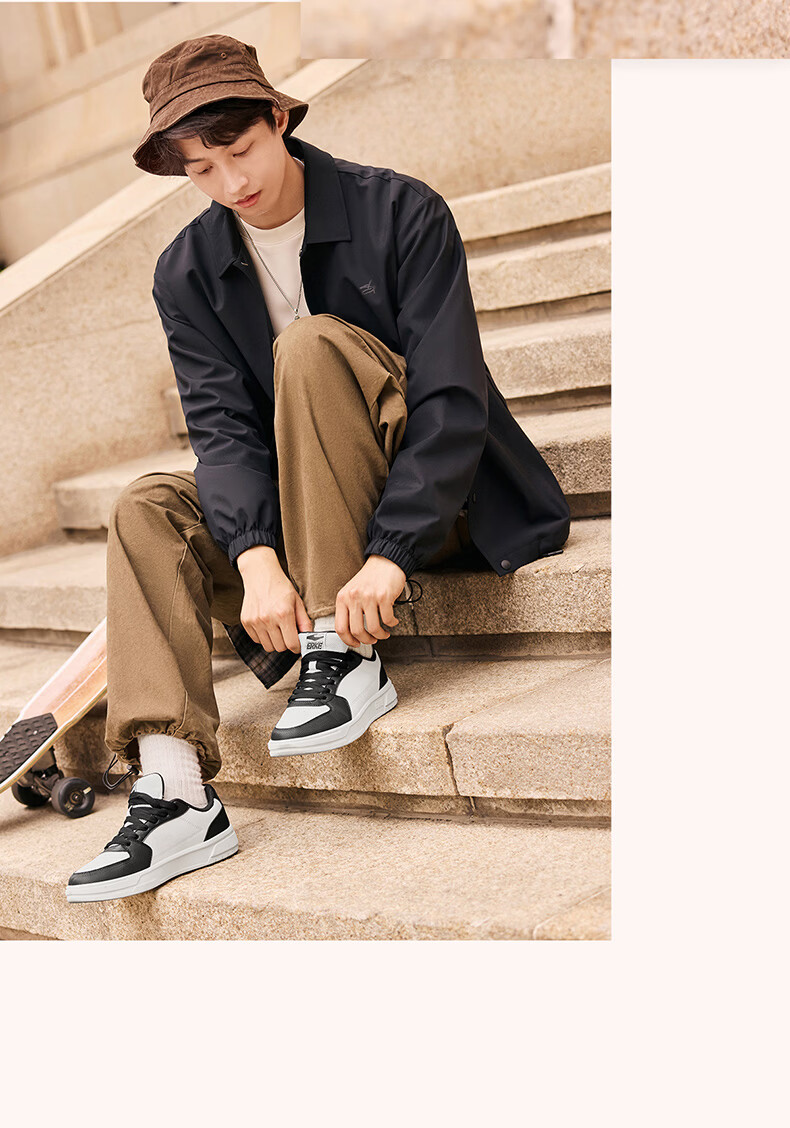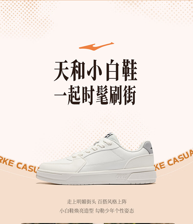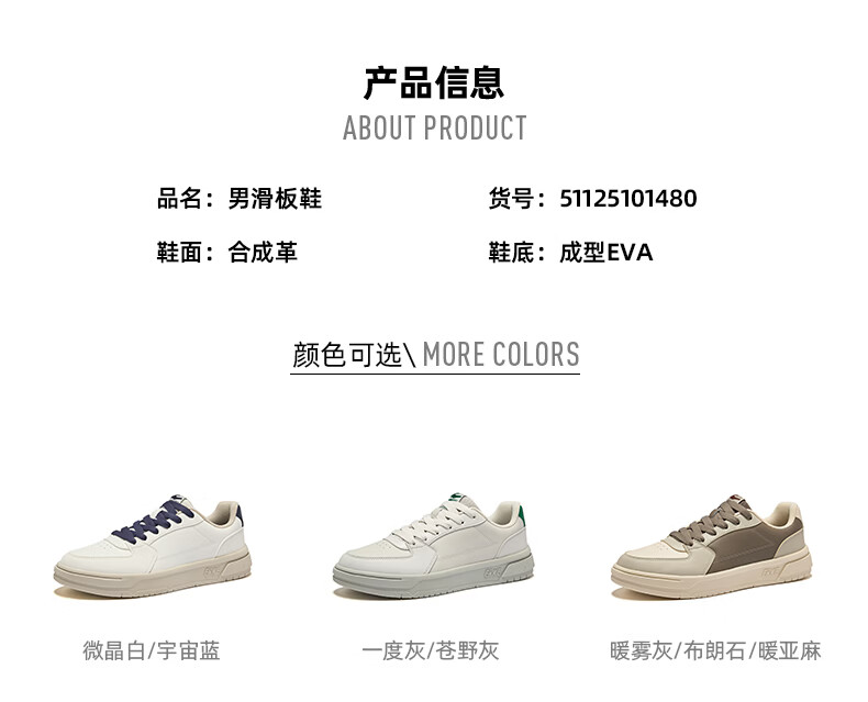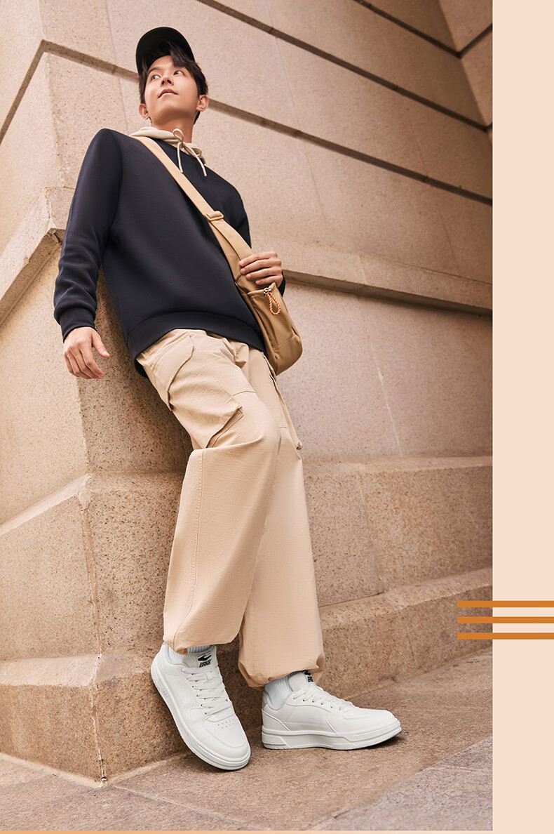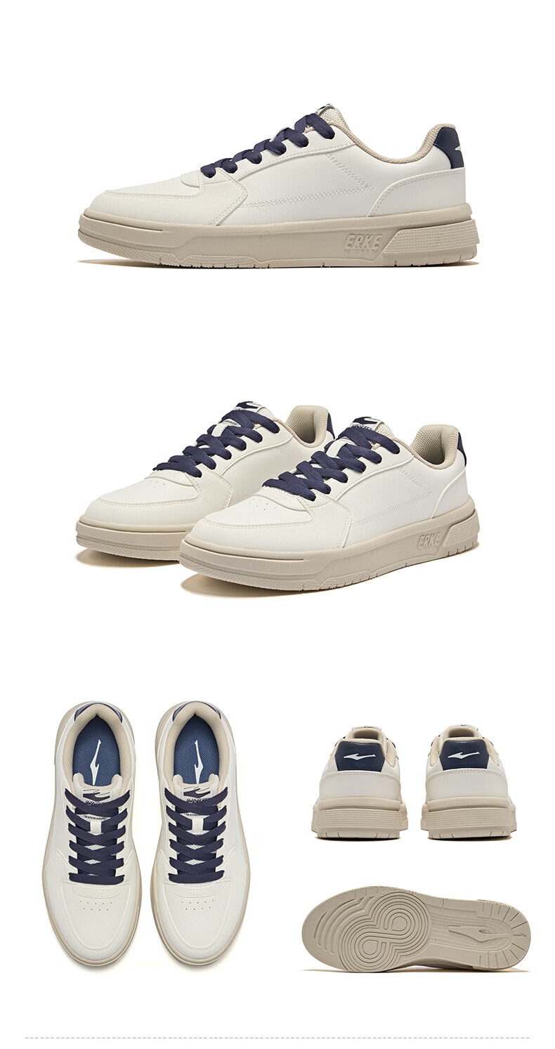 鸿星尔克板鞋男秋冬季新款滑板鞋经典天和复古休闲鞋男轻便运动鞋子男 微晶白/云雾灰 43