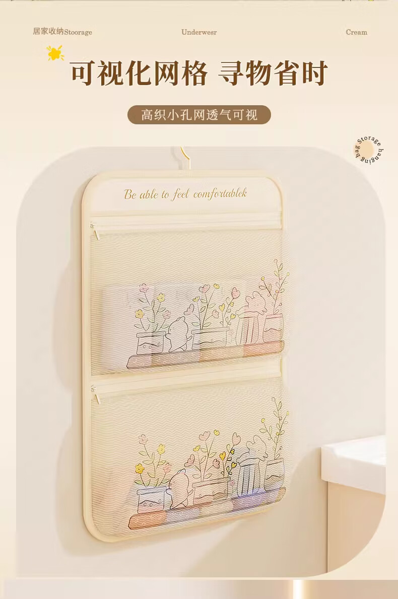 内衣裤收纳袋挂式衣柜袜子内裤收纳神器宿舍家用贴身衣物收纳网兜 单层【1个装】可水洗/大容量