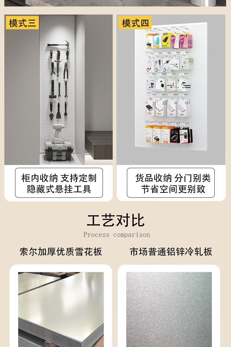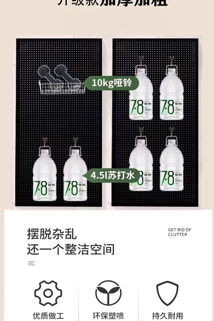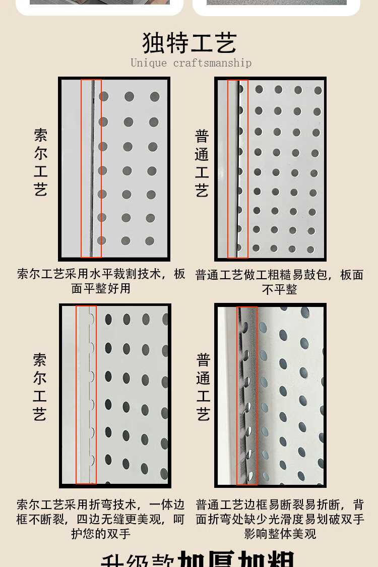 胖东来同款挂板墙面洞洞板铁艺不锈钢冲孔挂钩置物架电动工具定制 【带边框 加厚款】100×90cm-本