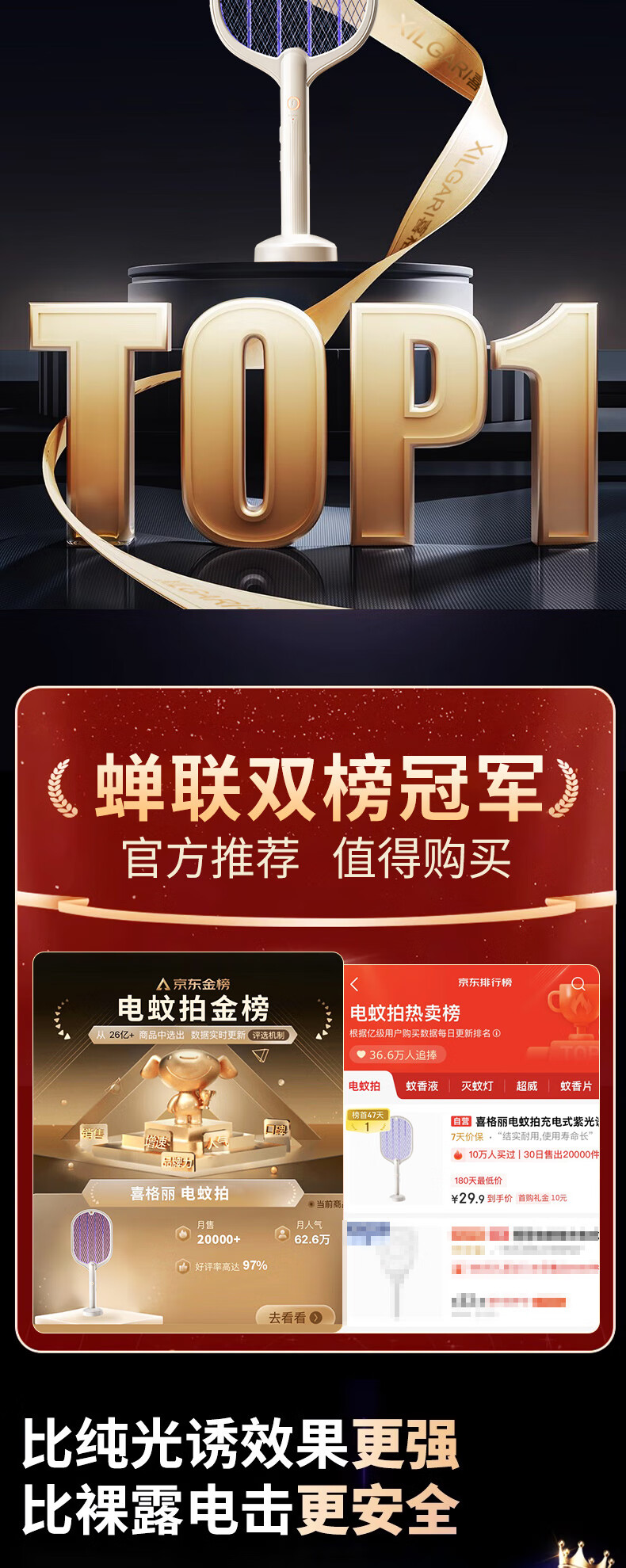 喜格丽电蚊拍基孔肯雅热充电式家用紫光诱蚊二合一灭蚊拍电苍蝇拍蚊子拍