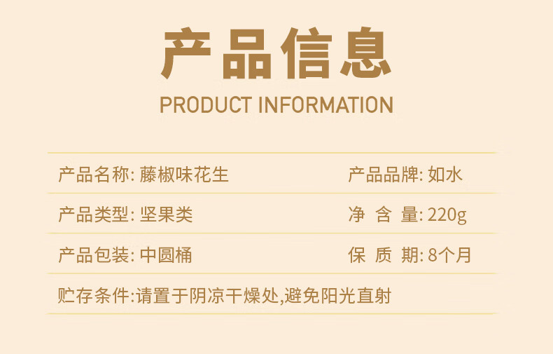 如水藤椒味花生220g/罐 鱼皮花生豆新口味 健康高油酸果仁休闲零食
