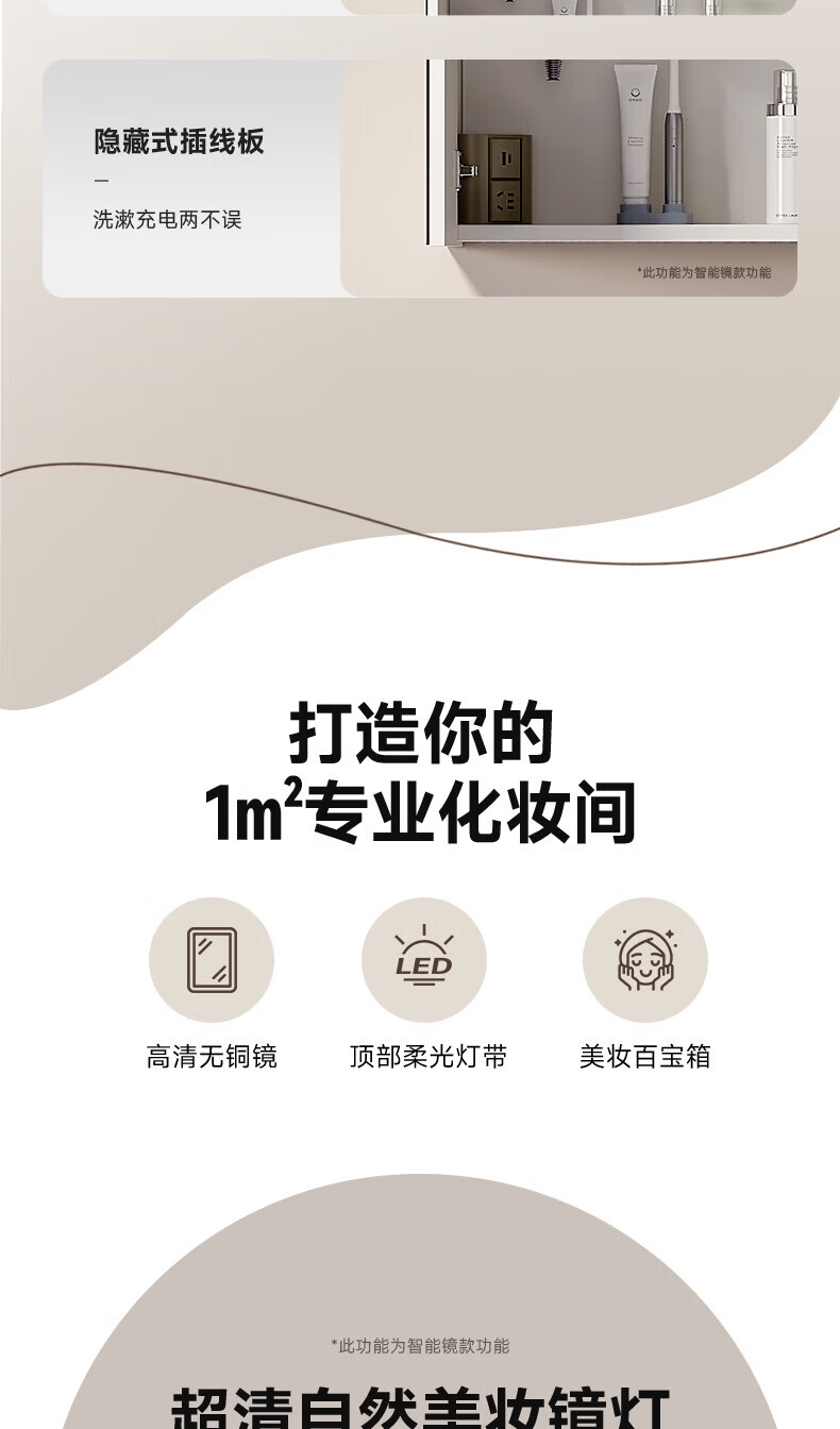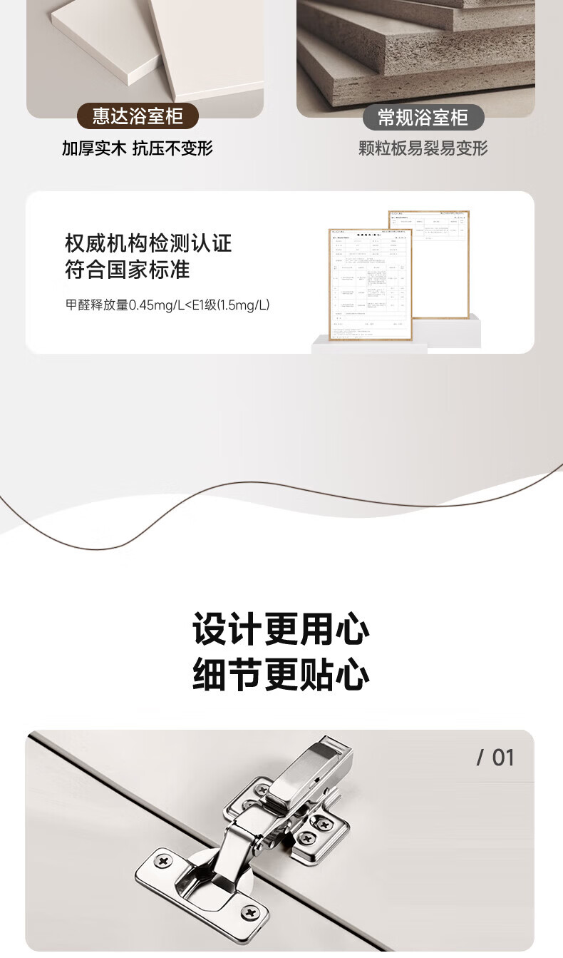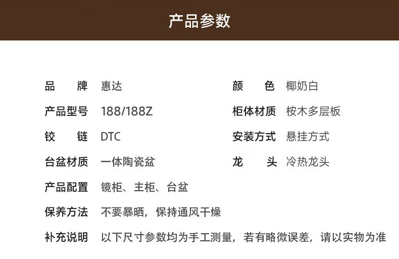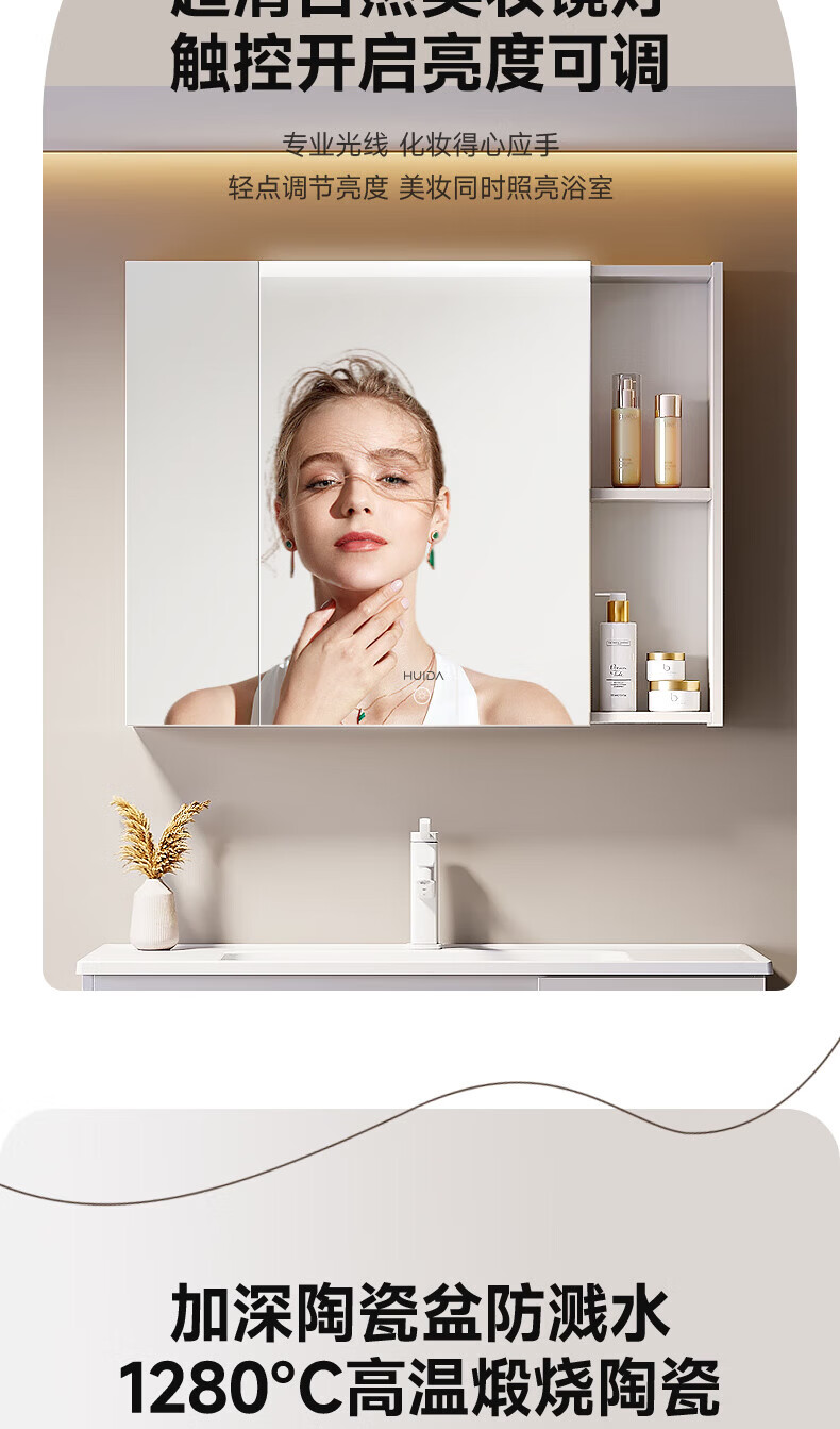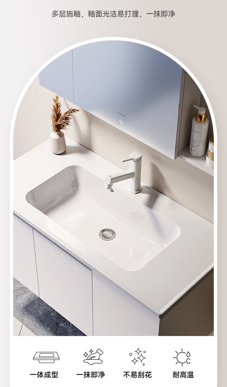 惠达(HUIDA)浴室柜 陶瓷一体盆抗菌洗脸盆柜组合188 奶油象牙白55cm【智能镜柜】